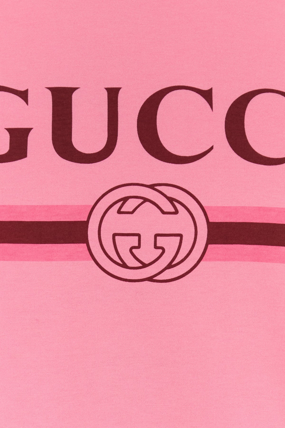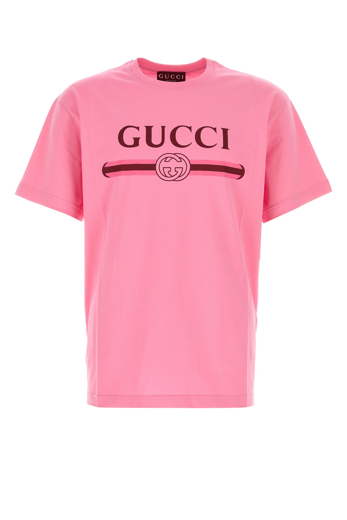 T-shirt realized in pure cotton characterized by Gucci print at the front.