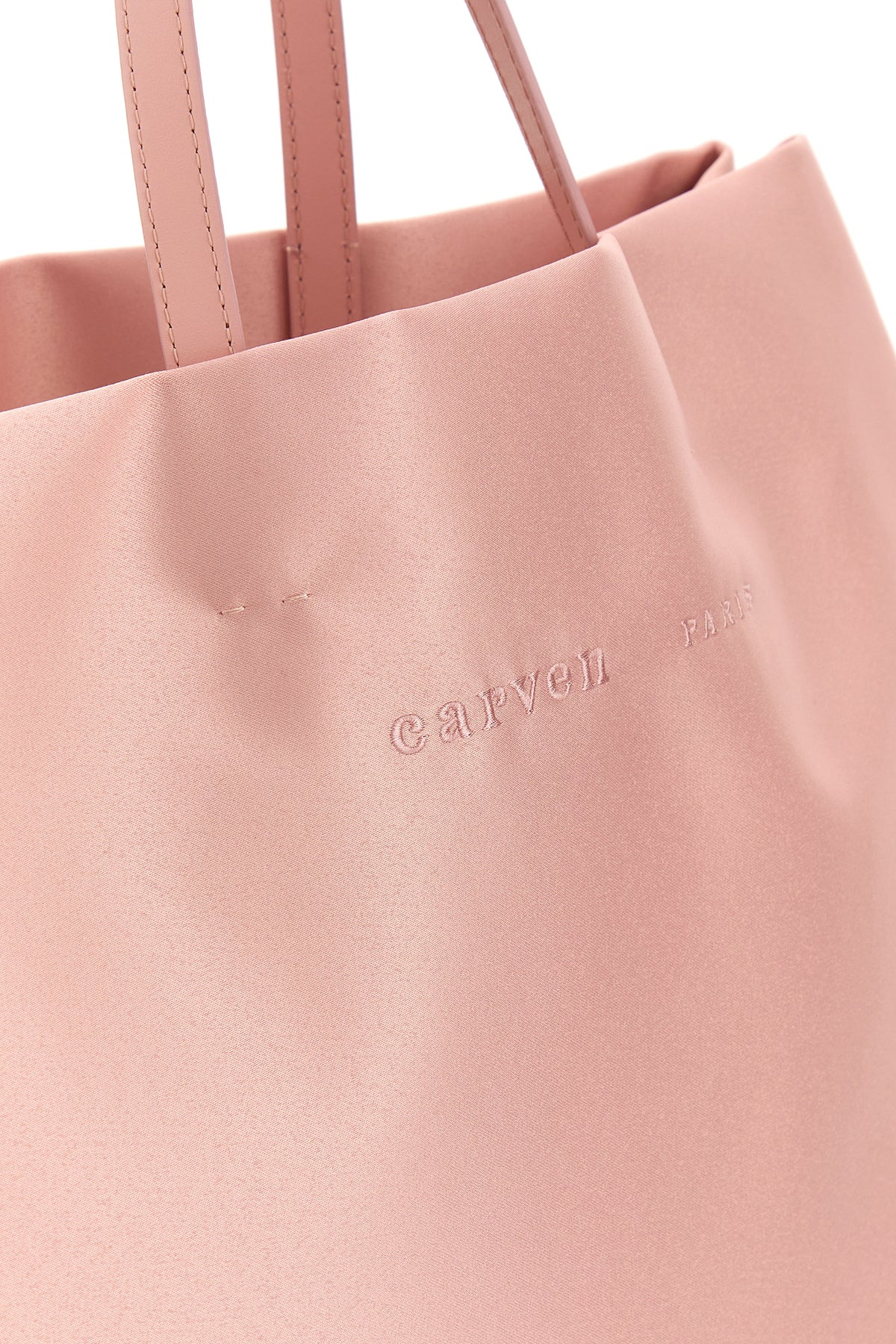 Shopping bag realized in fabric characterized by tonal embroidered logo a the front.