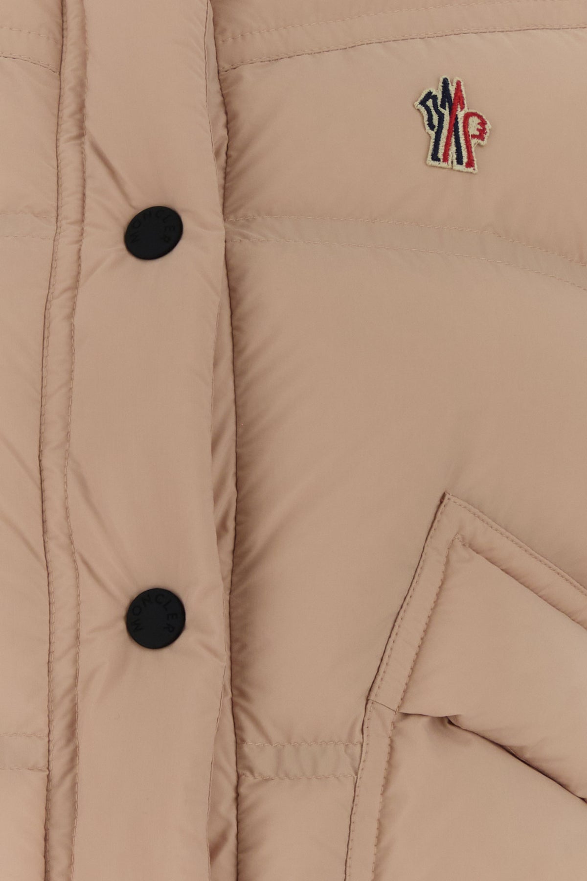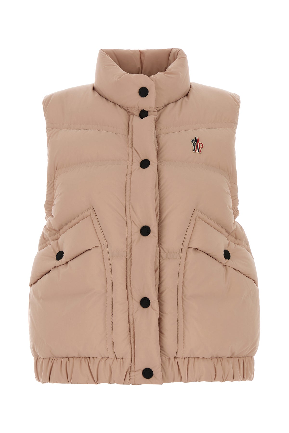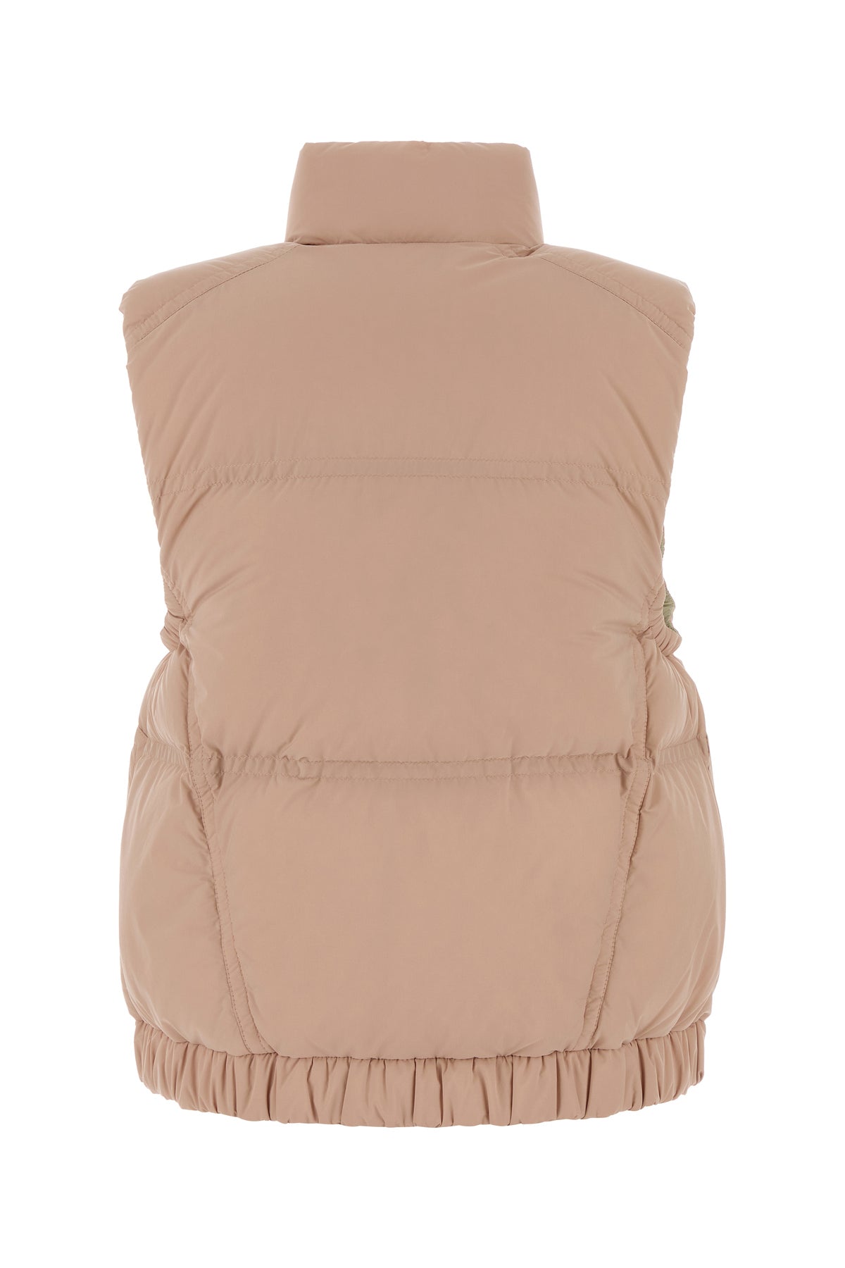Sleeveless down jacket realized in quilted nylon blend enriched by logoed patch on the chest.