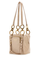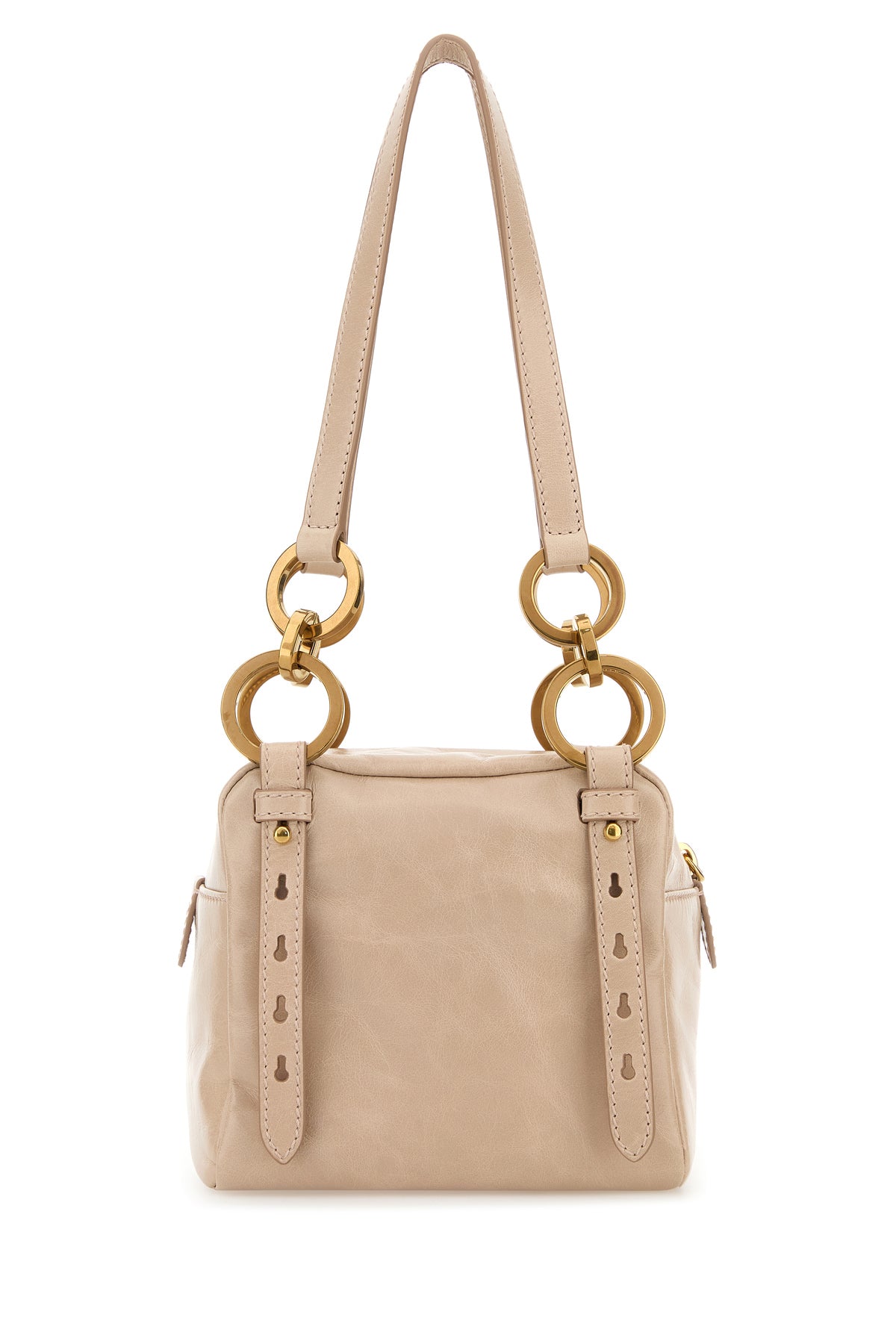 - Two tonal leather handles with metal rings
