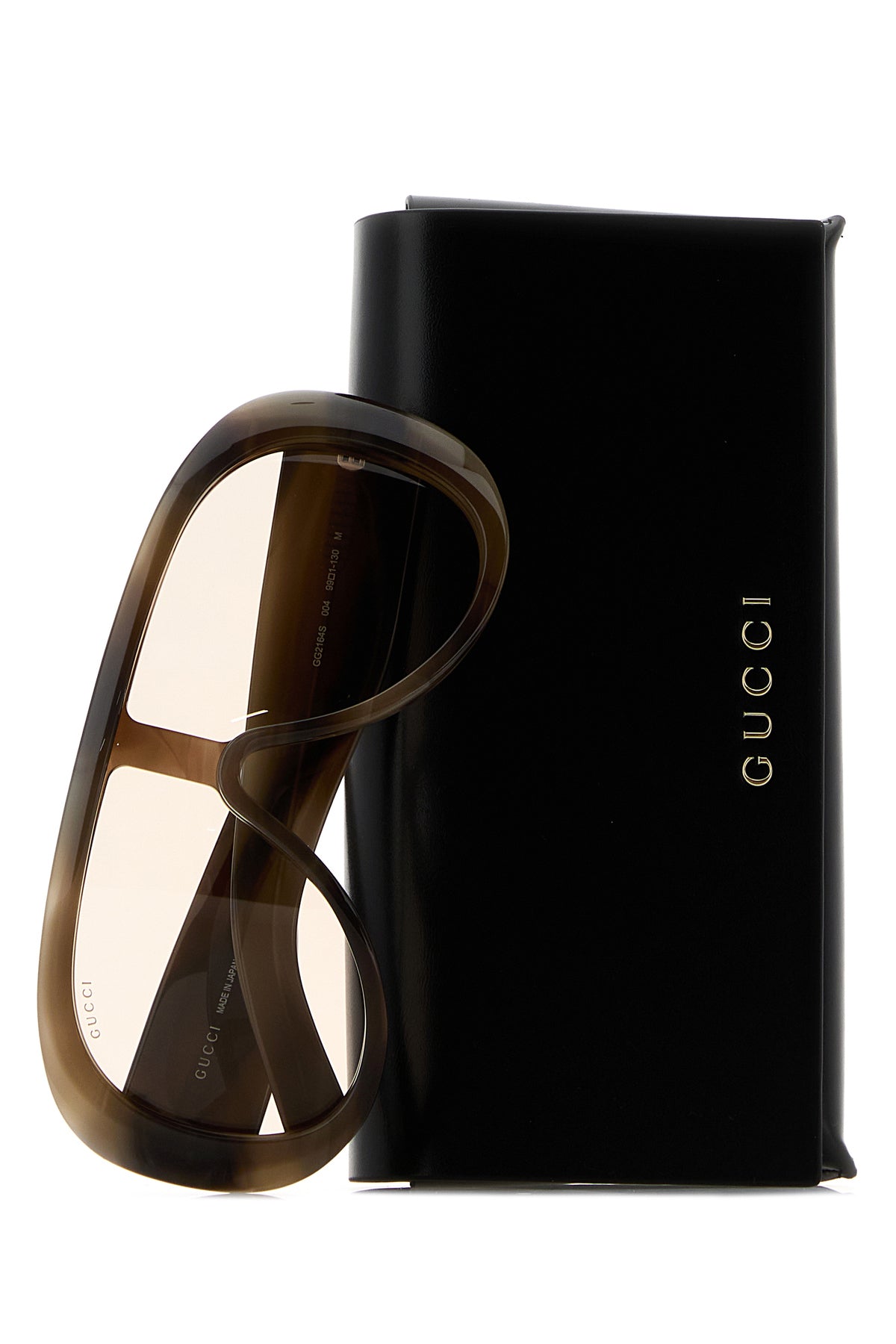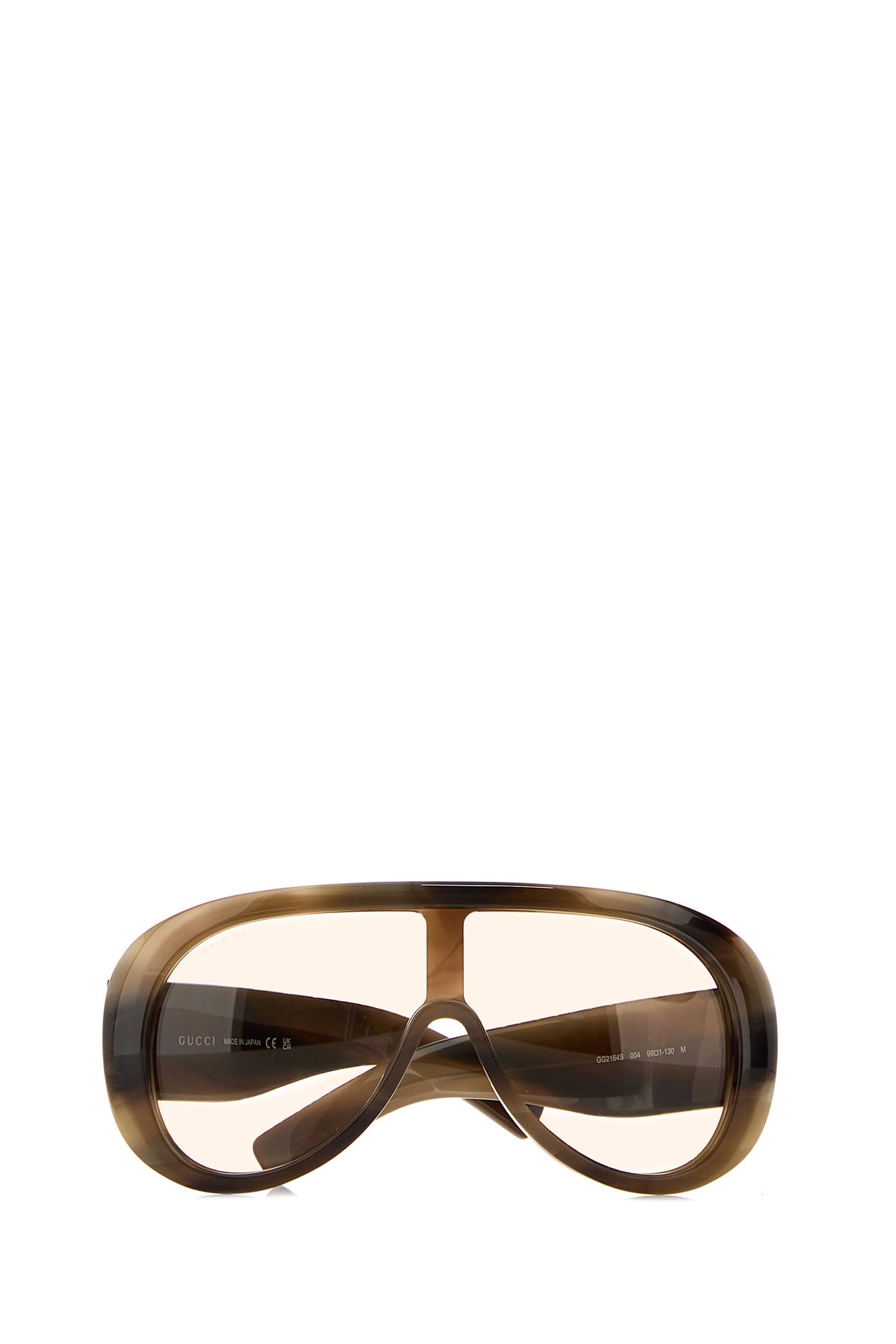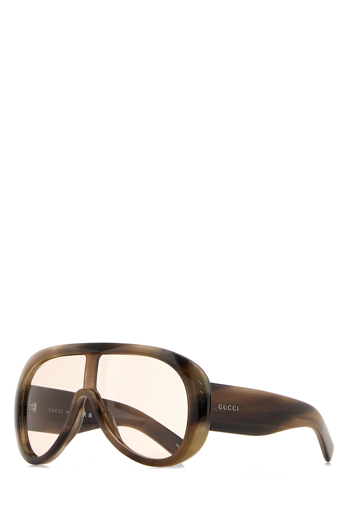 Sunglasses realized in acetate characterized by laminated printed logo on the arms.