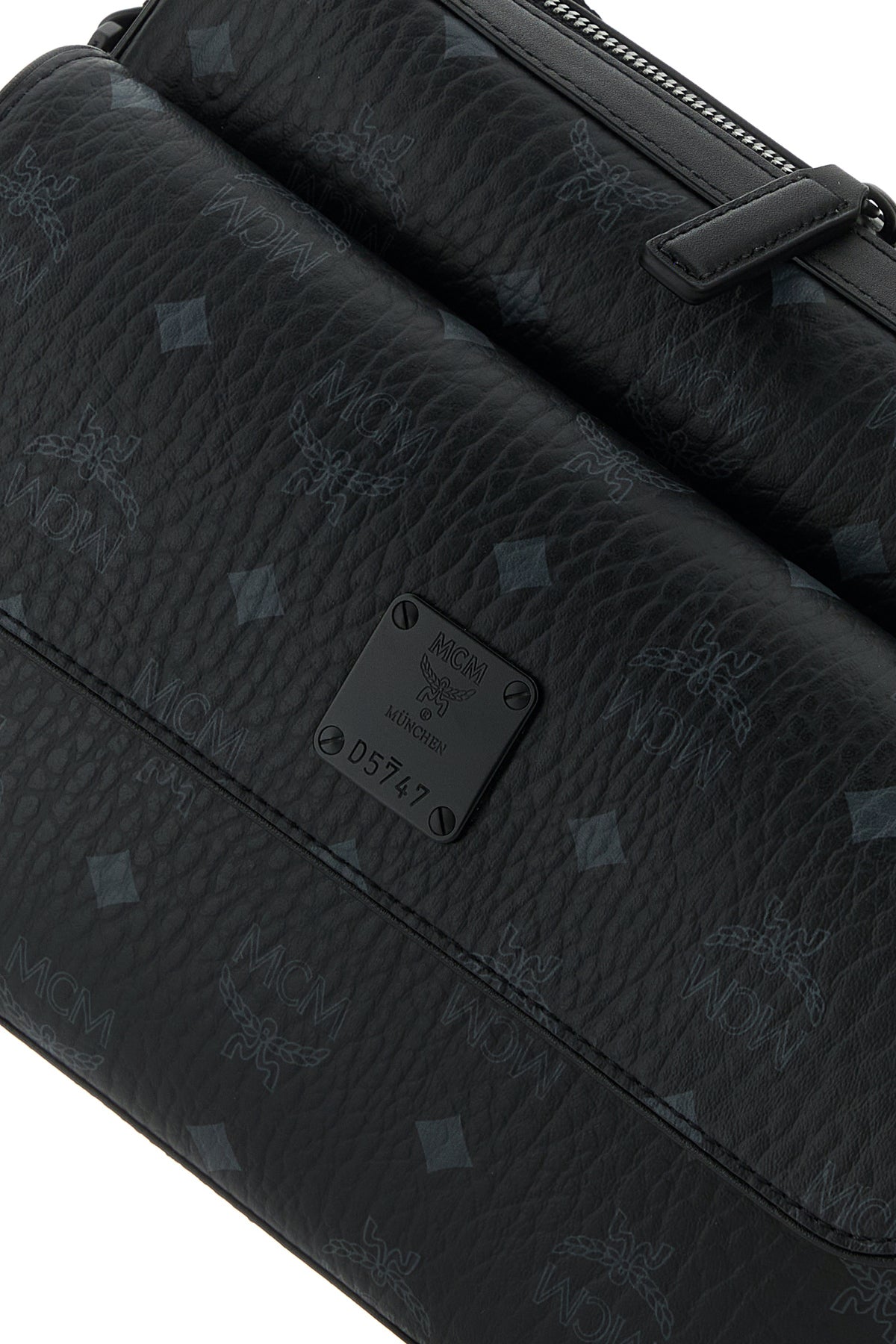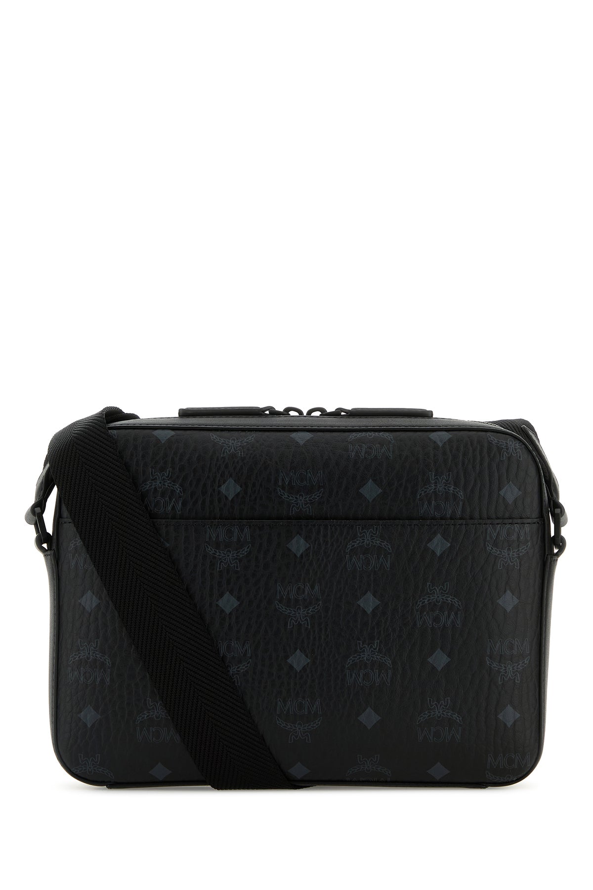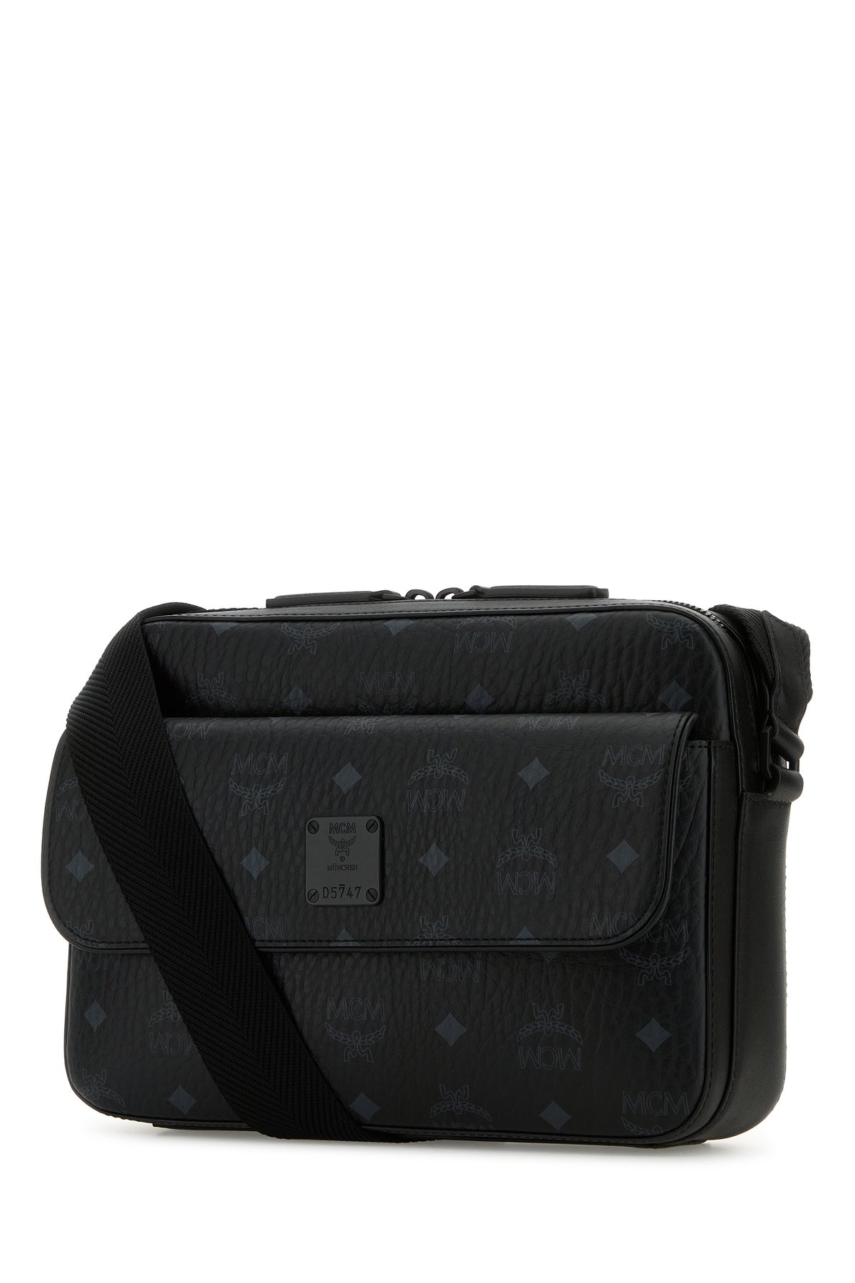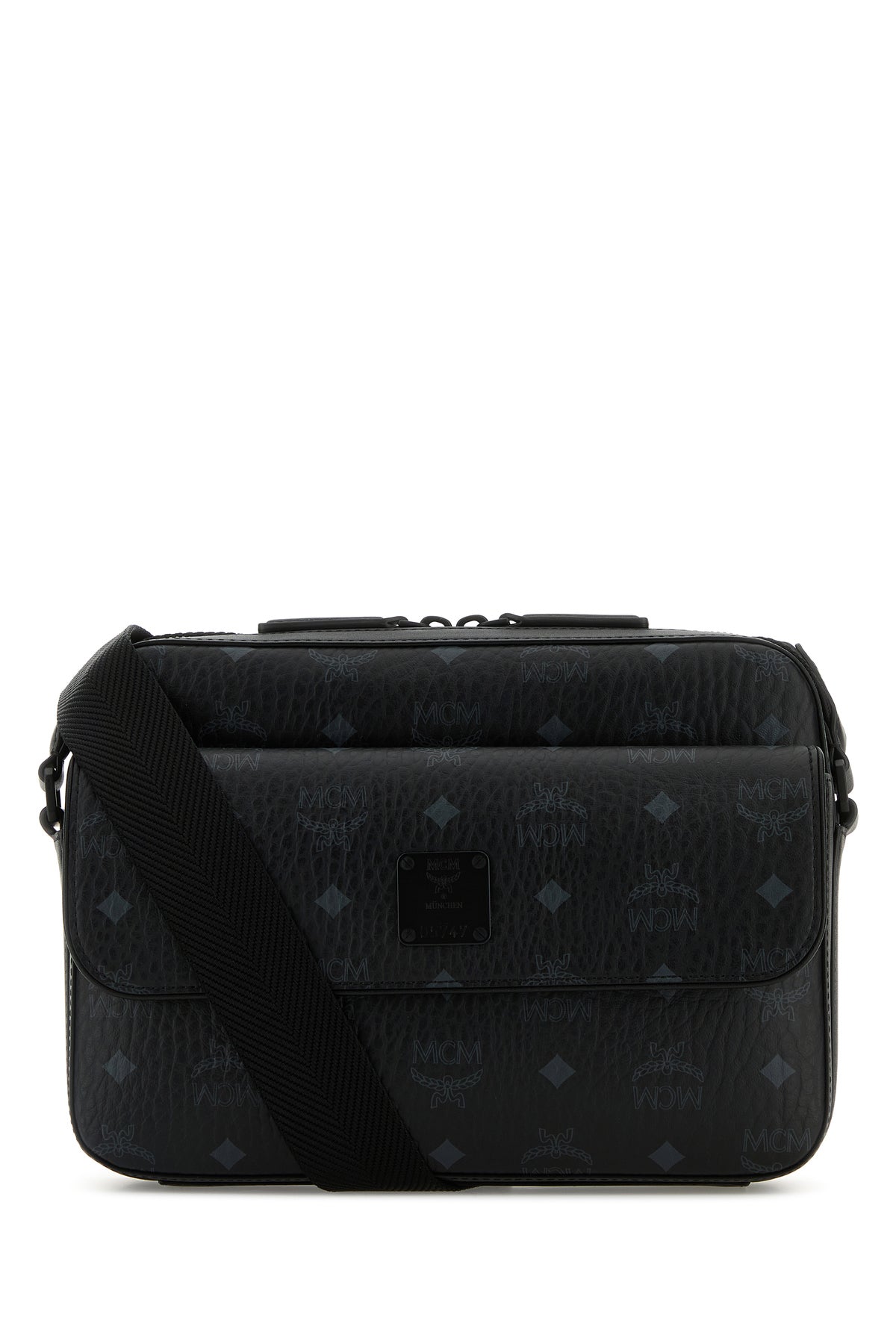Crossbody bag realized in coated canvas characterized by Visetos Monogram print on the entire surface enriched by MCM Logo metal plate at the front.
