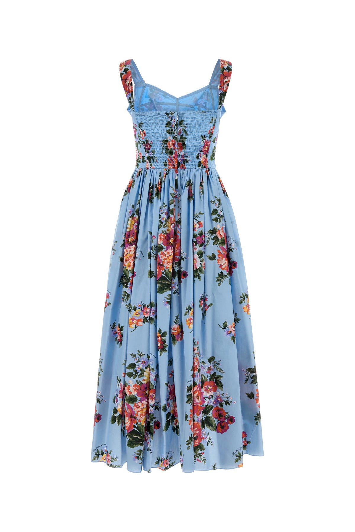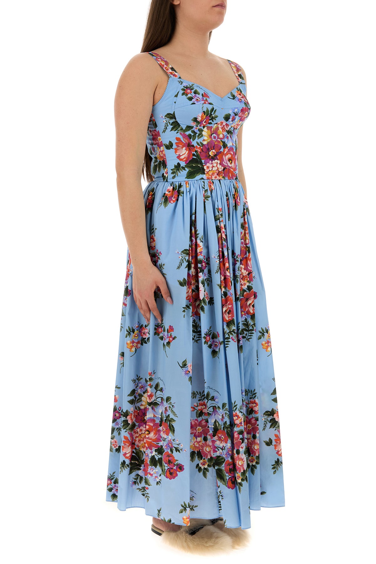 Midi-length dress realized in pure cotton characterized by floral print on the entire surface.