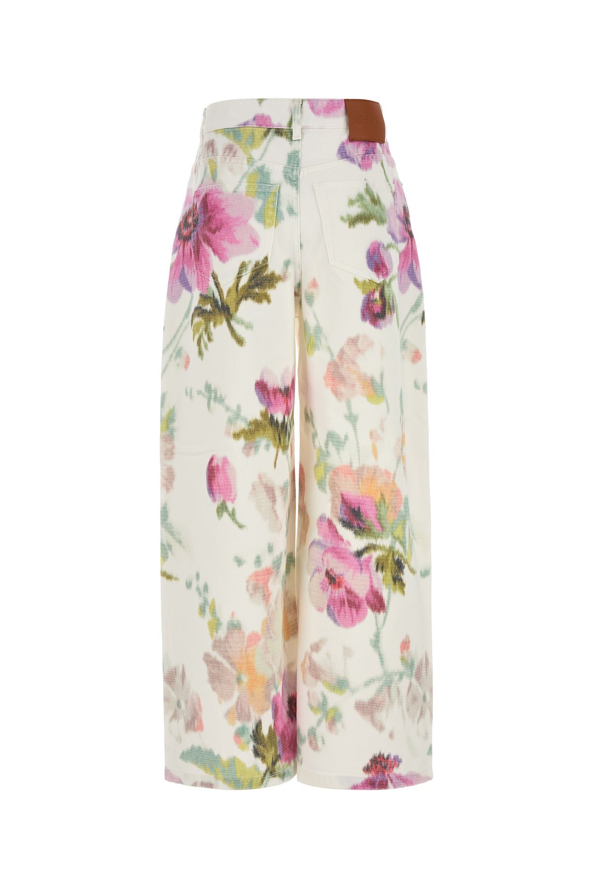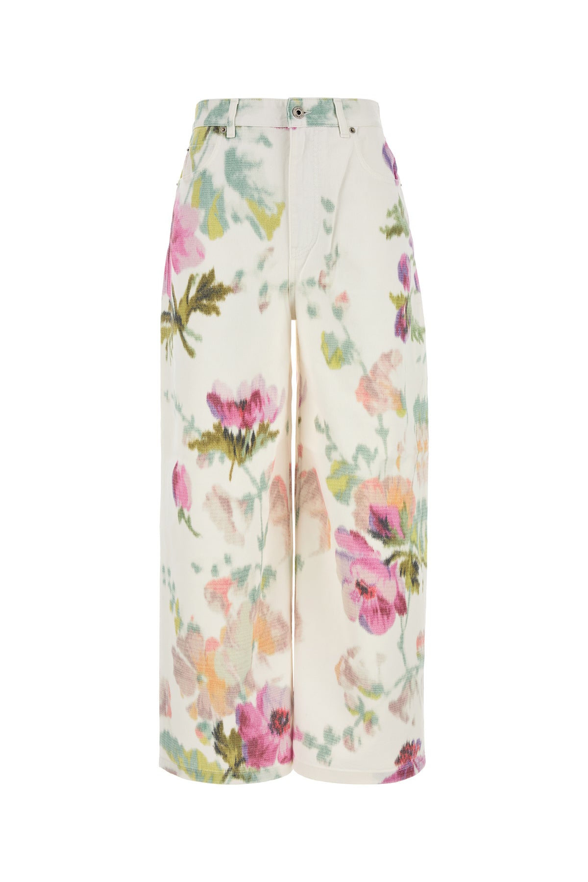Wide-leg jeans realized in pure cotton denim characterized by peculiar floral print on the entire surface.