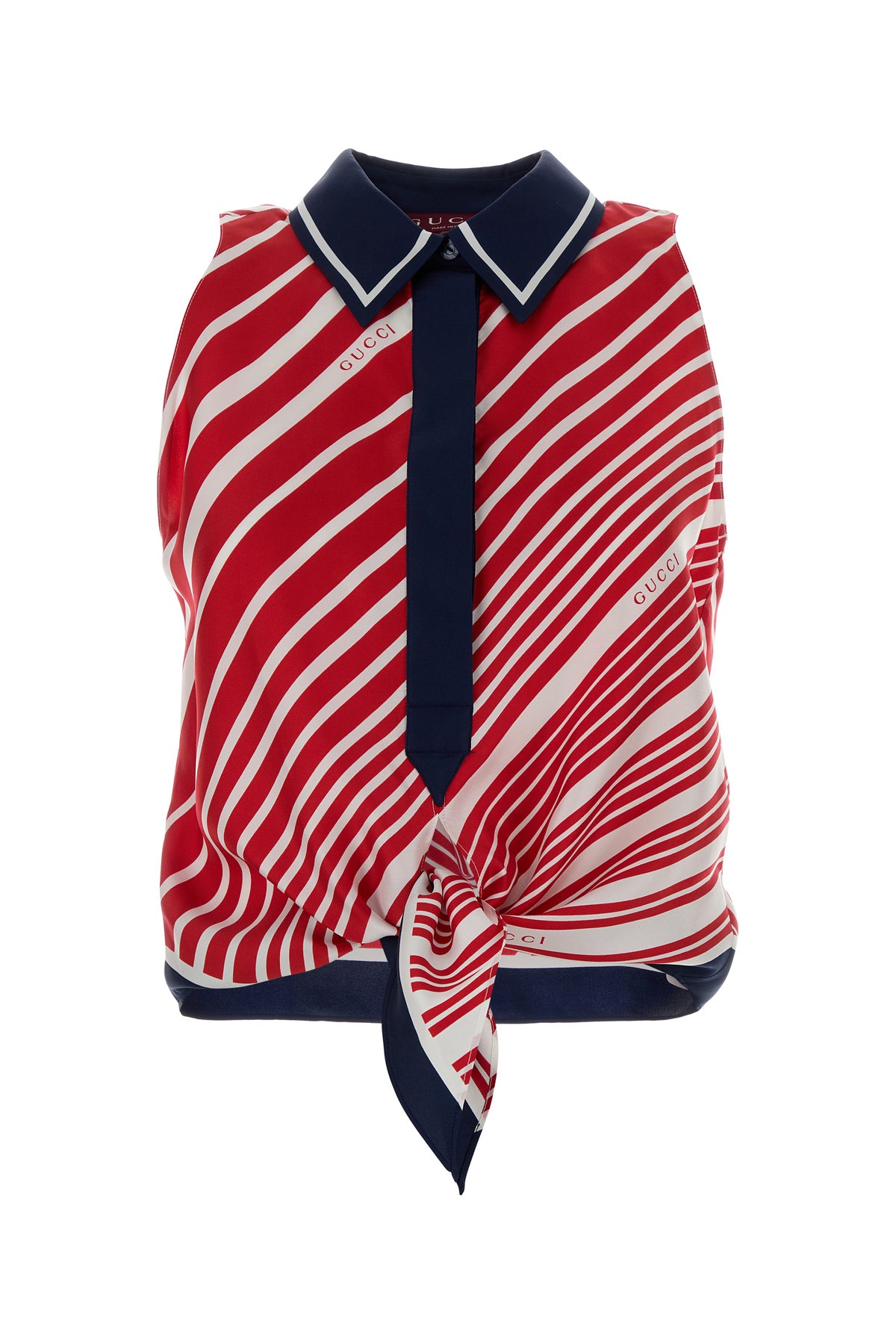 Short-sleeve shirt realized in pure silk characterized by logoed striped print on the entire surface.