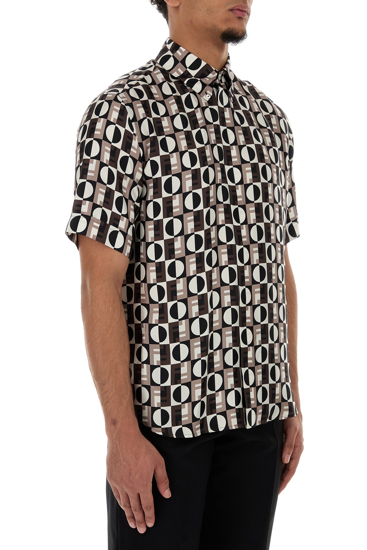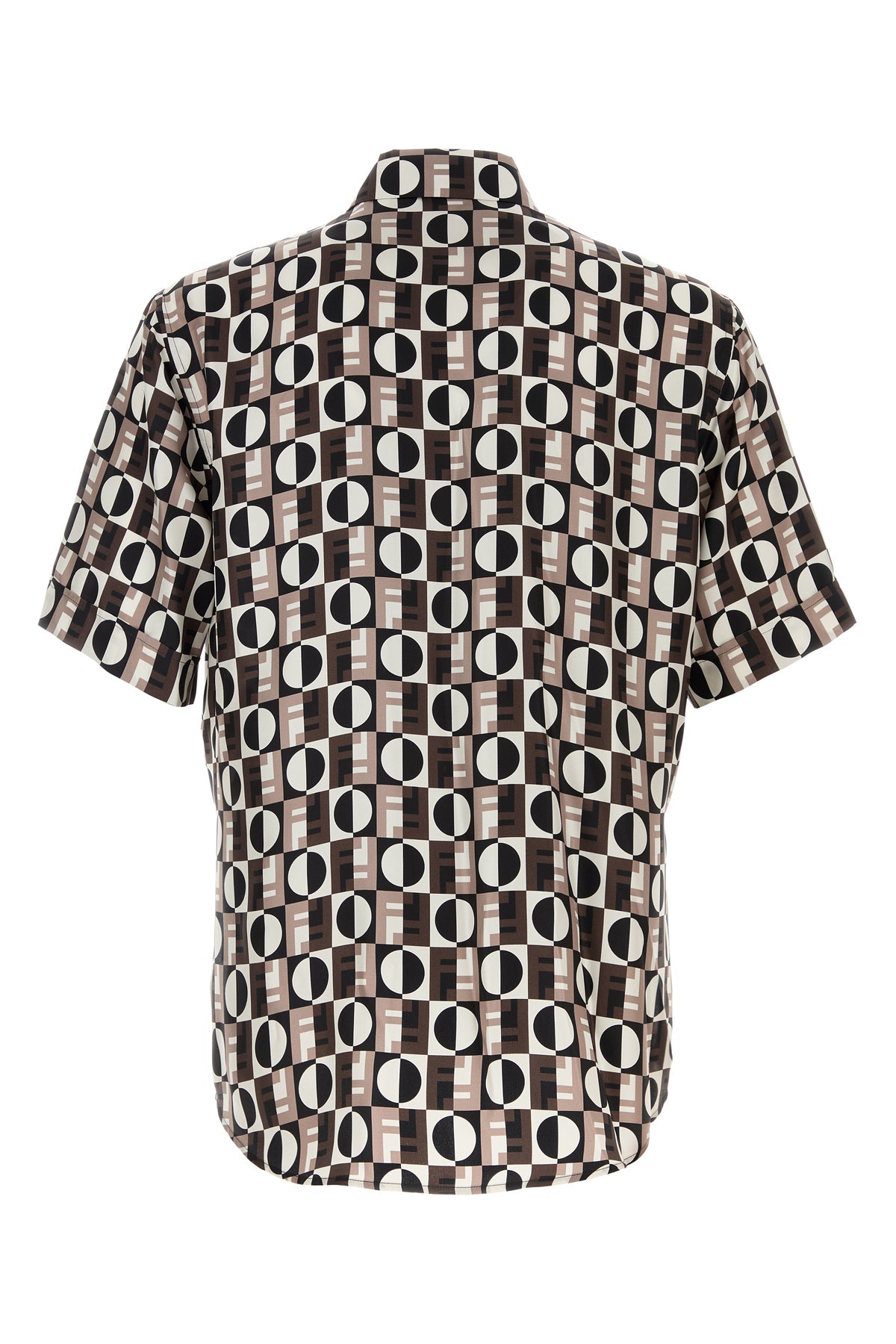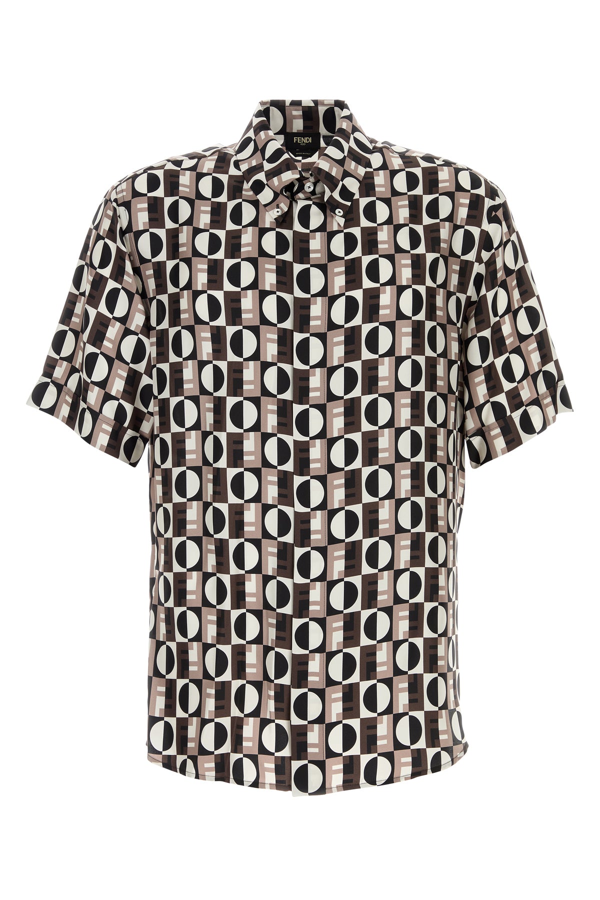 Short-sleeves shirt realized in pure silk characterized by Fendi Optical print on the entire surface.