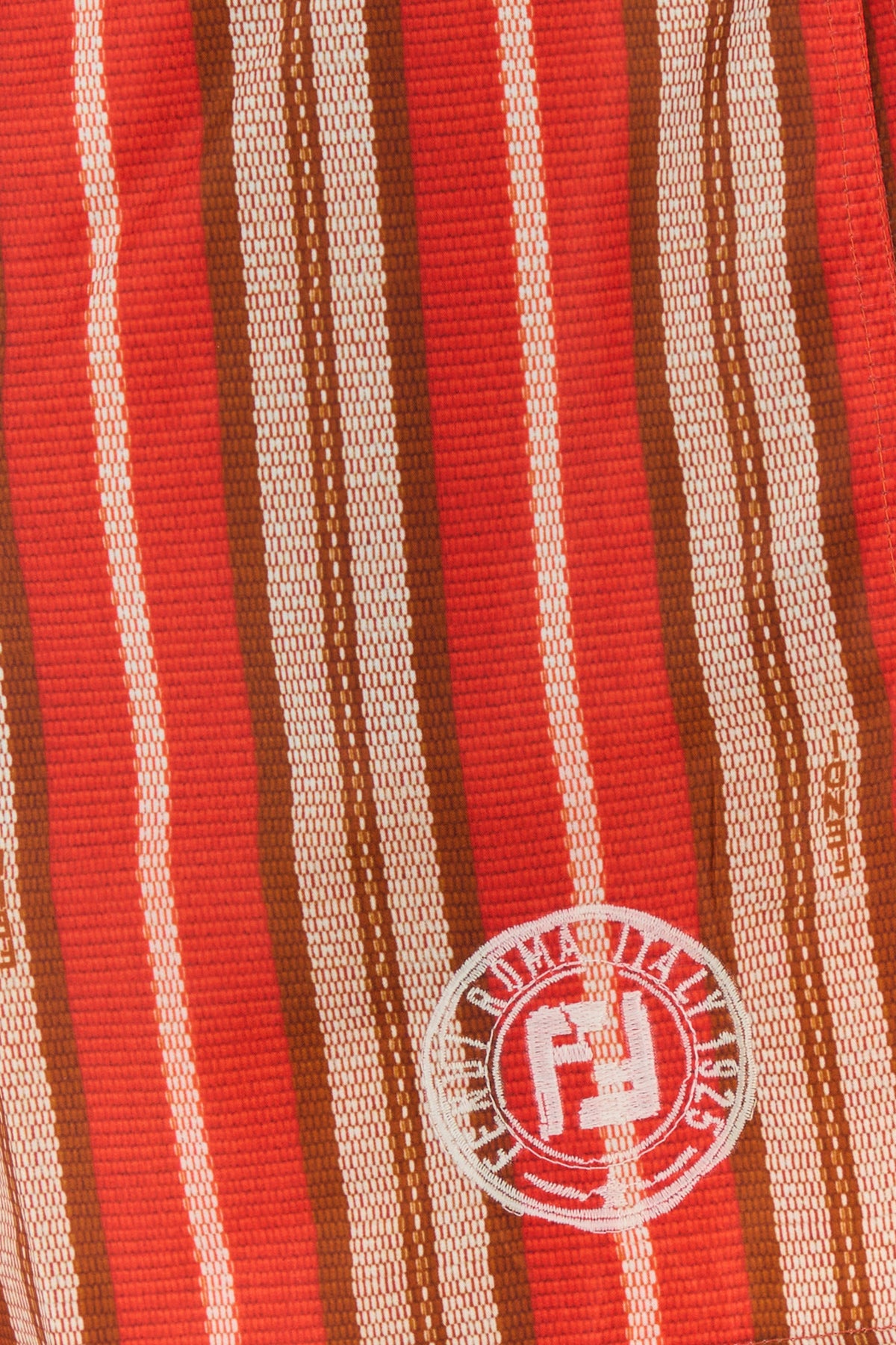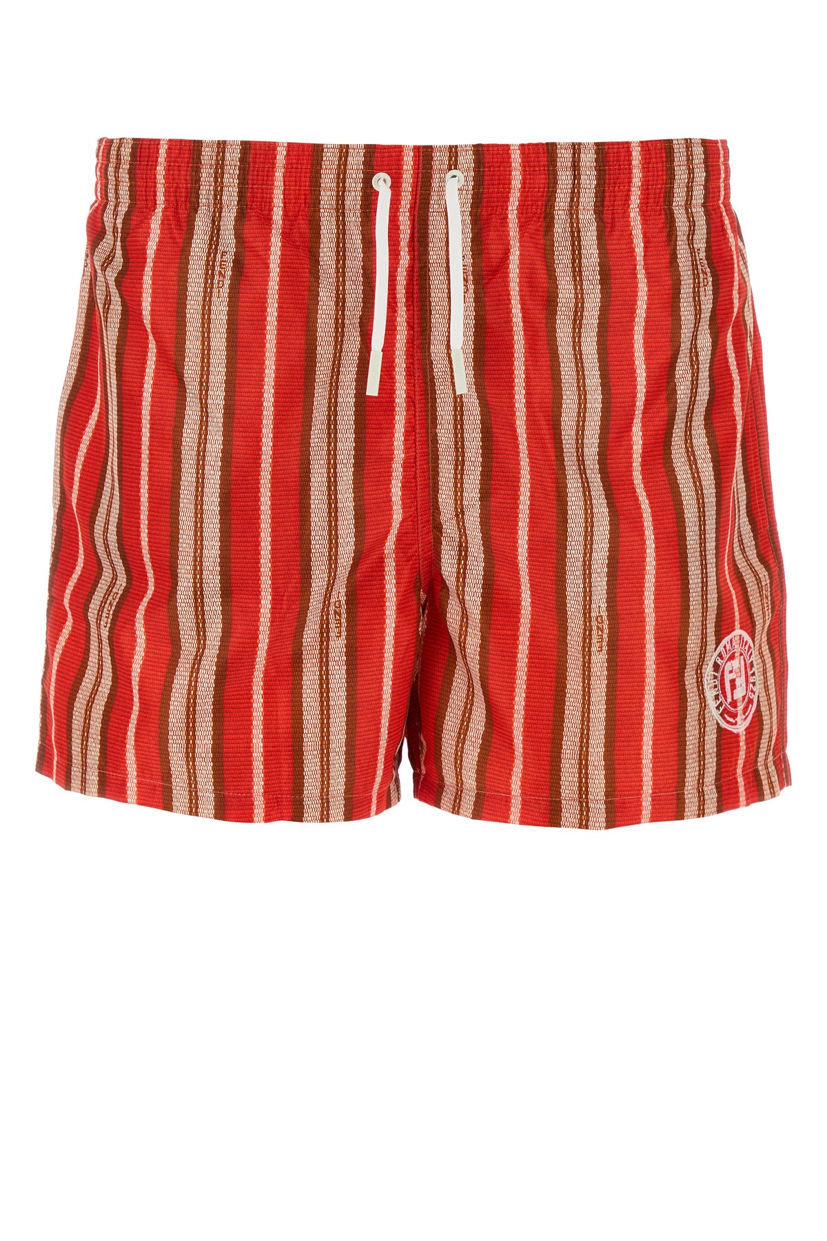 Swimming shorts realized in stretch nylon characterized by striped print on the entire surface and Fendi Postcards embroidery at the front.