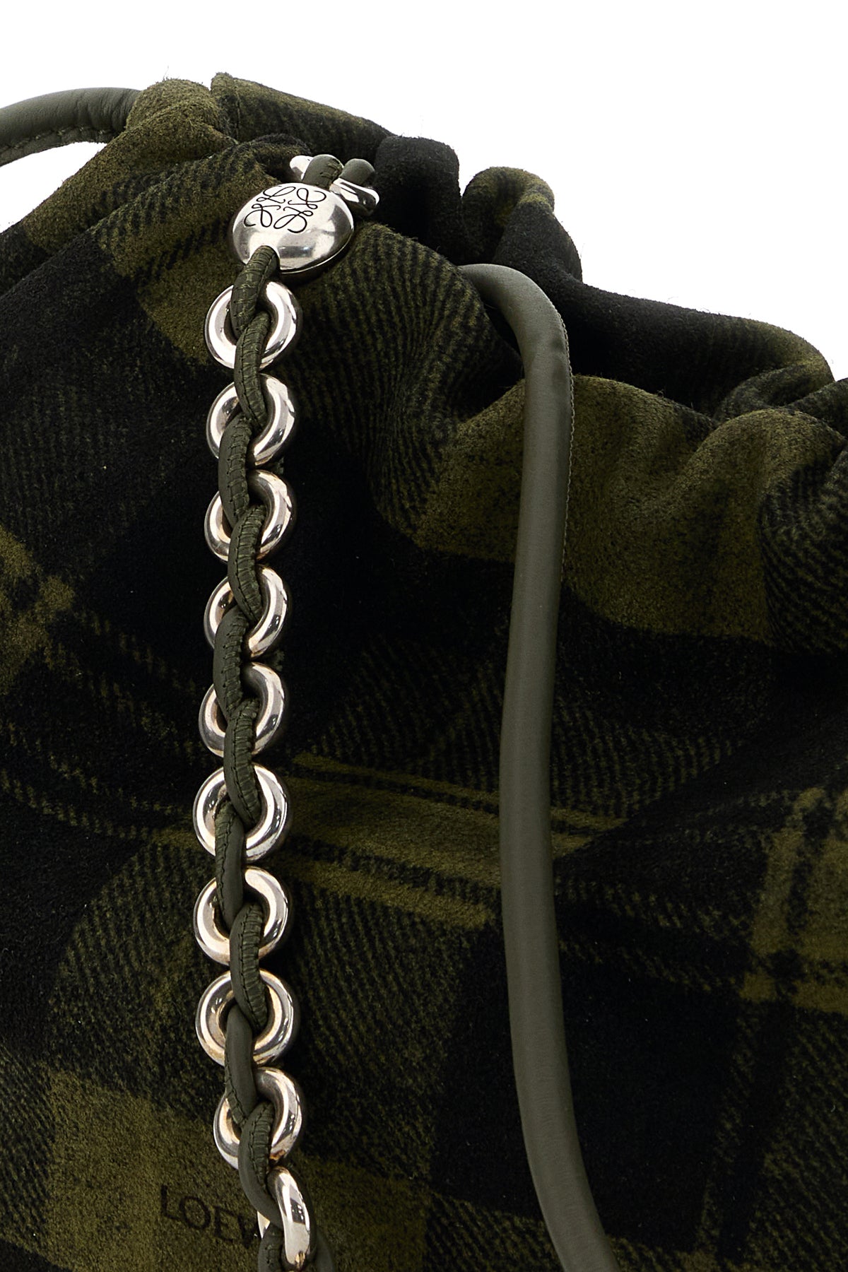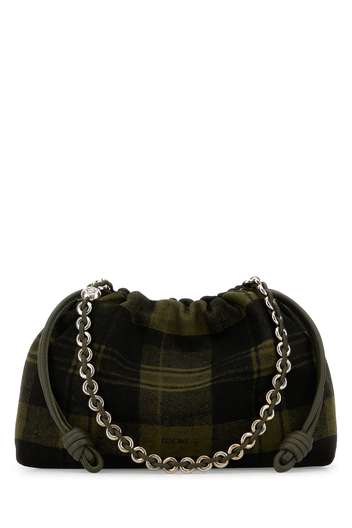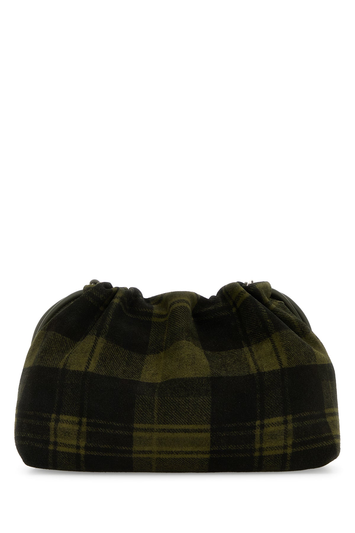 Clutch realized in suede characterized by tartan motif print on the entire surface and printed logo at the front.
