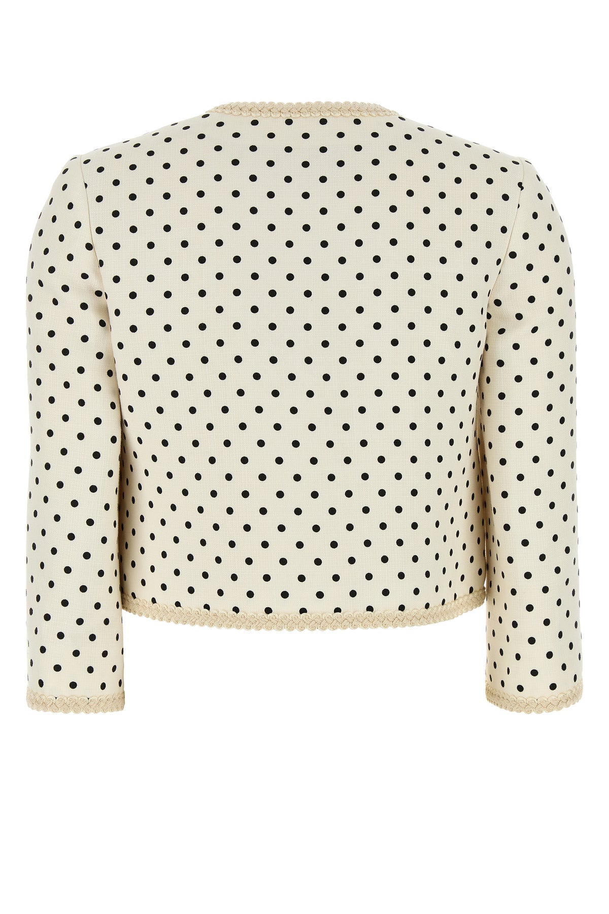 Blazer realized in viscose characterized by polka dot print on the entire surface.
