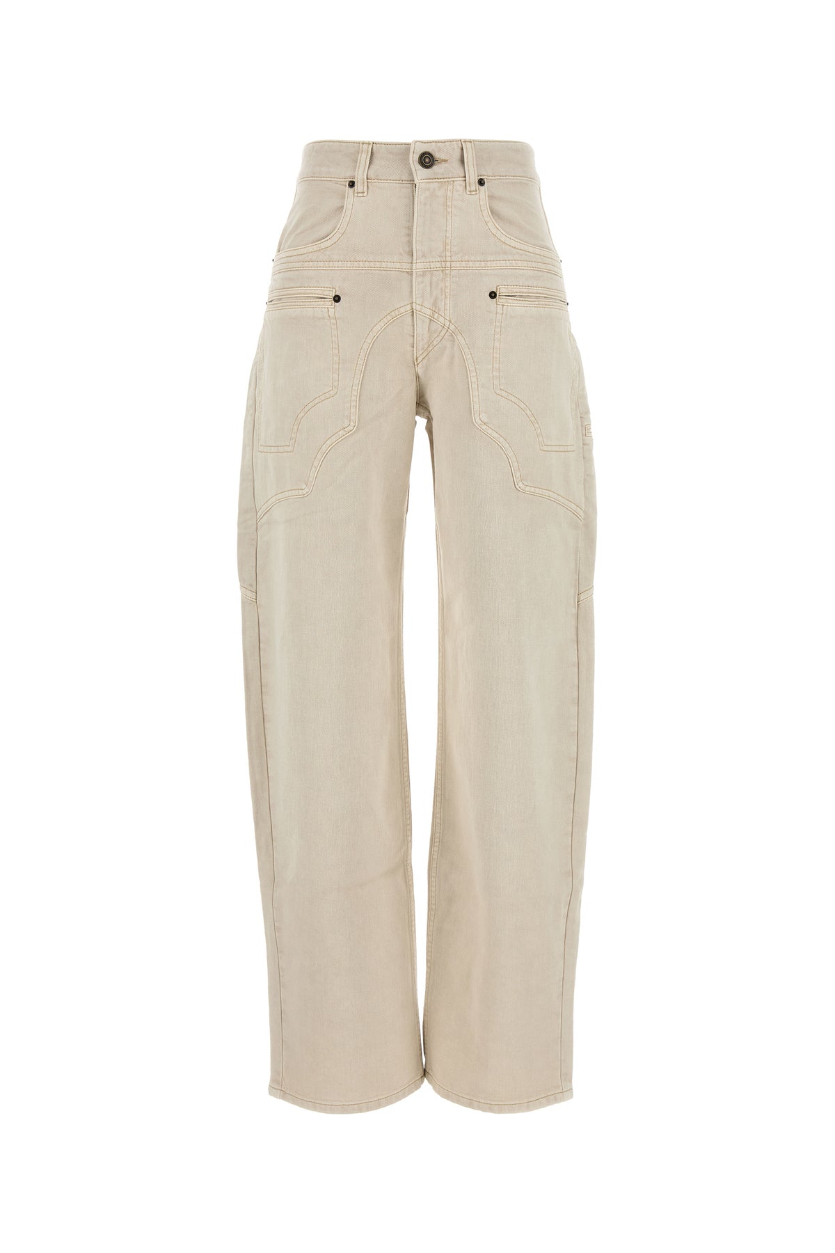 High waist pant realized in cotton and hemp enriched by logoed label at the back.