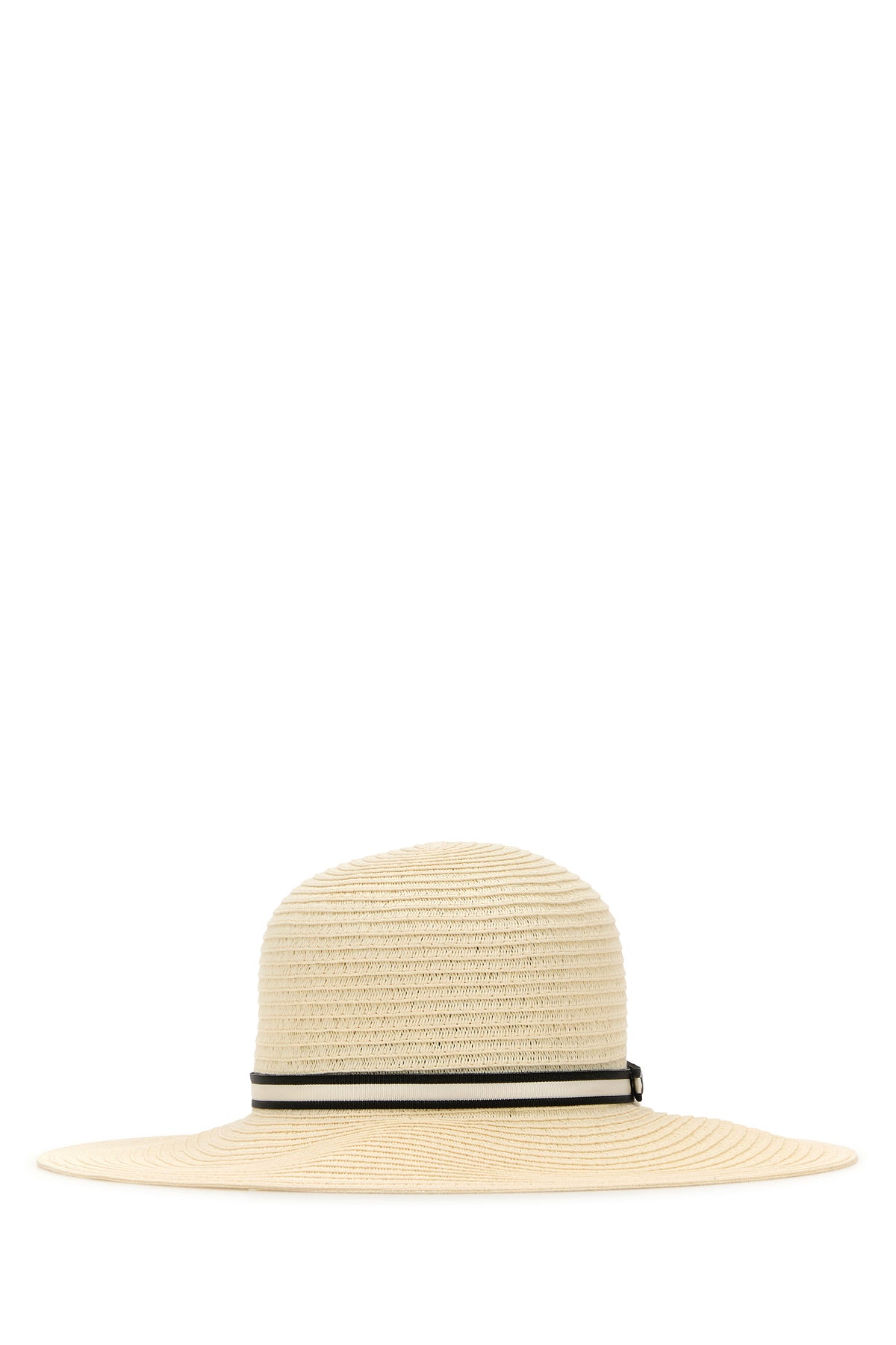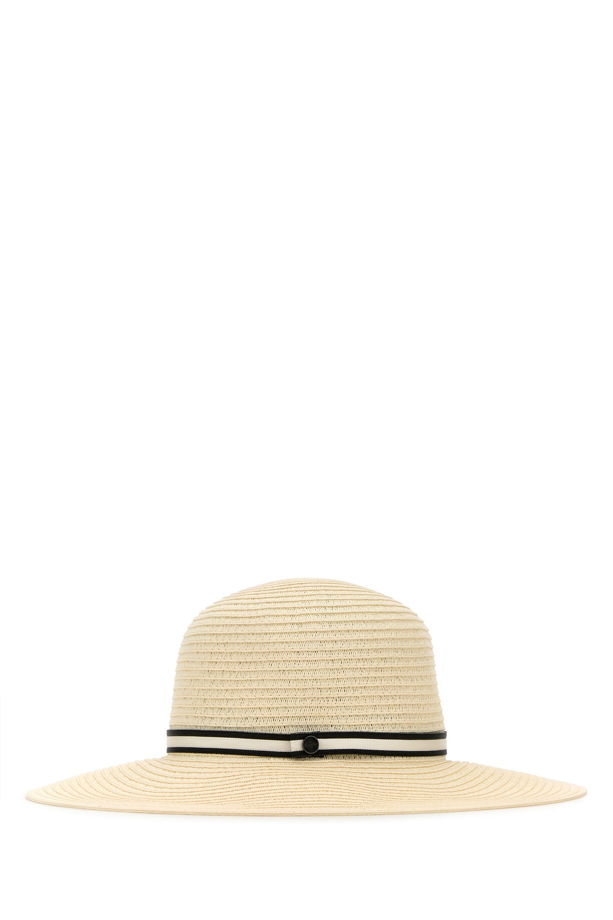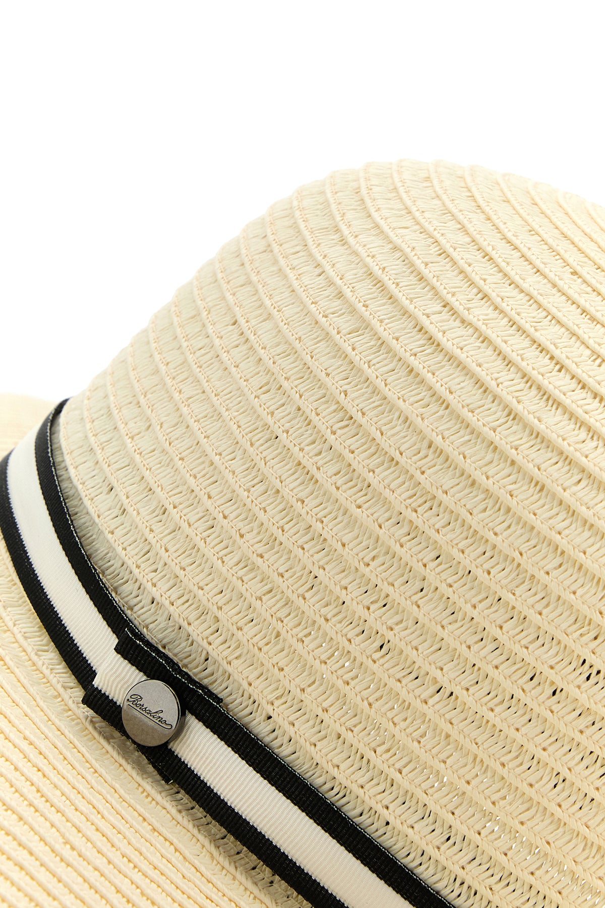 Hat realized in paper enriched by contrasting fabric ribbon.