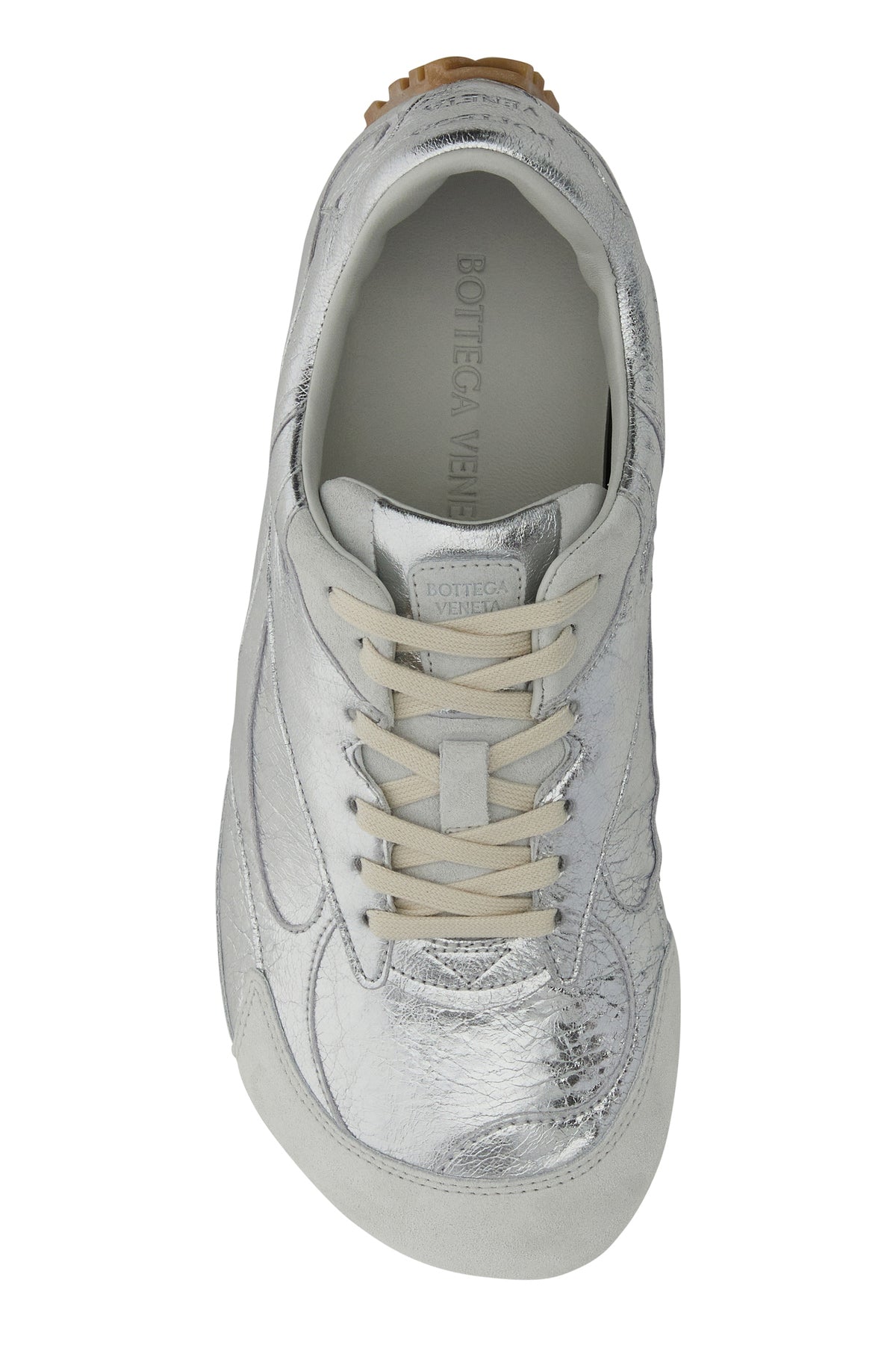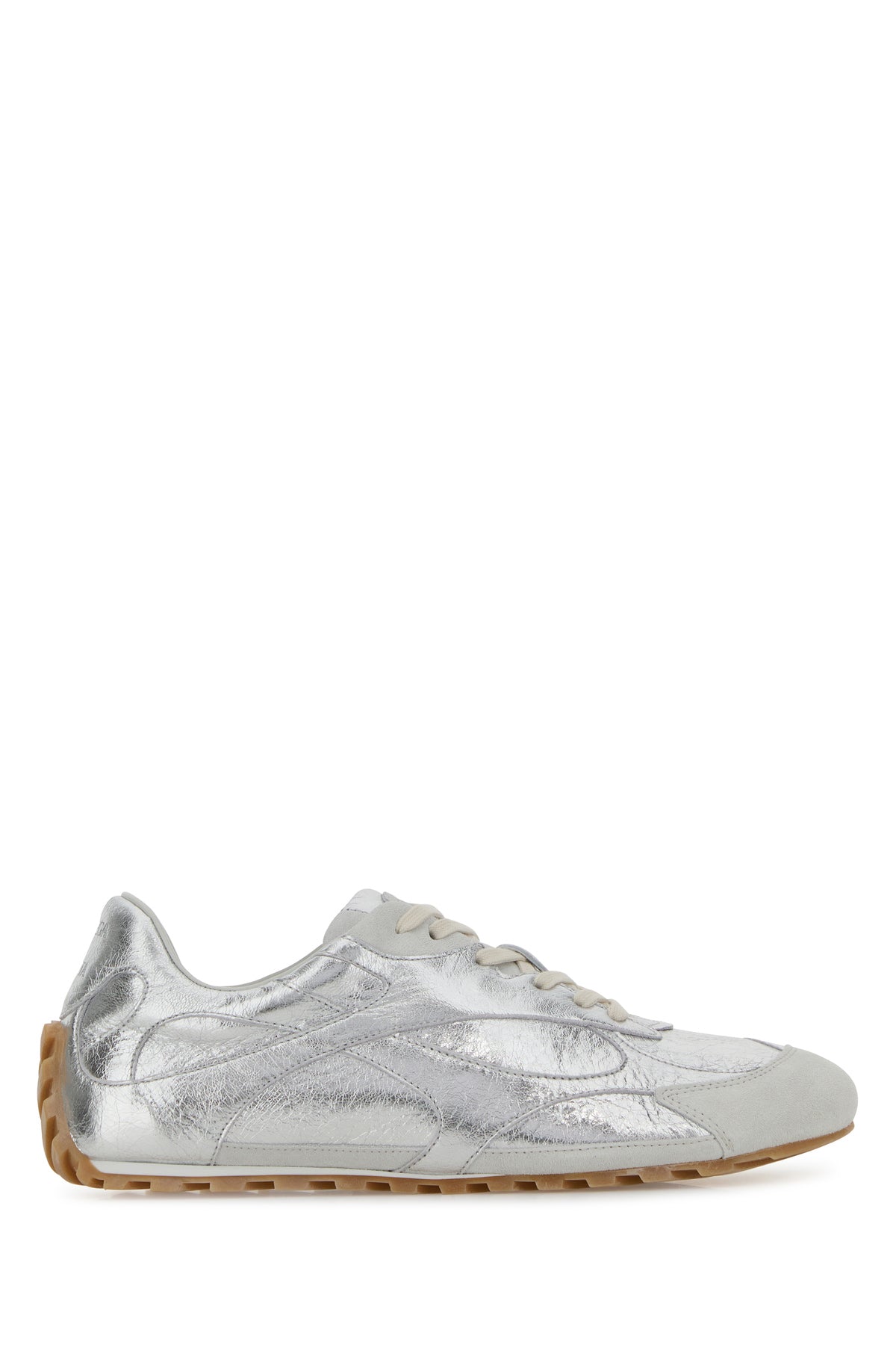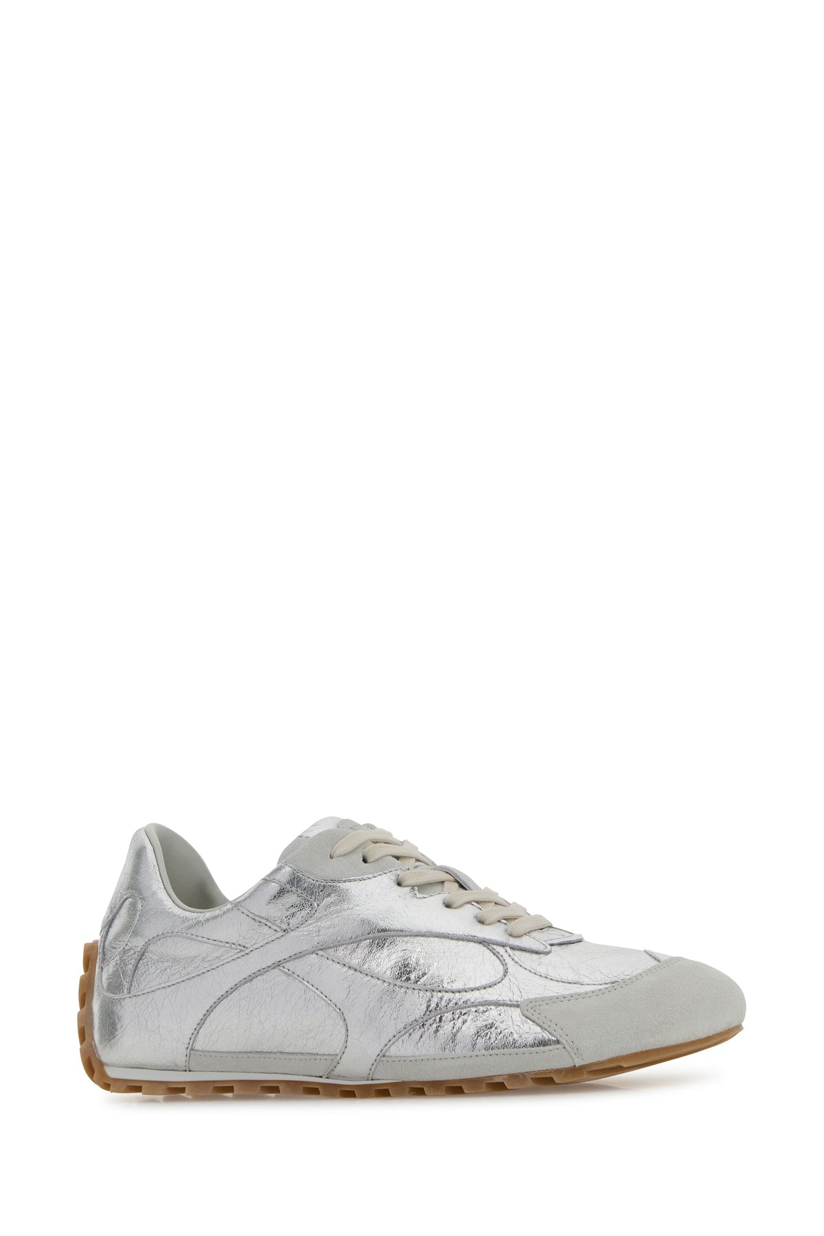 Sneakers realized in laminated leather with suede insert on the toe characterized by embossed logo on the heel.