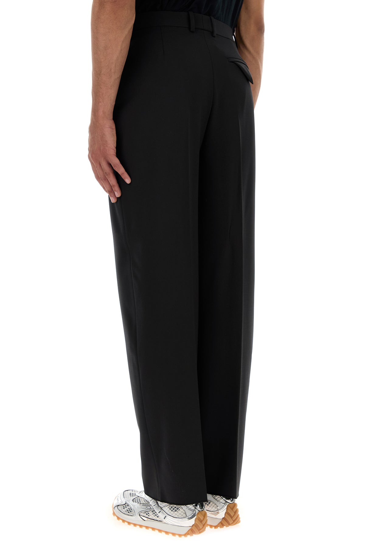 Pant realized in stretch wool blend characterized by central ironed pleats.