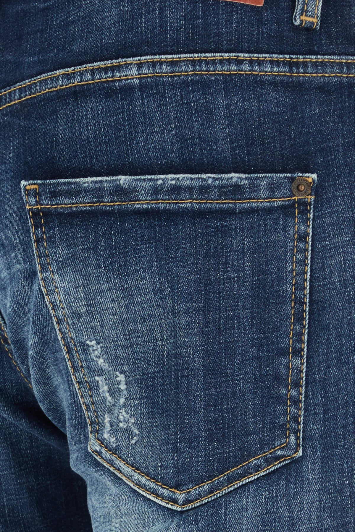 Jeans realized in stonewashed and distressed stretch cotton denim enriched by logoed label at the back.