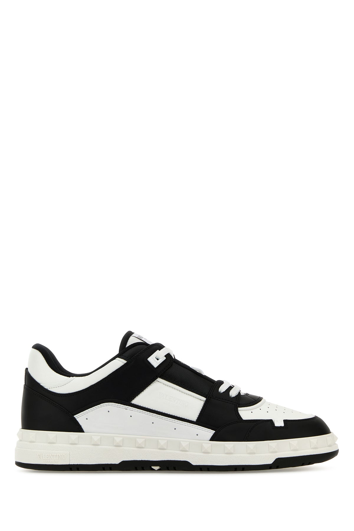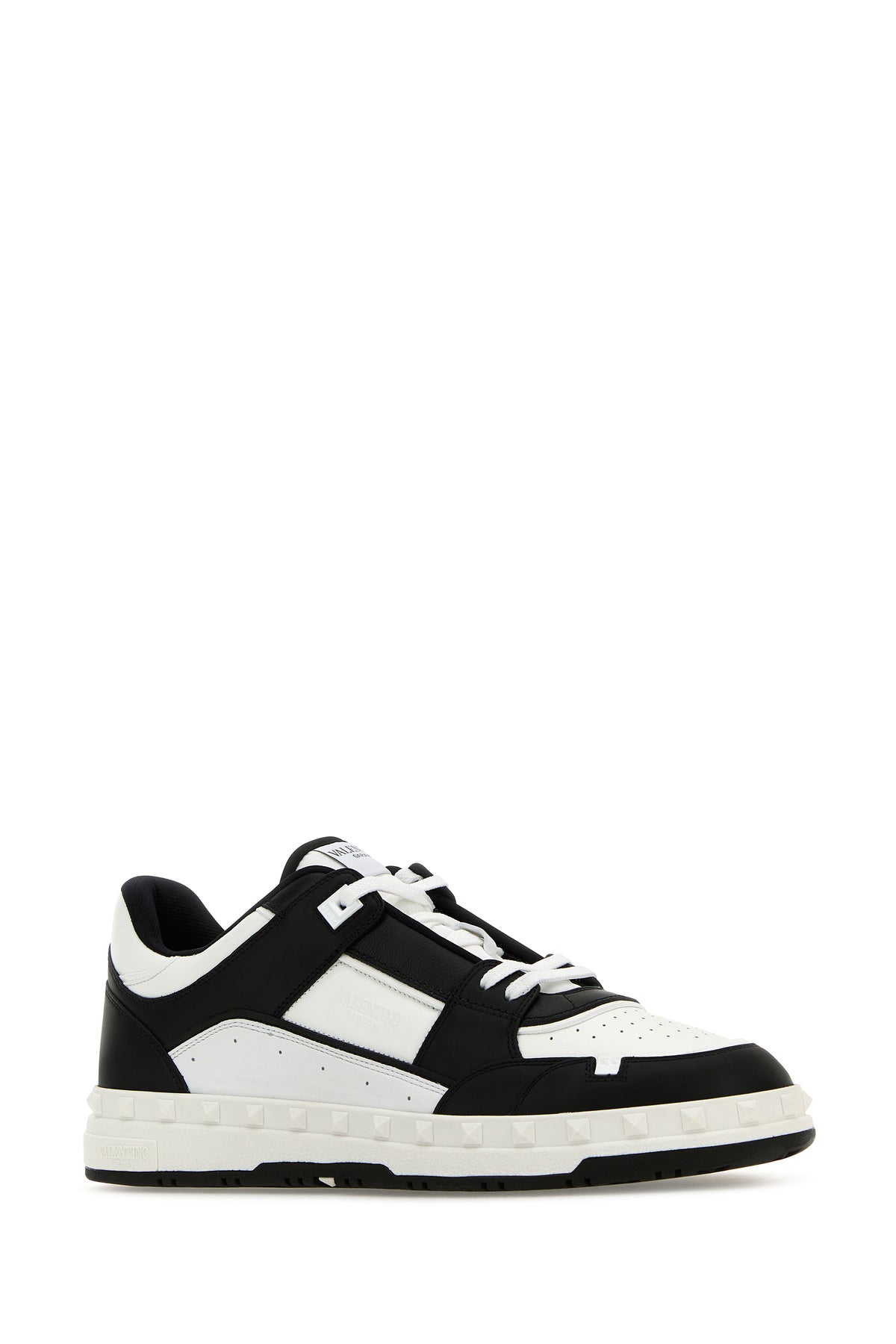 Sneakers realized in smooth calf leather characterized by in relief logo on the side enriched by rubber studs on the trimming.