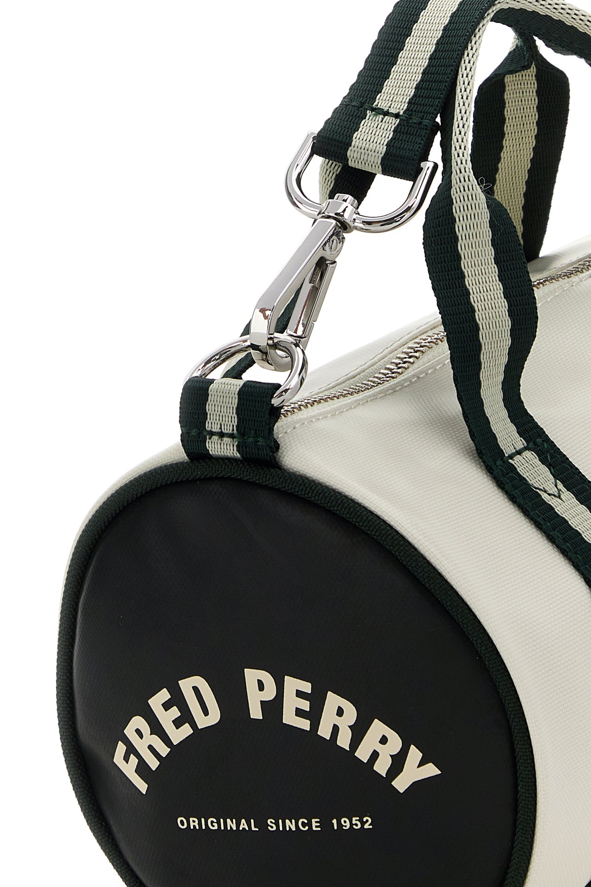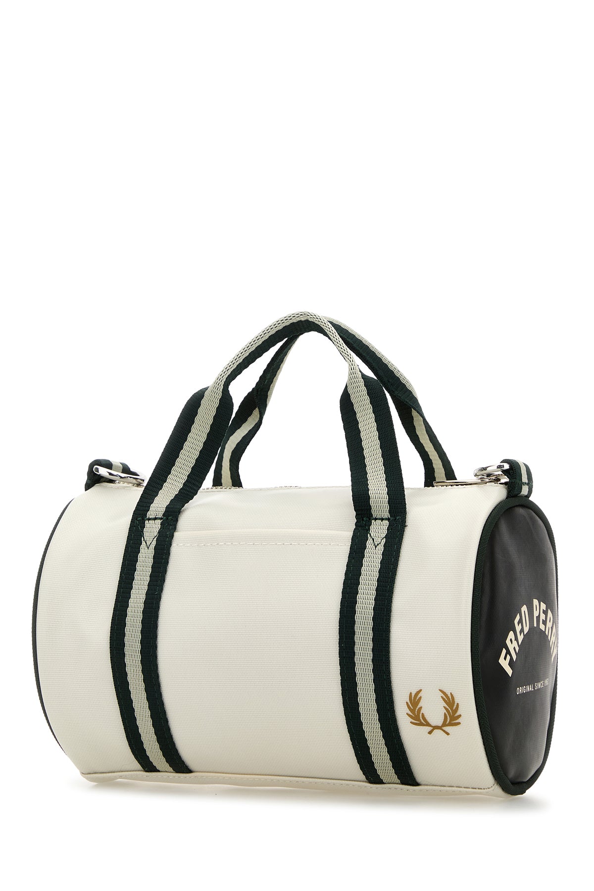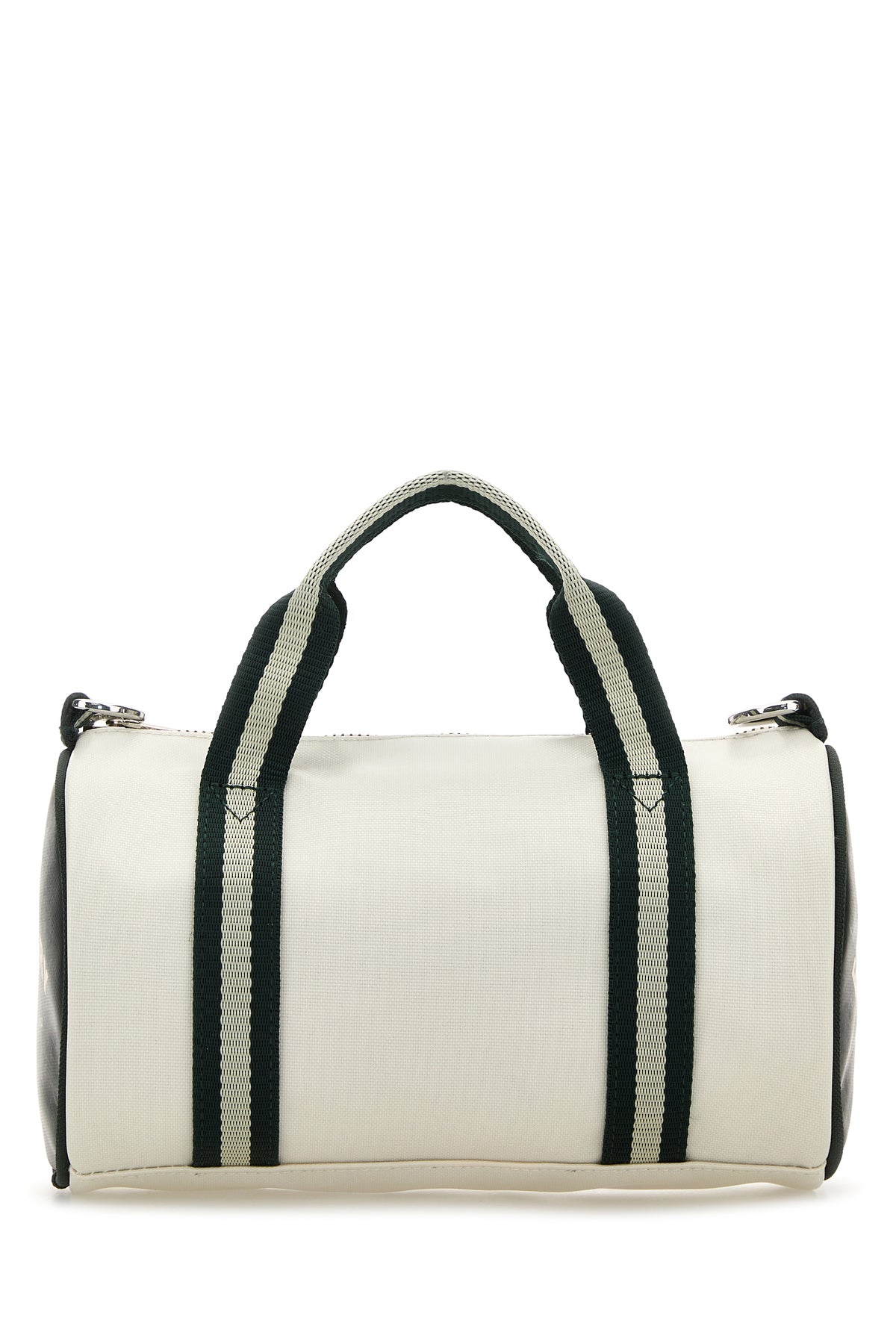 Handbag realized in coated canvas characterized by printed logo at the front.
