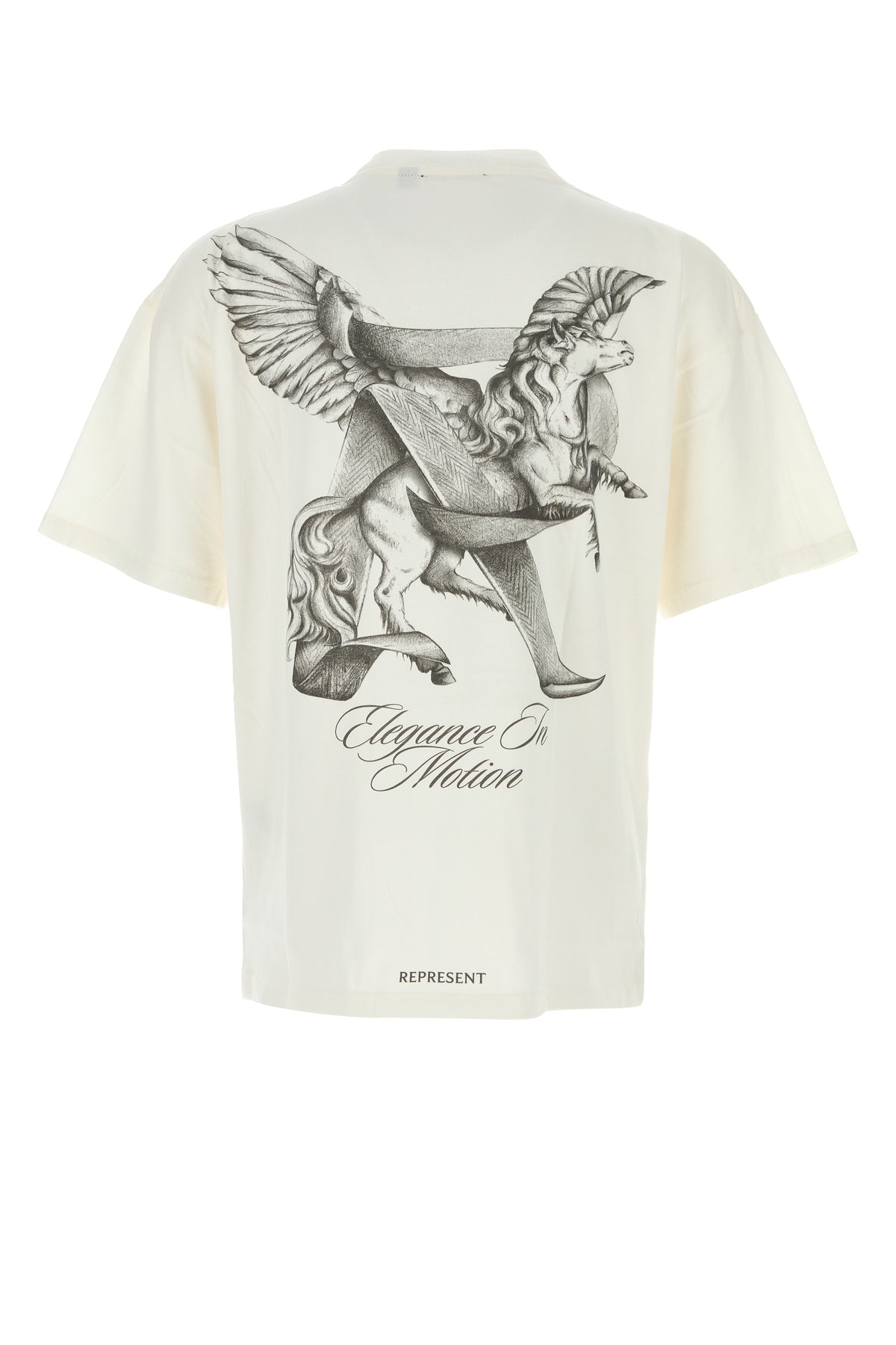 T-shirt realized in pure cotton characterized by Elegance In Motion print on the chest and at the back.