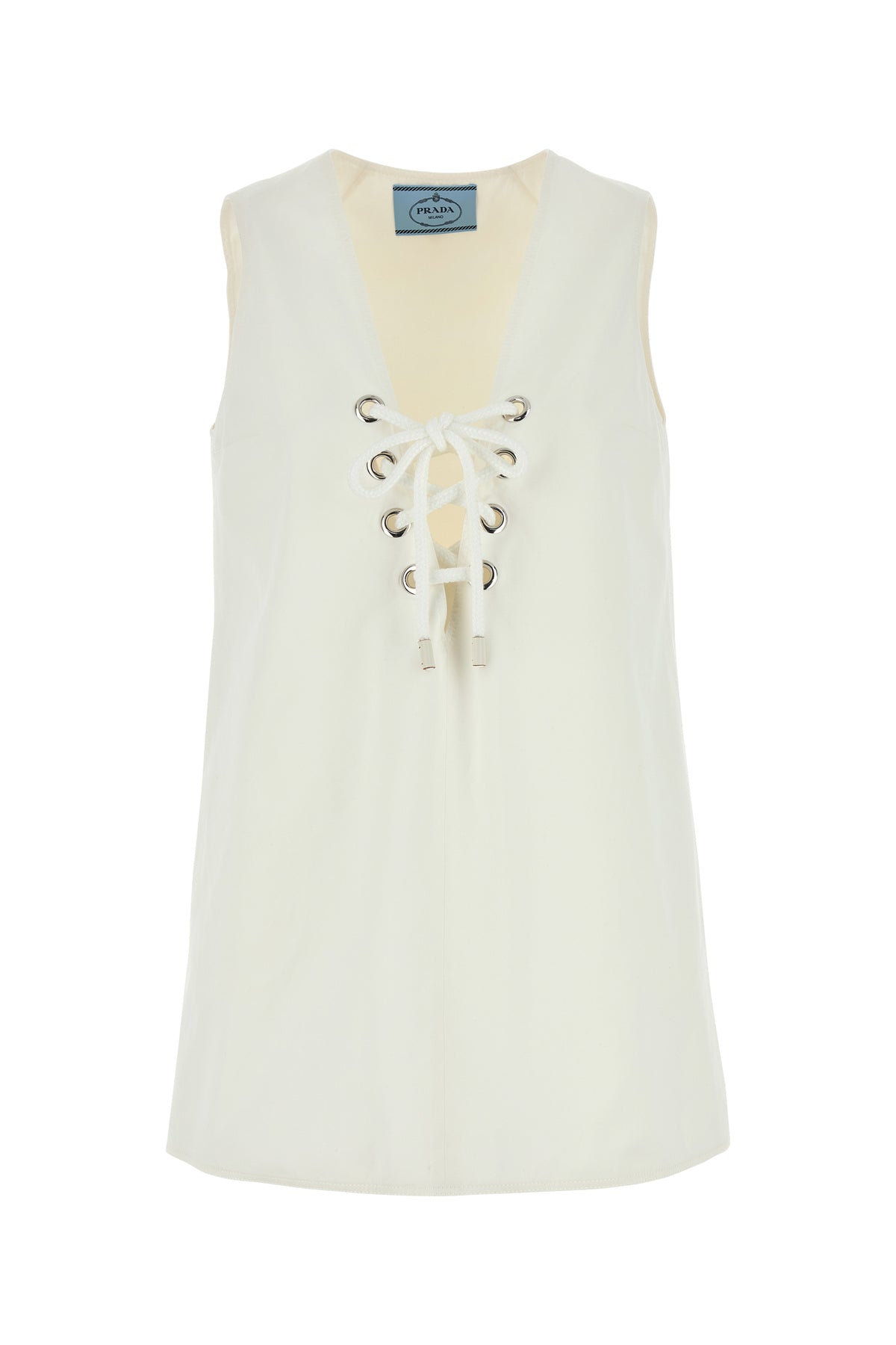 Mini dress realized in pure cotton characterized by laces to tie on the neckline.