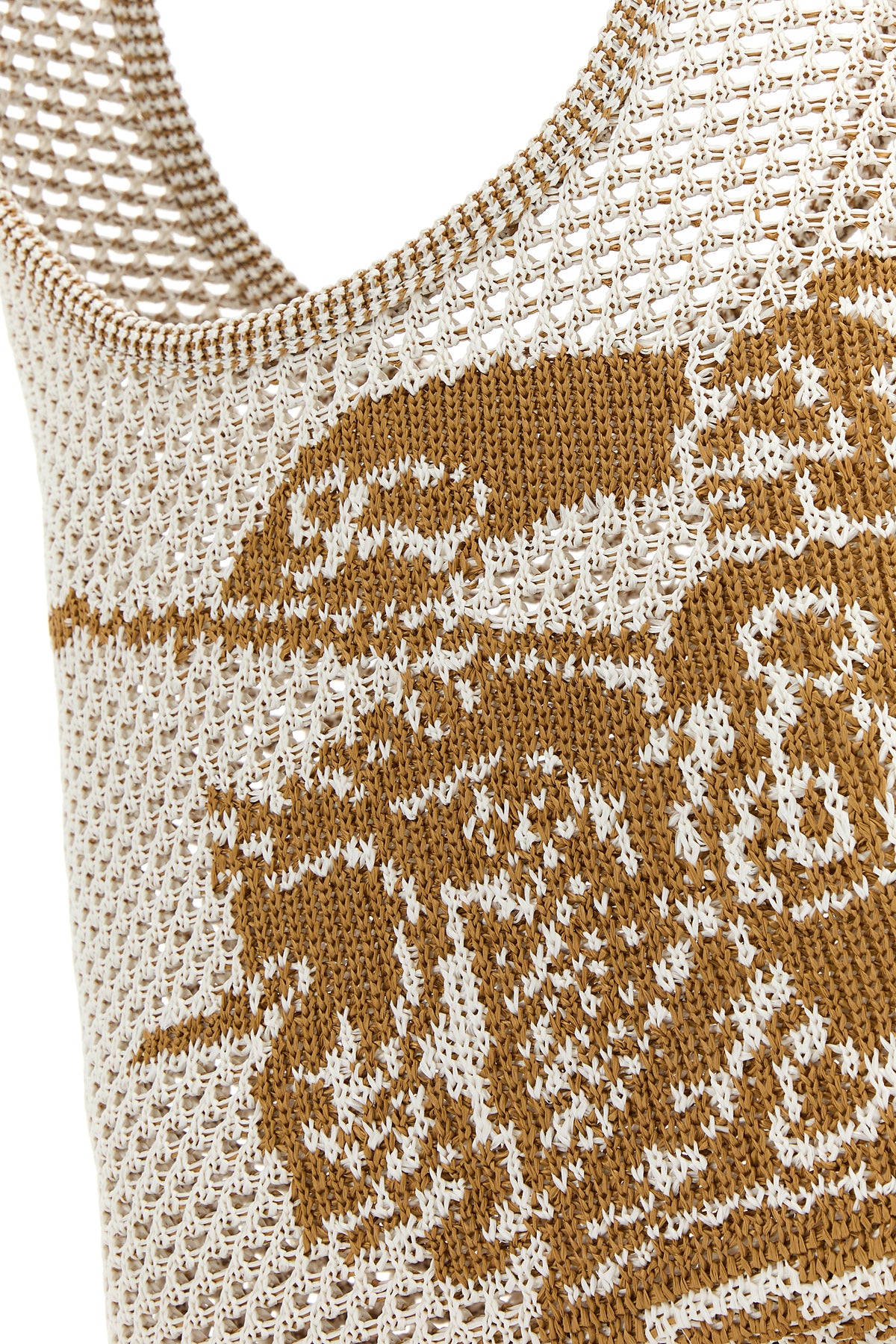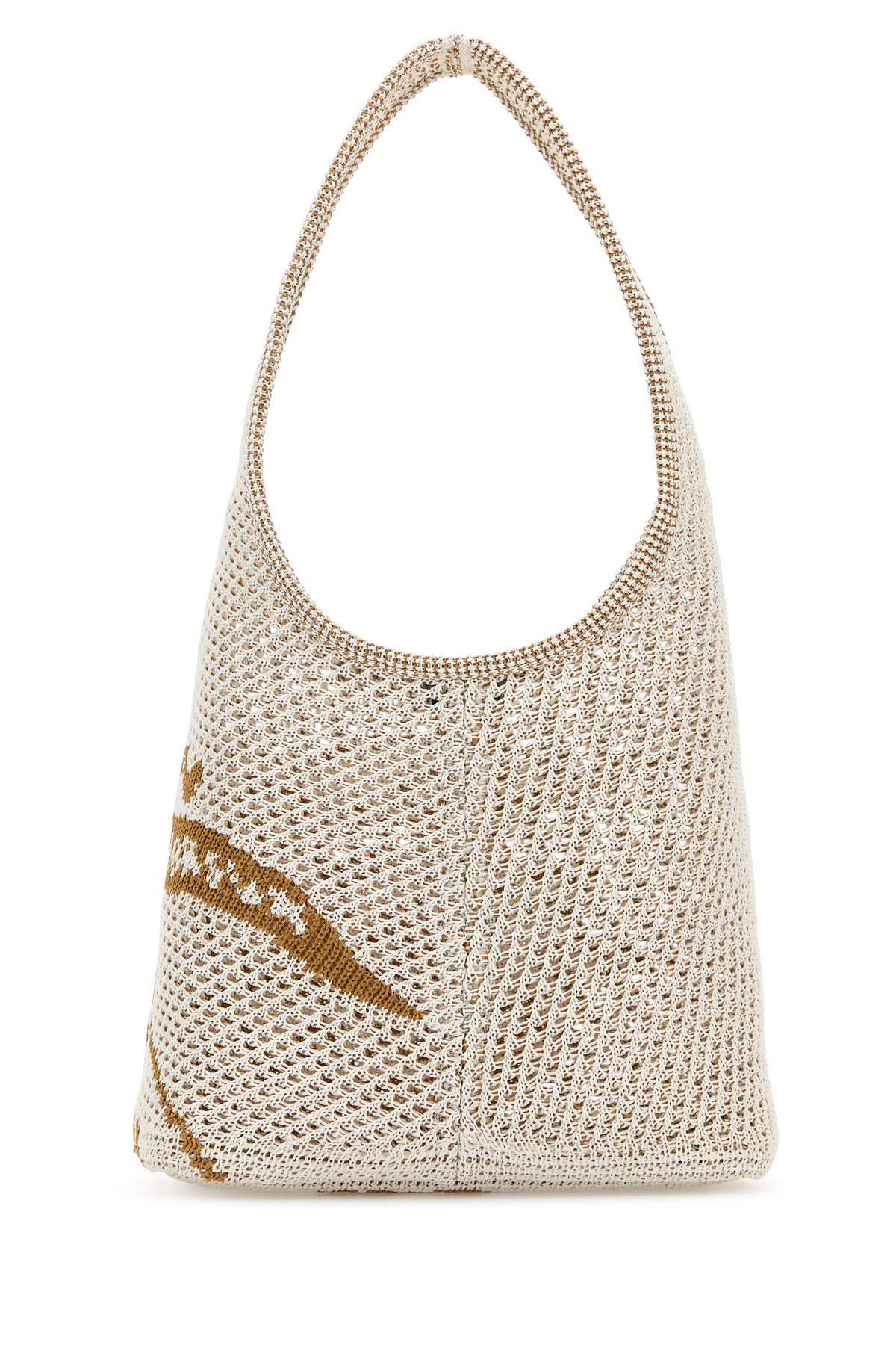 Shoulder bag realized in crochet characterized by contrasting Equestrian Knight embroidery at the front.