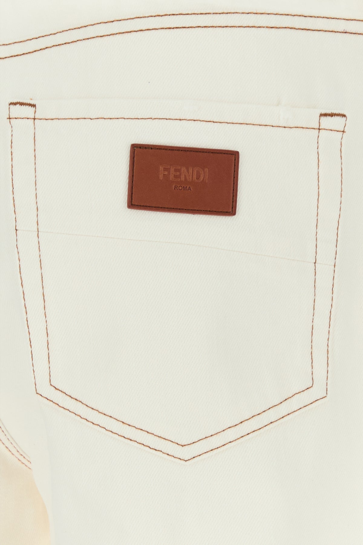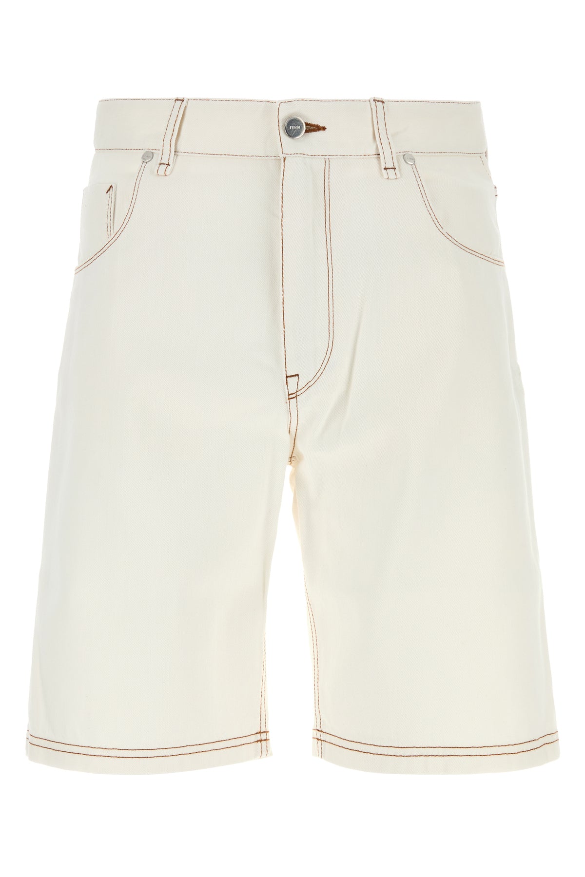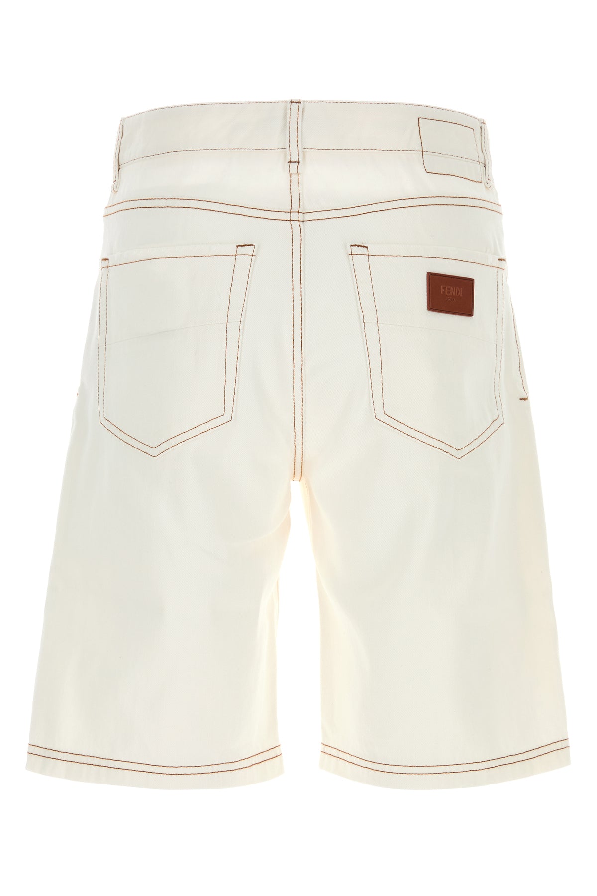 Bermuda shorts realized in pure cotton denim enriched by leather Fendi Roma label at the back.