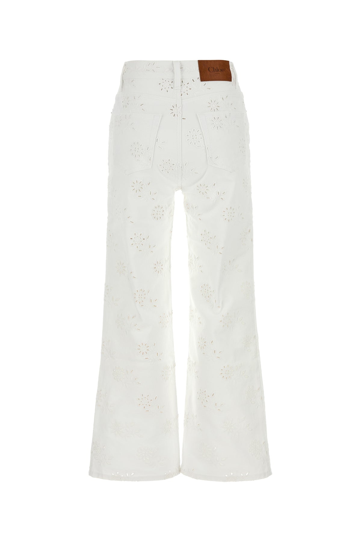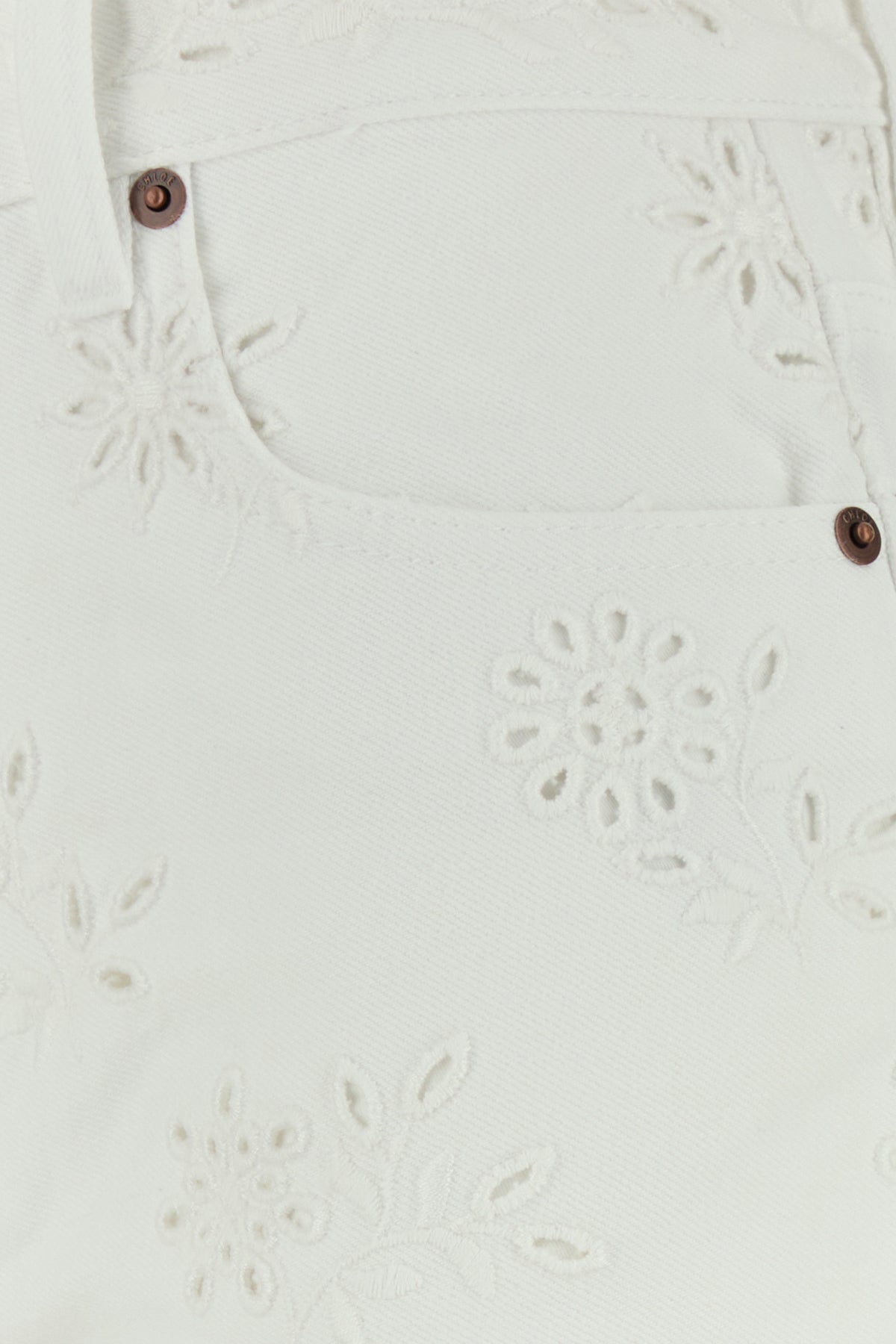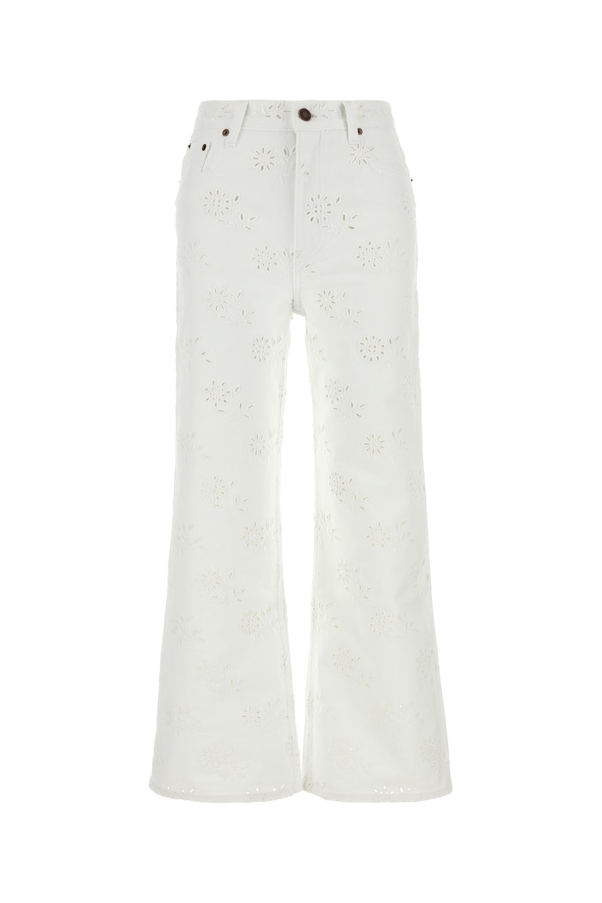 Jeans realized in pure cotton denim enriched by broderie anglaise inserts on the entire surface.