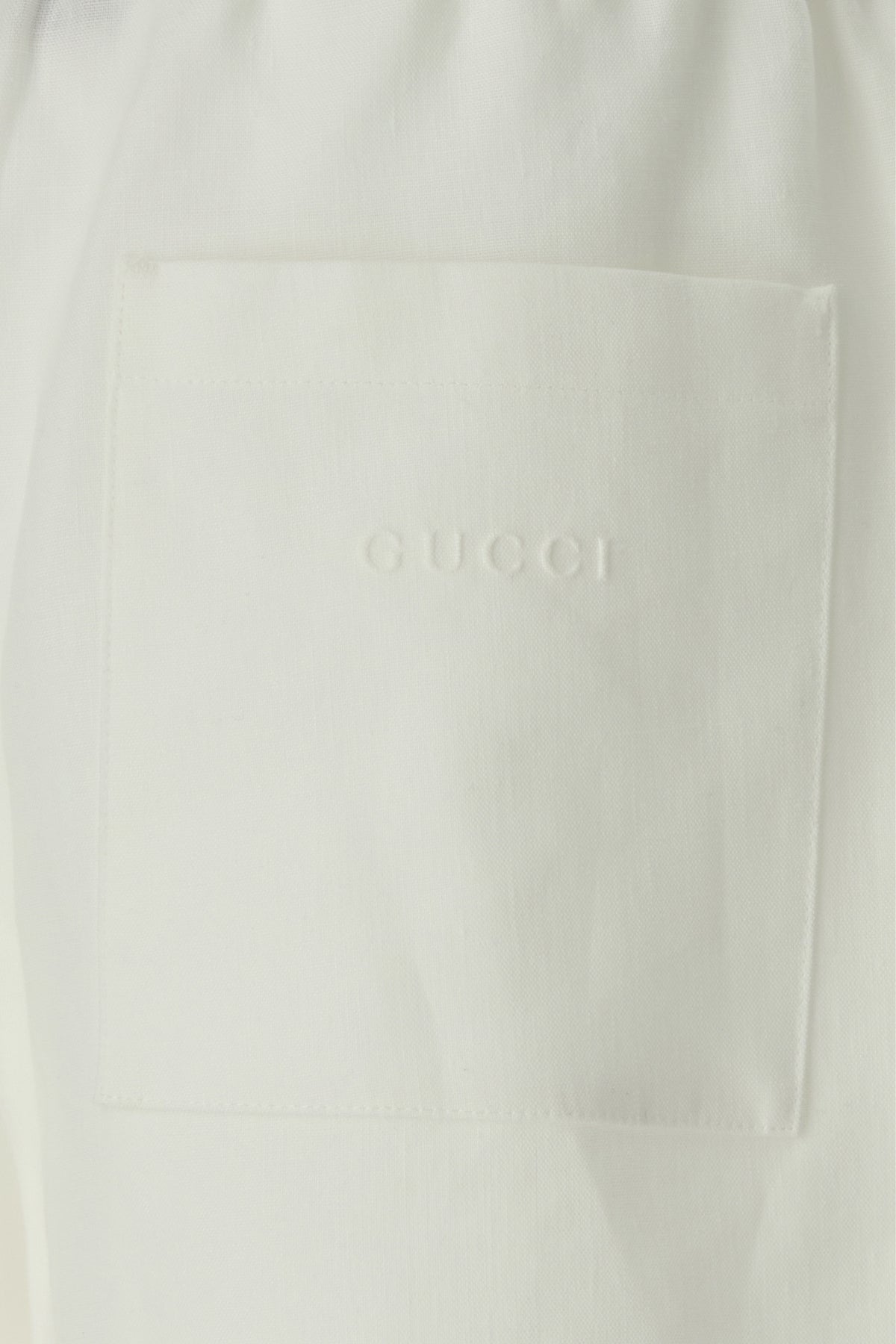 Bermuda shorts realized in pure linen characterized by tonal embroidered logo at the back.