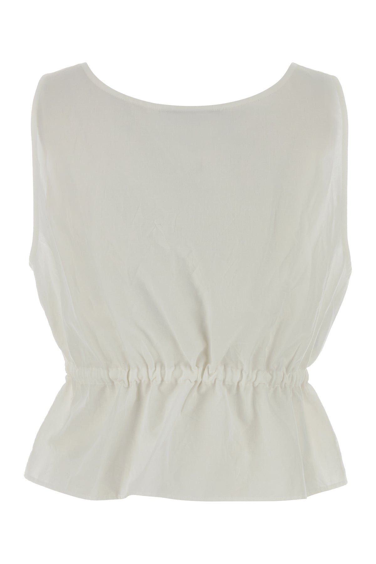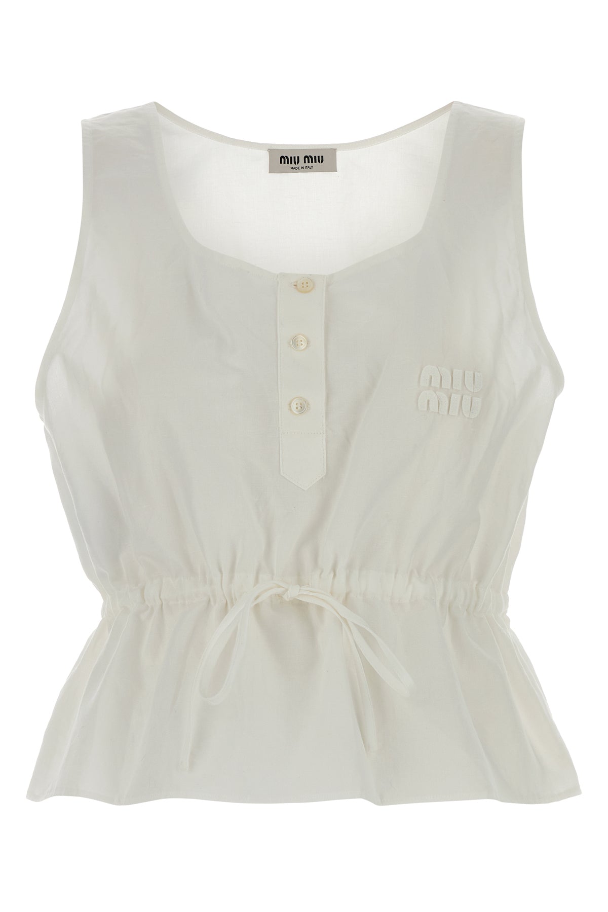 Tank top realized in cotton and linen poplin enriched by logoed patch on the chest.
