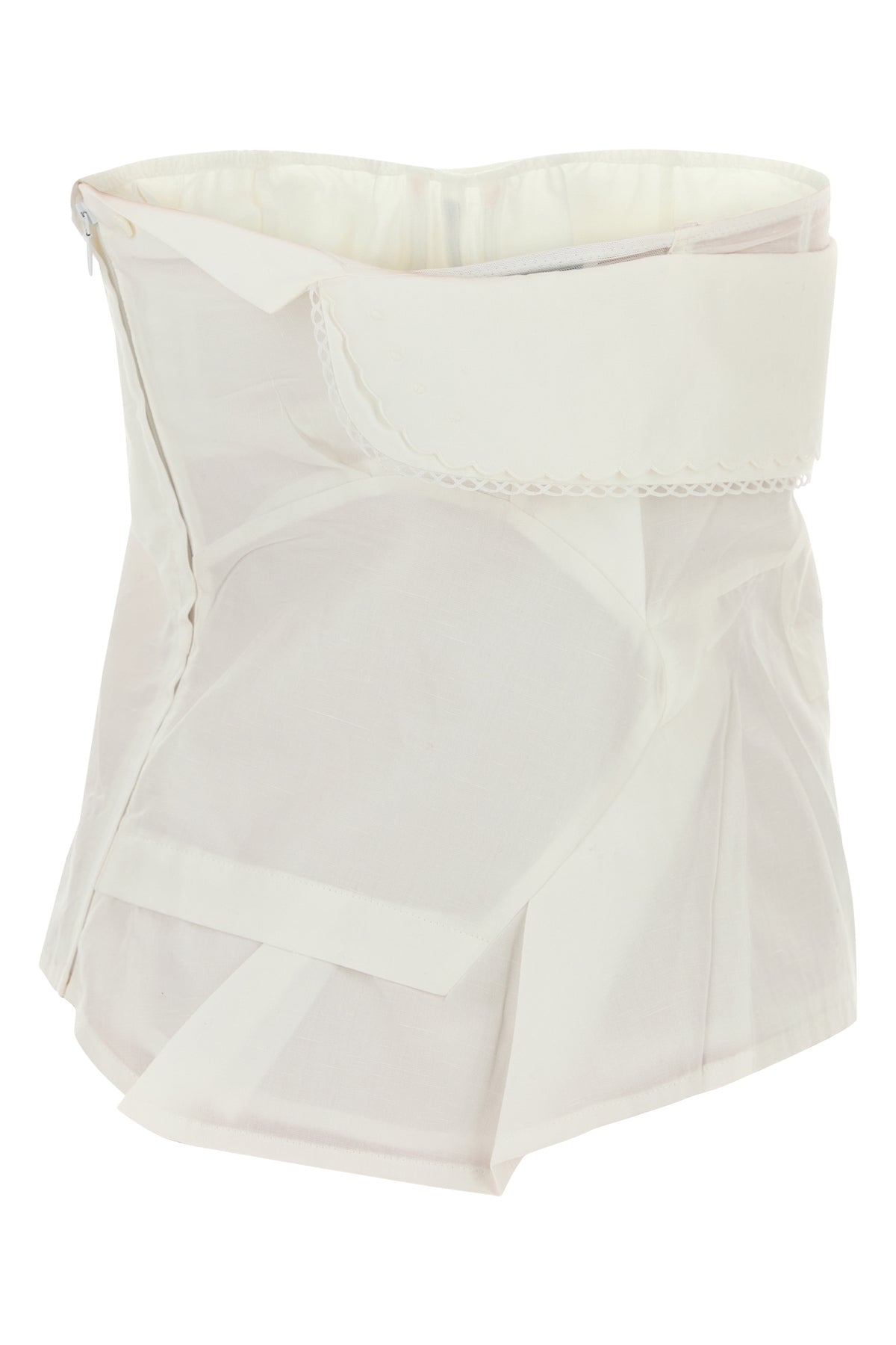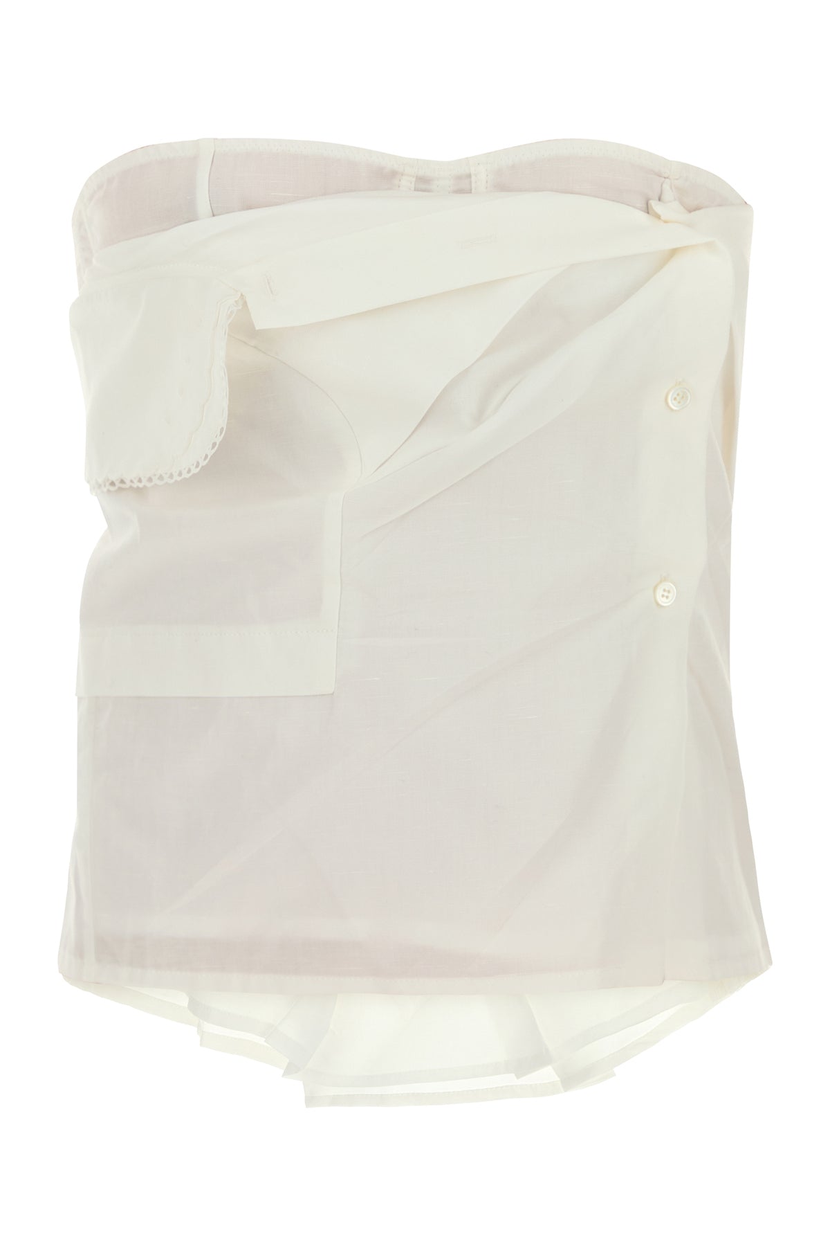 Sleeveless top realized in cotton and linen poplin characterized by slit at the front.