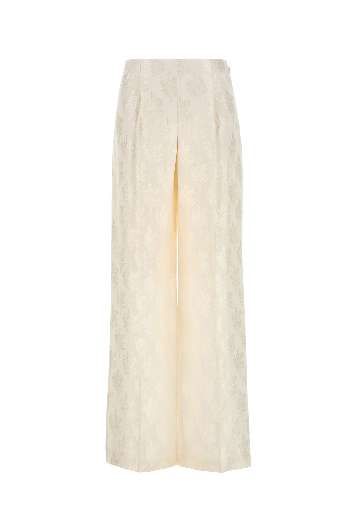 Wide-leg pant realized in pure silk characterized by floral embroidery on the entire surface.