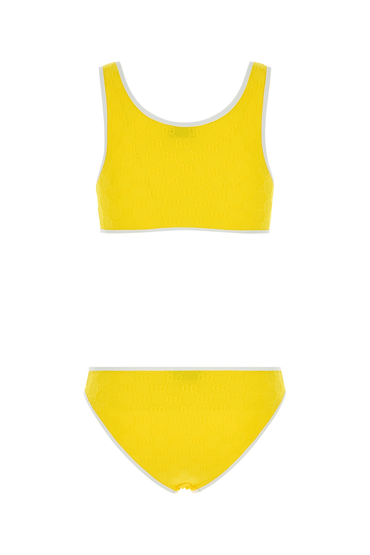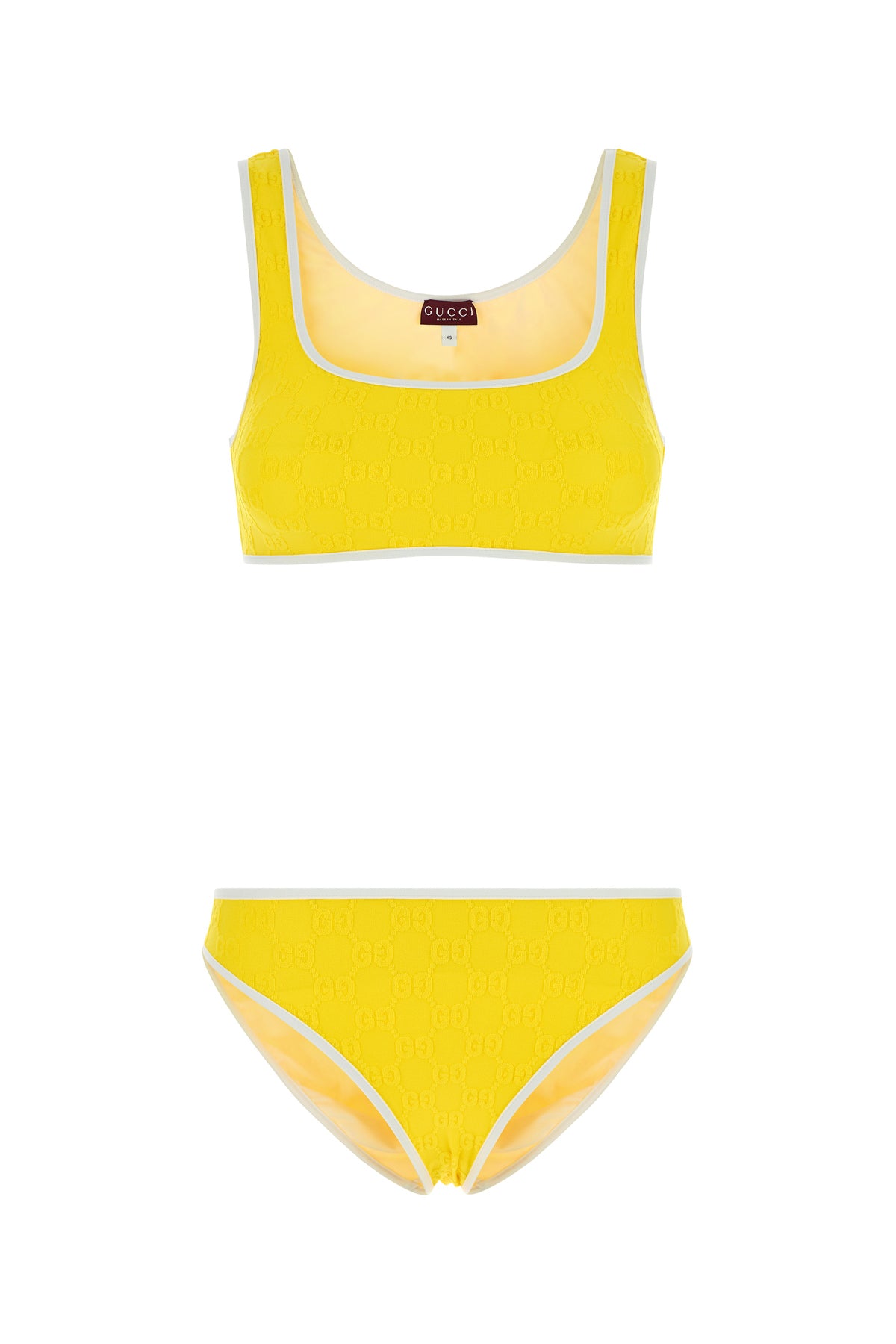 Bikini realized in stretch nylon characterized by GG motif in relief on the entire surface.