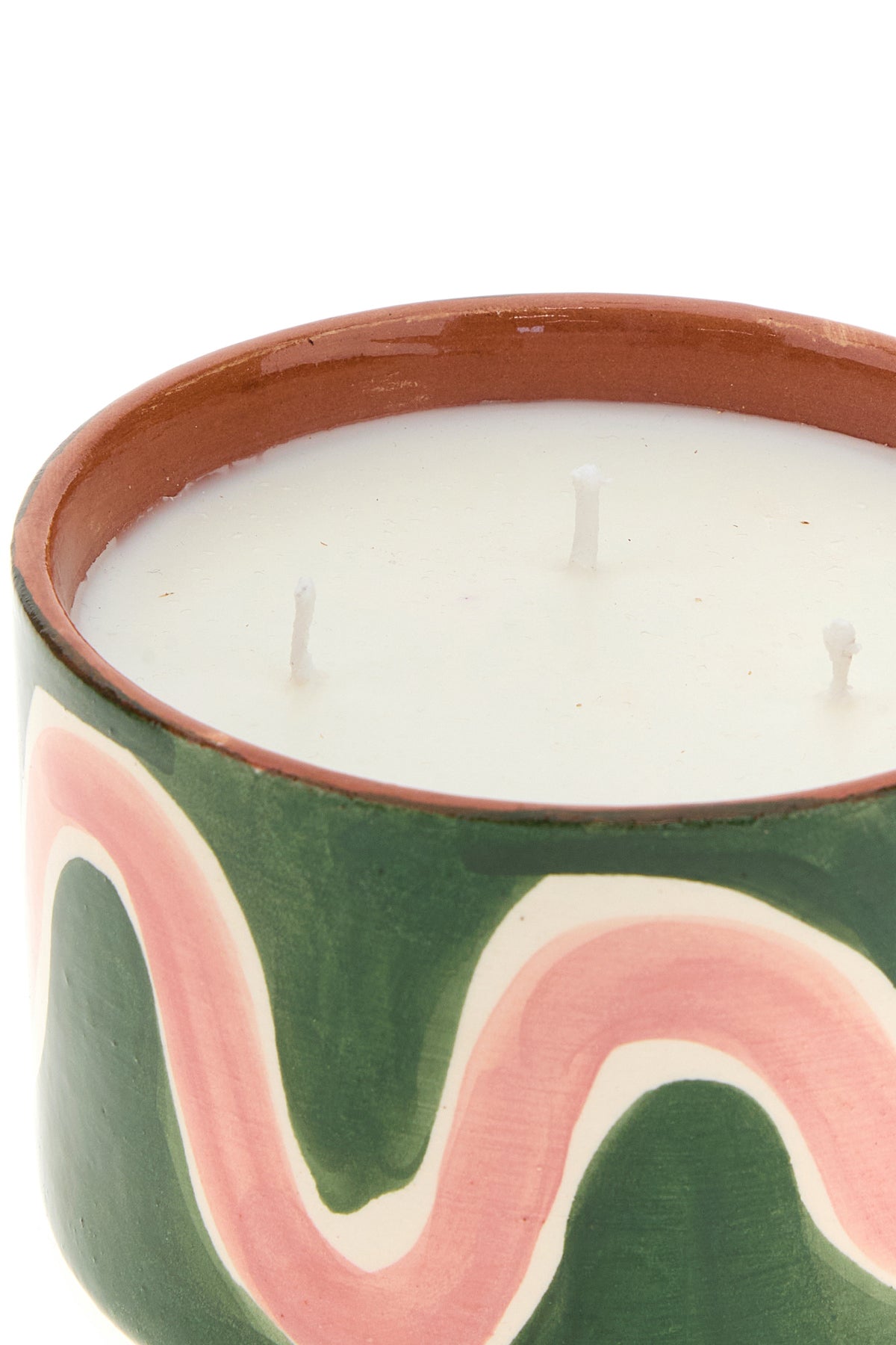 AGAVE 3 is hand-made using traditional ceramic techniques. The design has been hand-drawn by Laurence using pigments and pastels. The candle features an orange blossom scent, hydrogenated soybean wax and 3 wicks.