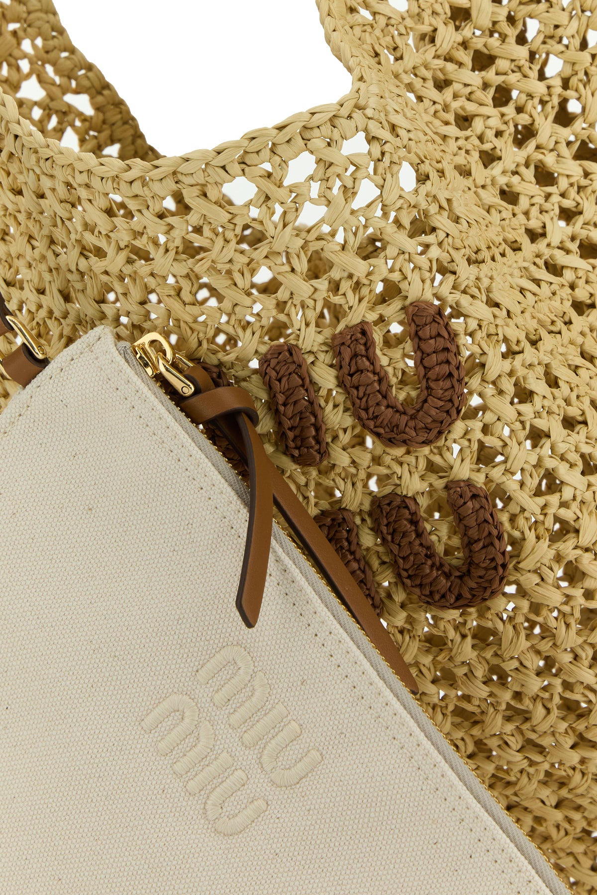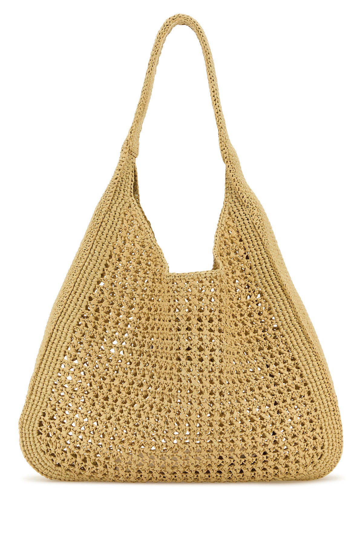 Shopping bag realized in crochet characterized by contrasting embroidered logo at the front.