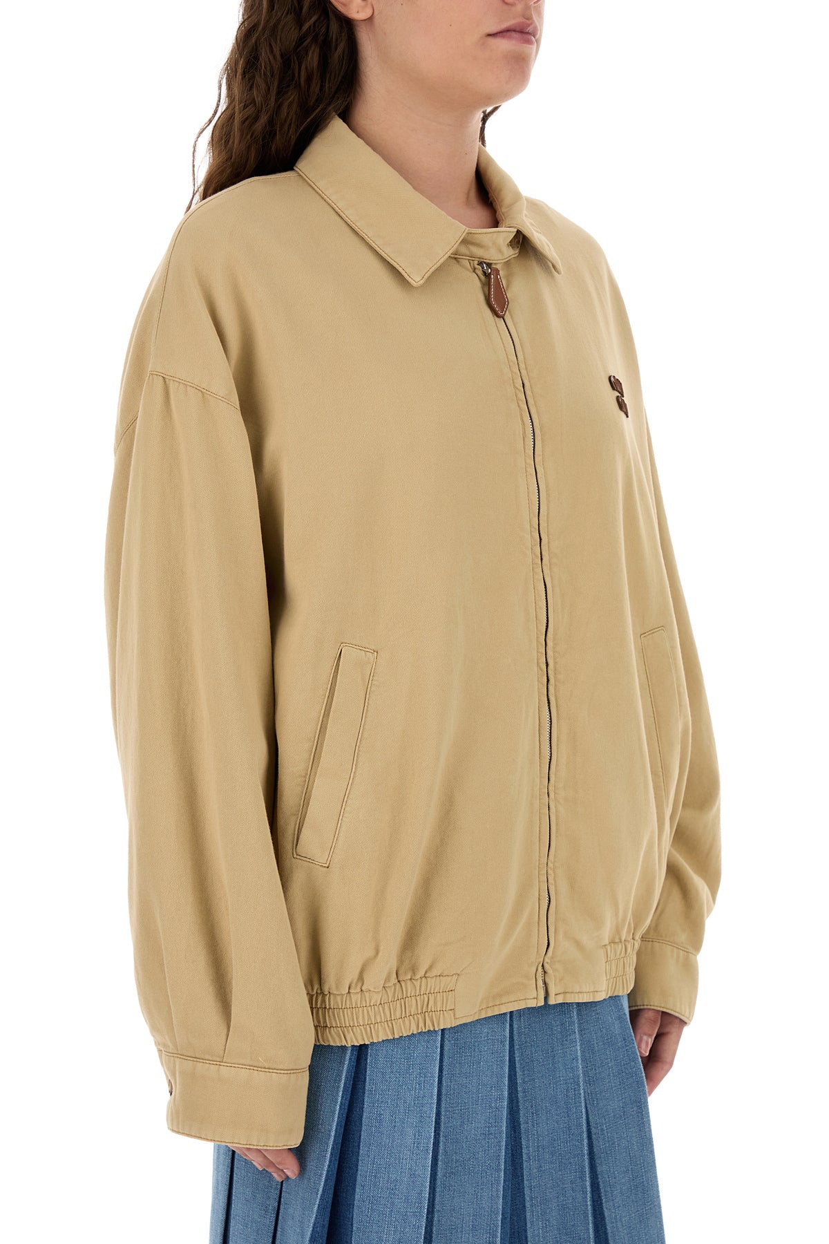 Jacket realized in pure cotton denim enriched by contrasting logoed patch on the chest.