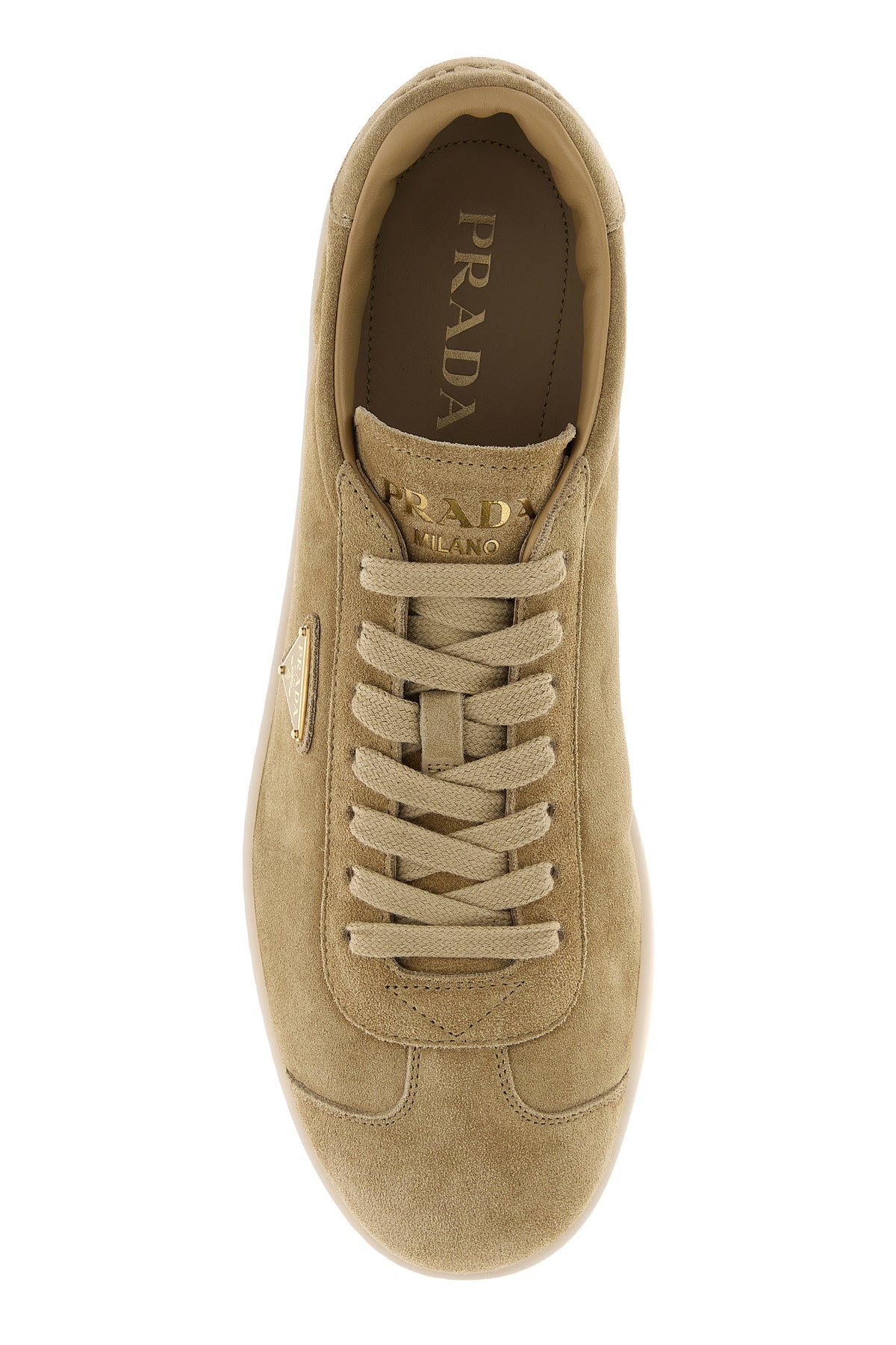Sneakers realized in suede characterized by embossed logo on the heel and logo in relief at the back enriched by metal iconic logoed triangle on the side.