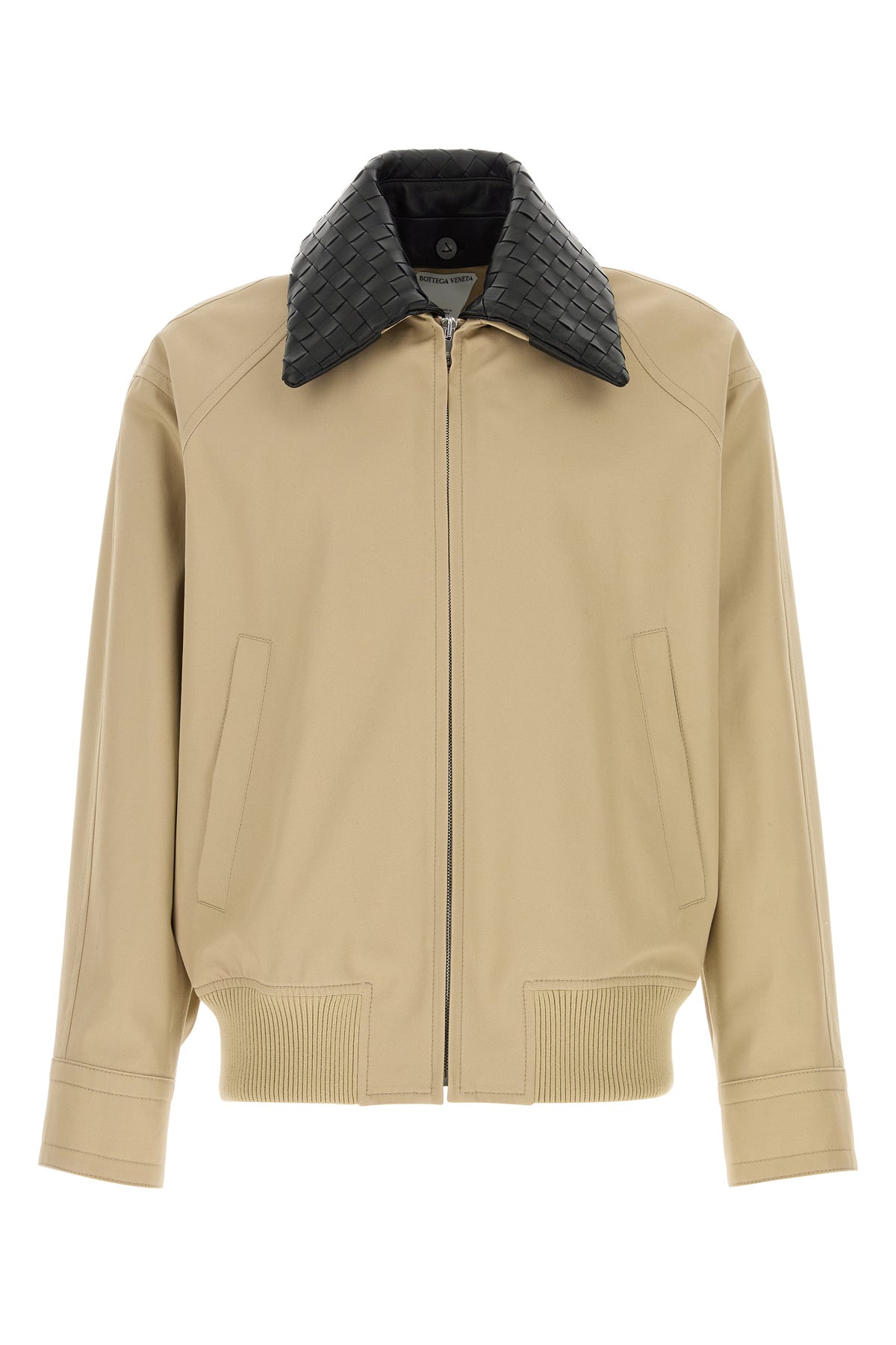 Jacket realized in pure cotton twill characterized by detachable leather collar with iconic Intrecciato motif.