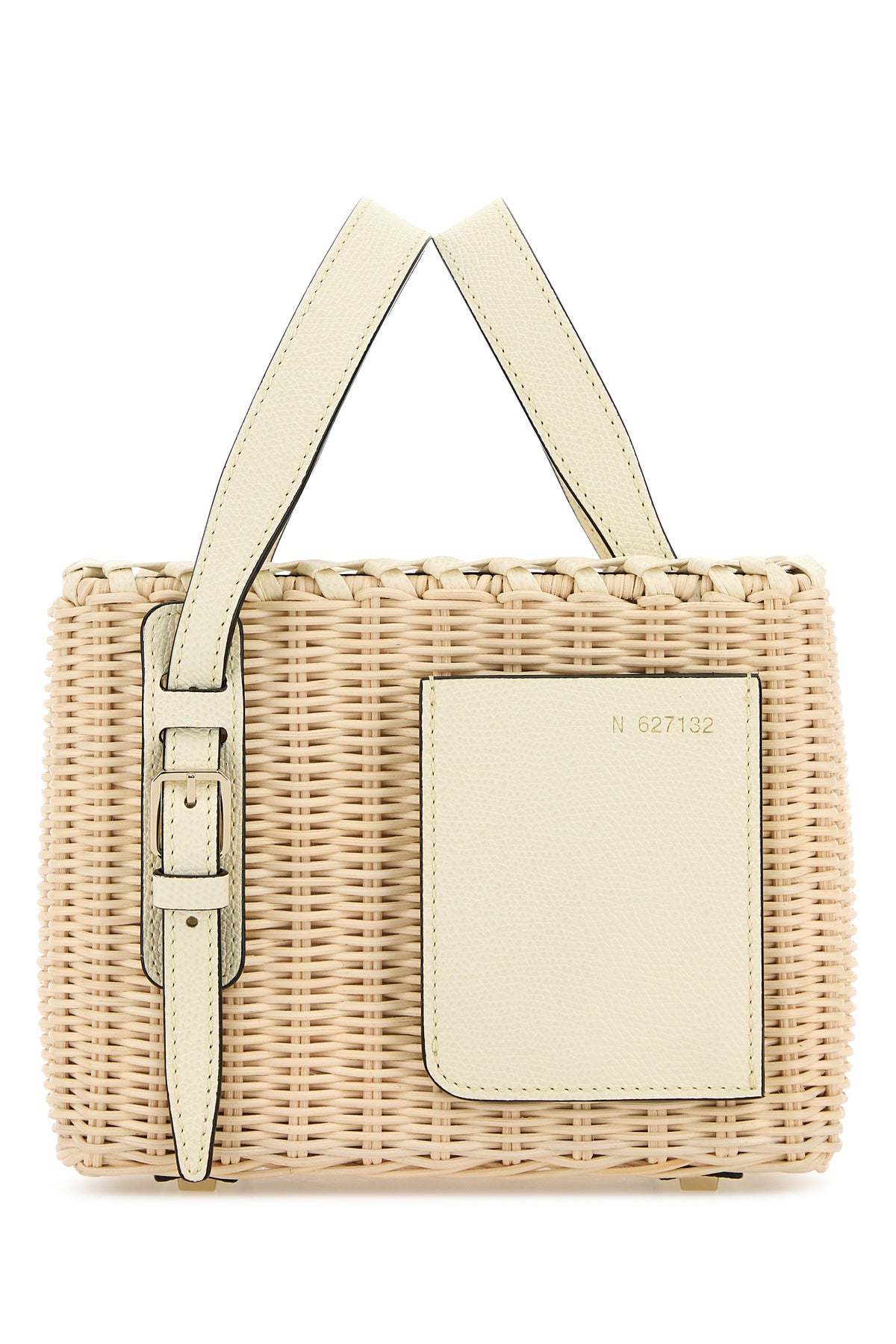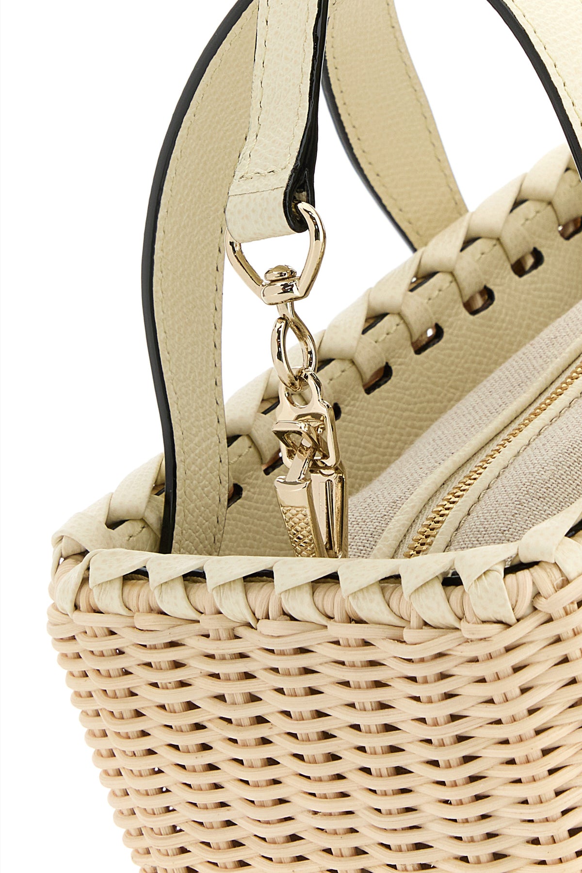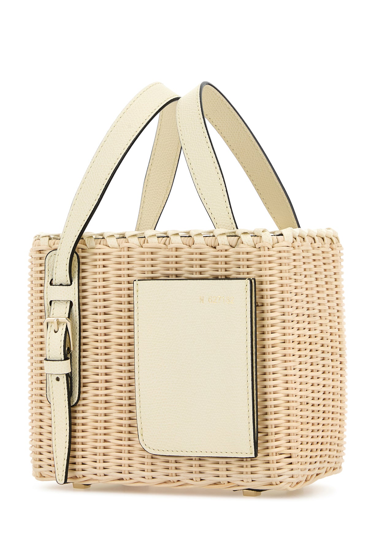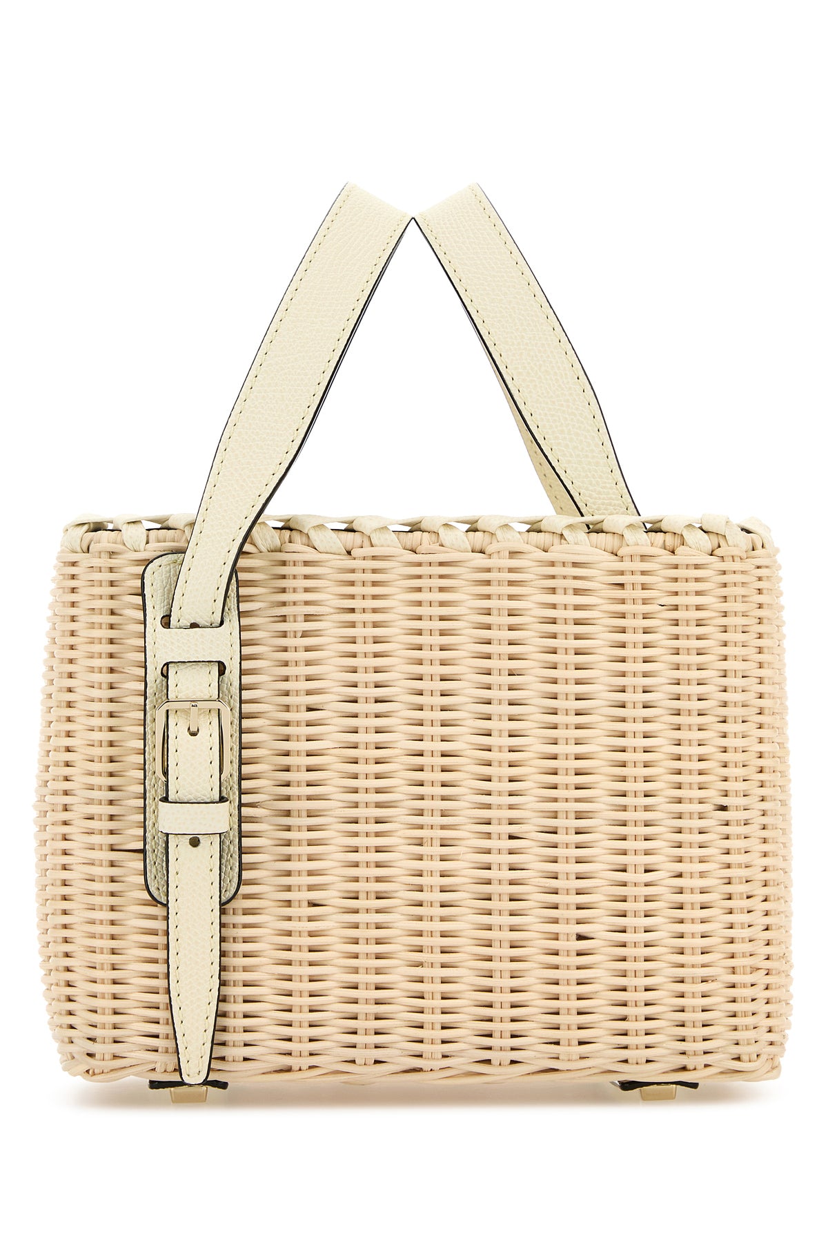 Bucket bag realized in wicker enriched by patch leather pocket at the front.