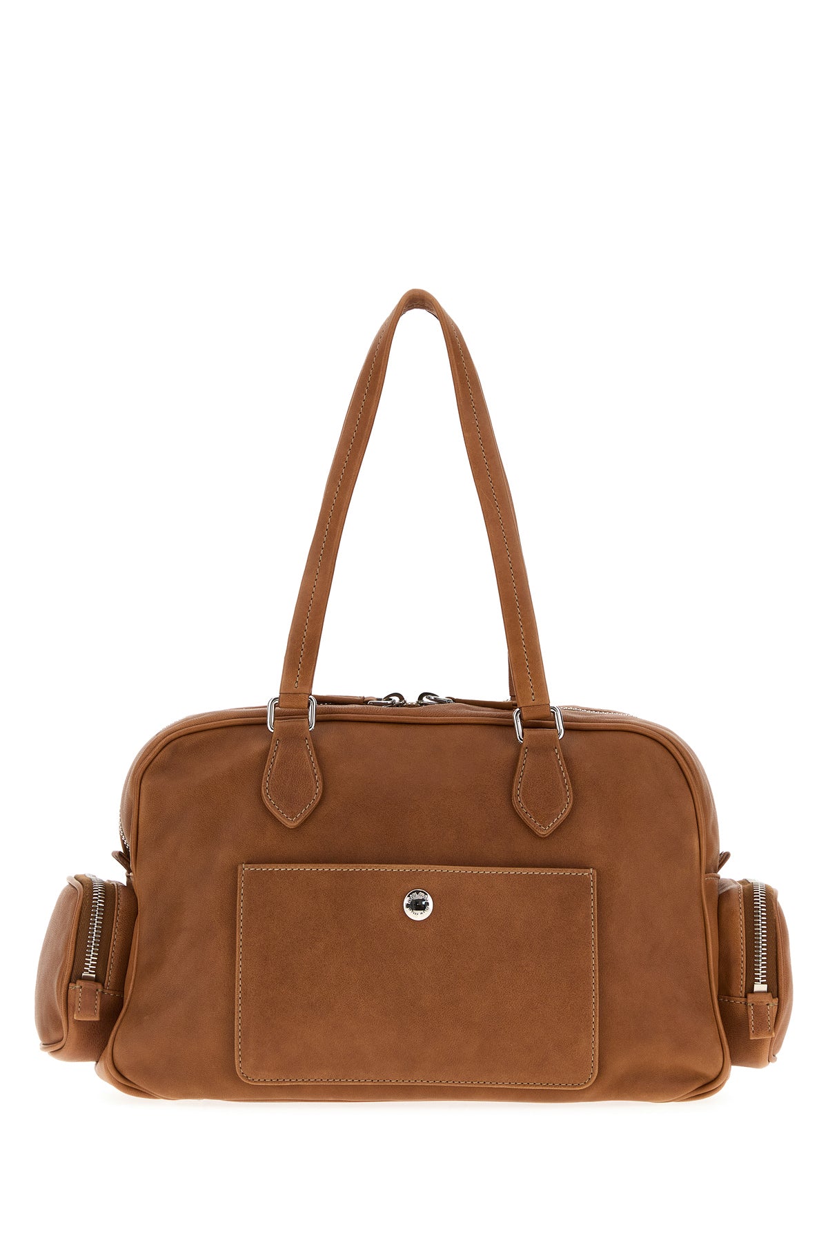 Shoulder bag realized in slightly pebble leather characterized by logo in relief at the front.