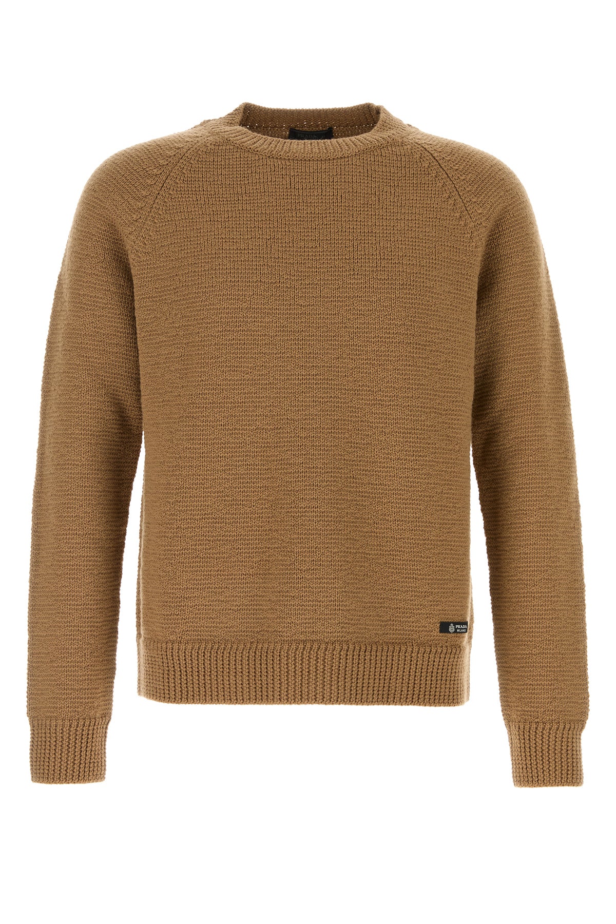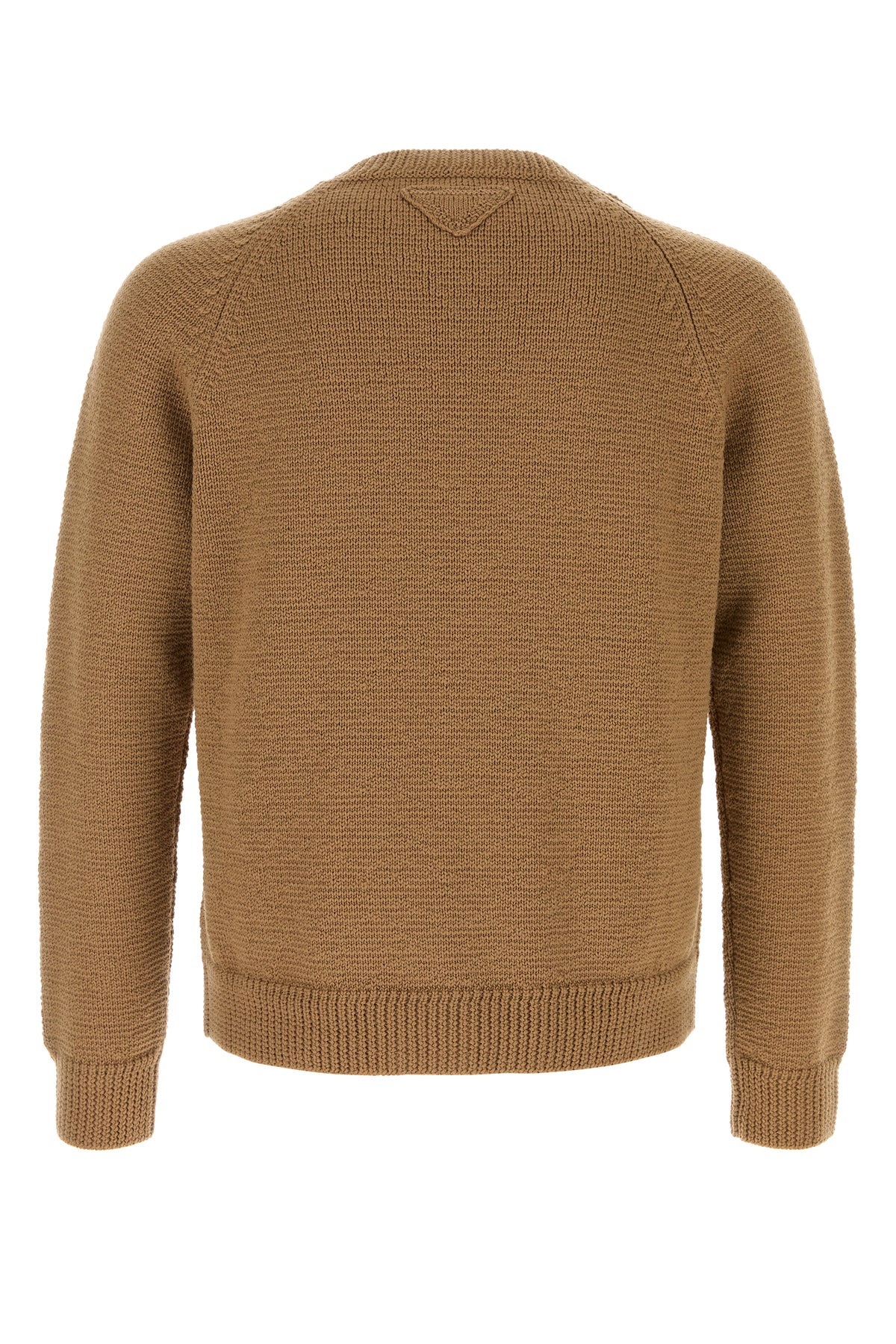 Sweater realized in pure virgin wool enriched by logoed label at the front and tonal fabric iconic triangle at the back.