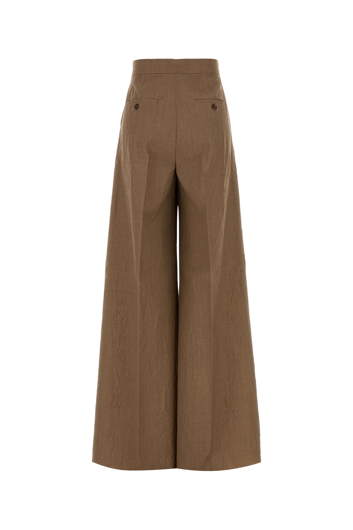 Flared leg pant realized in pure wool characterized by inverted pleats.