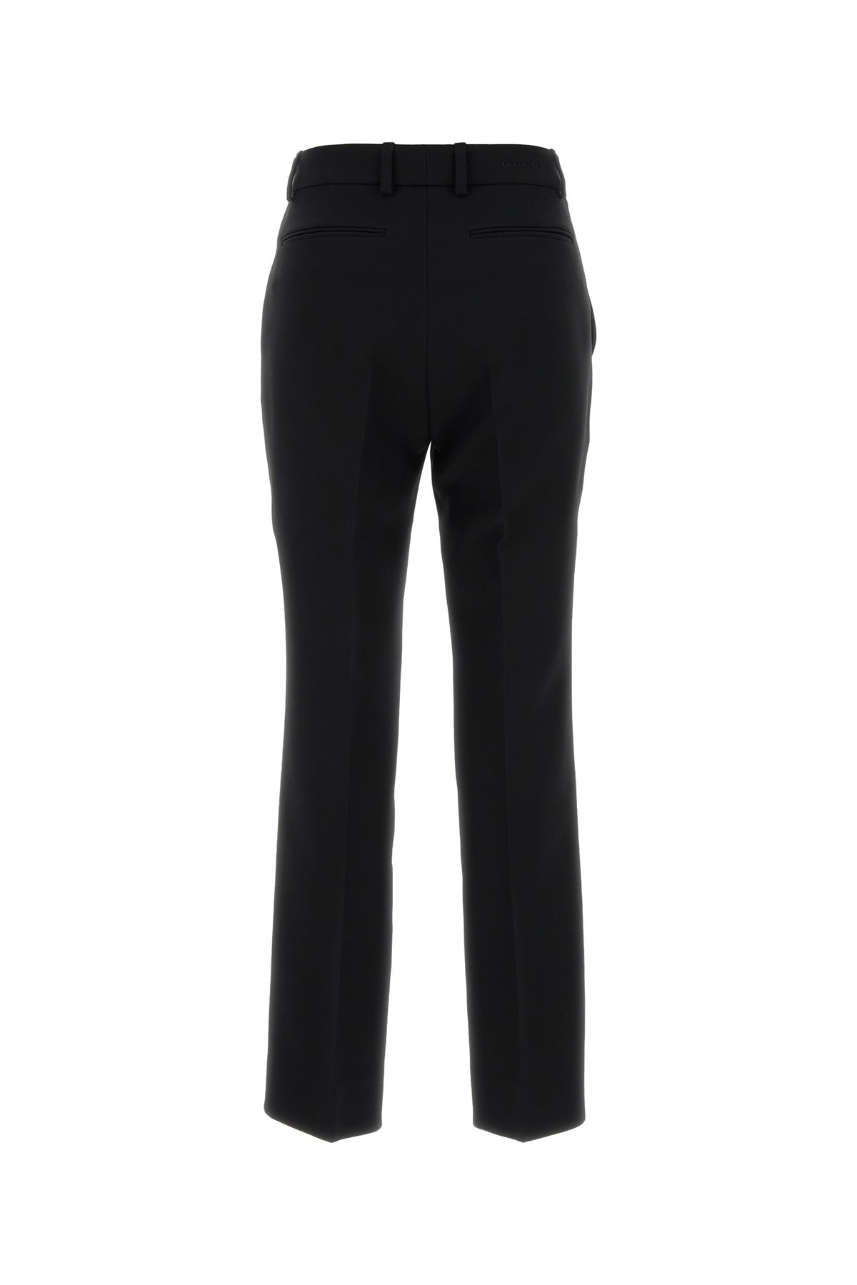 Pant realized in silk and wool cady characterized by tonal Gucci embroidery at the back.
