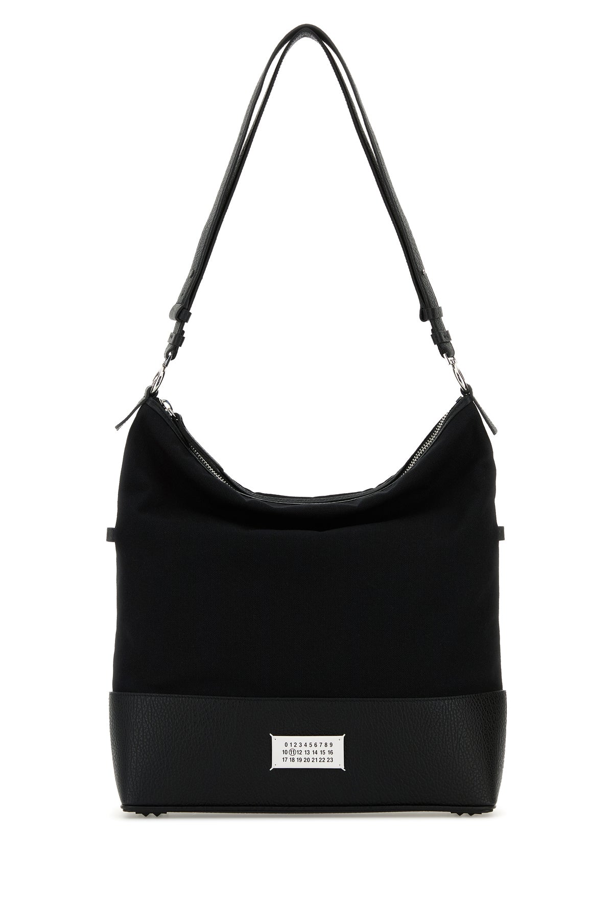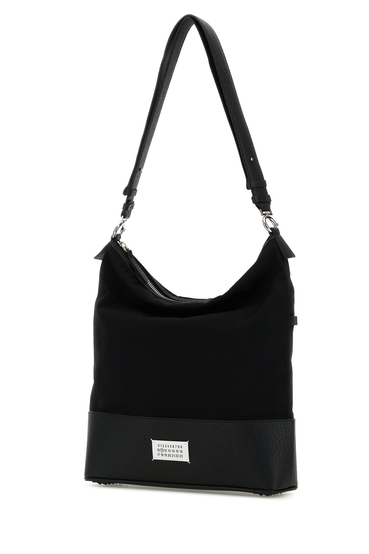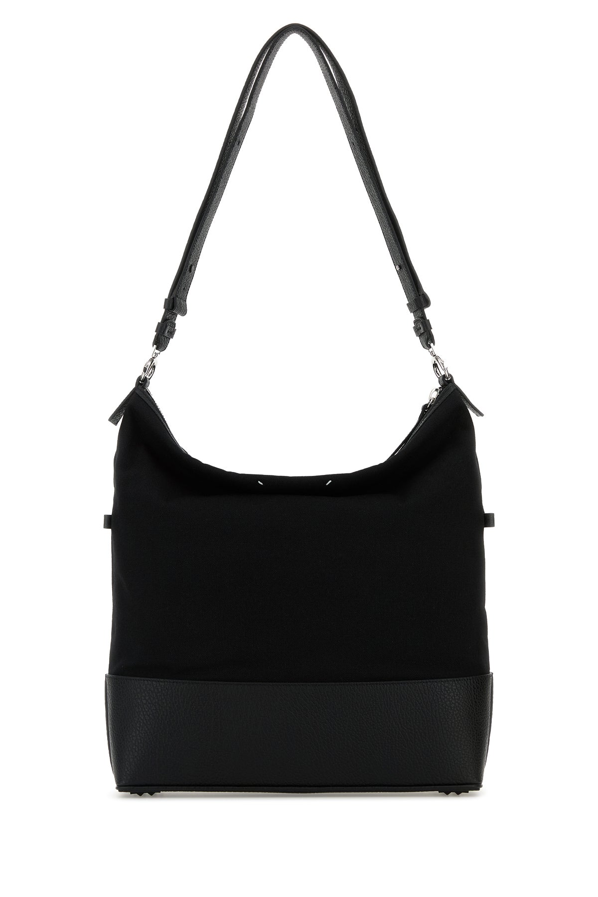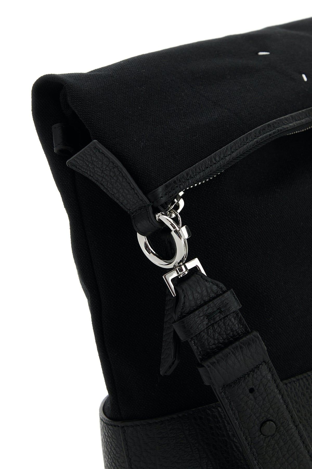 Shopping bag realized in canvas with tonal leather insert on the hemline characterized by iconic contrasting stitching at the back enriched by contrasting logoed label at the front.
