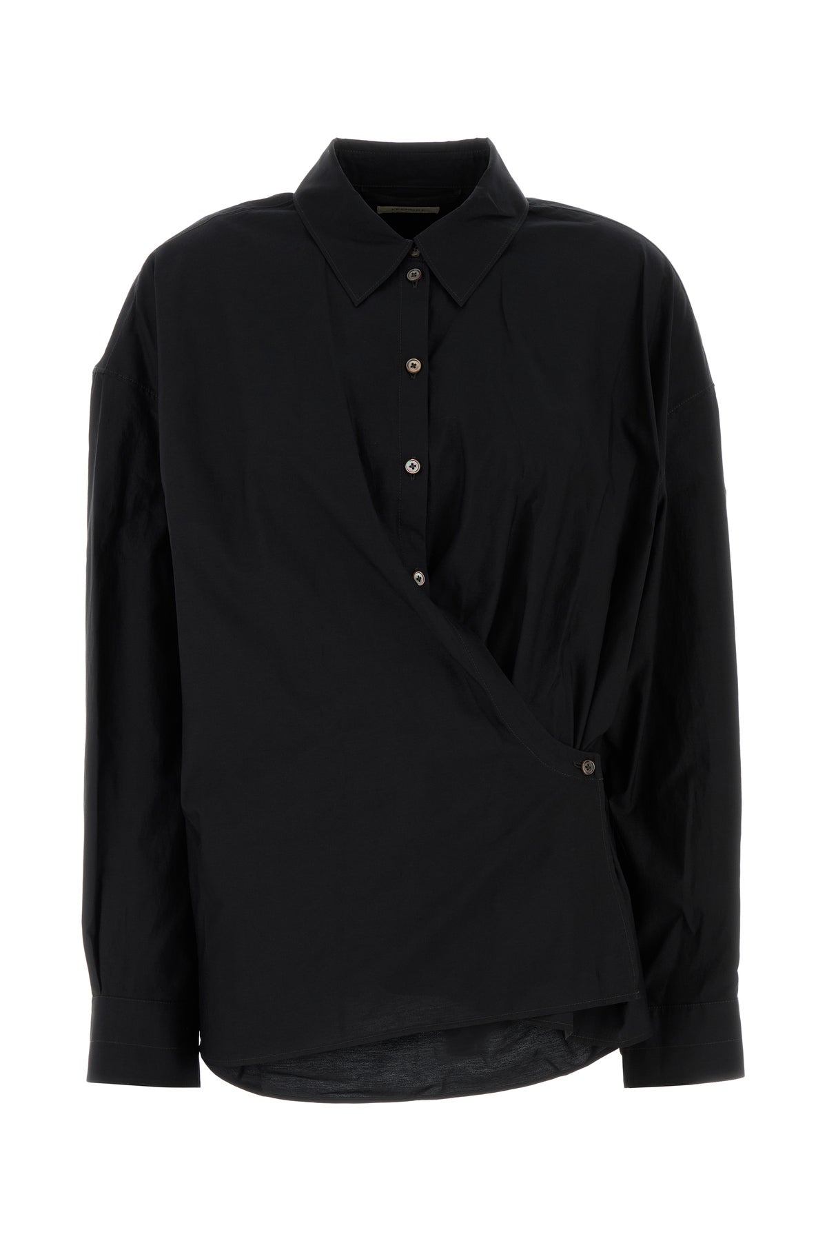 Shirt realized in cotton and stilk characterized by twisted closure by buttons.