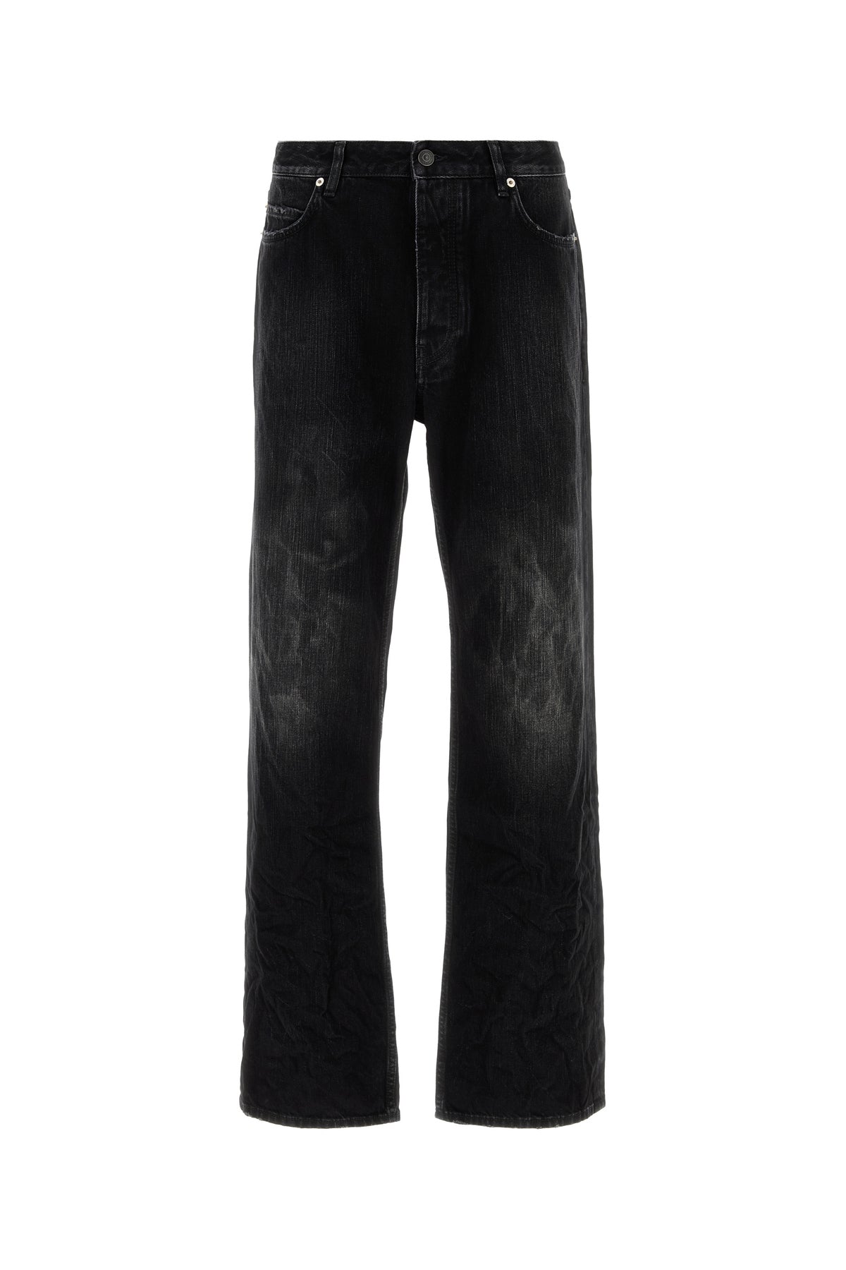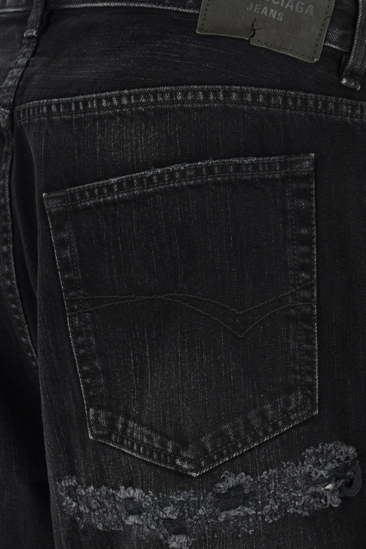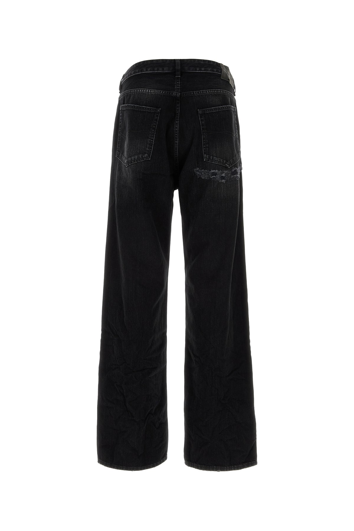 Wide-leg jeans realized in stonewashed and distressed pure cotton denim with intentional rip enriched by logoed label at the back.
