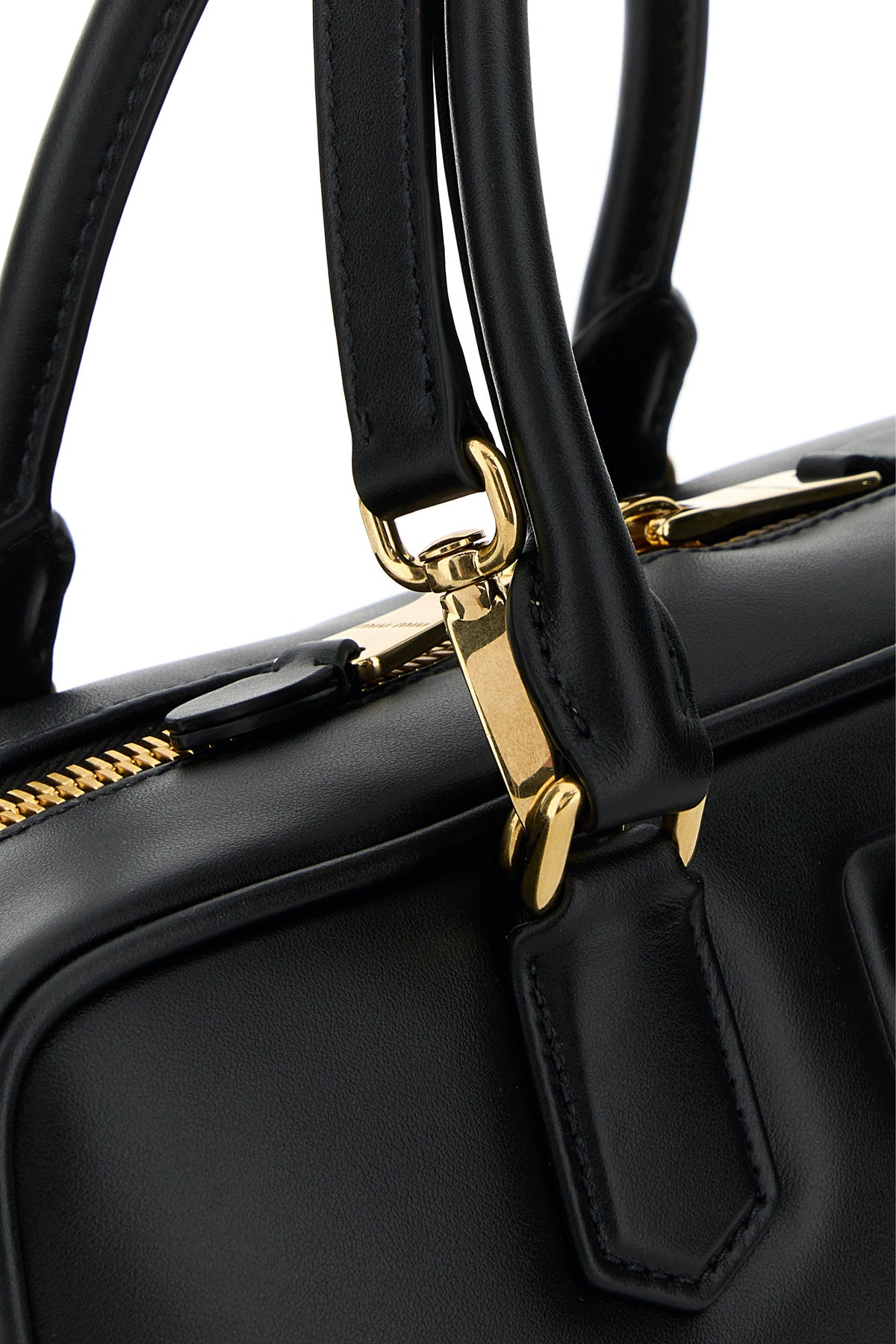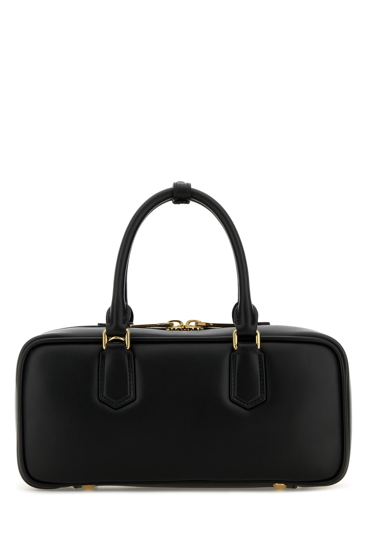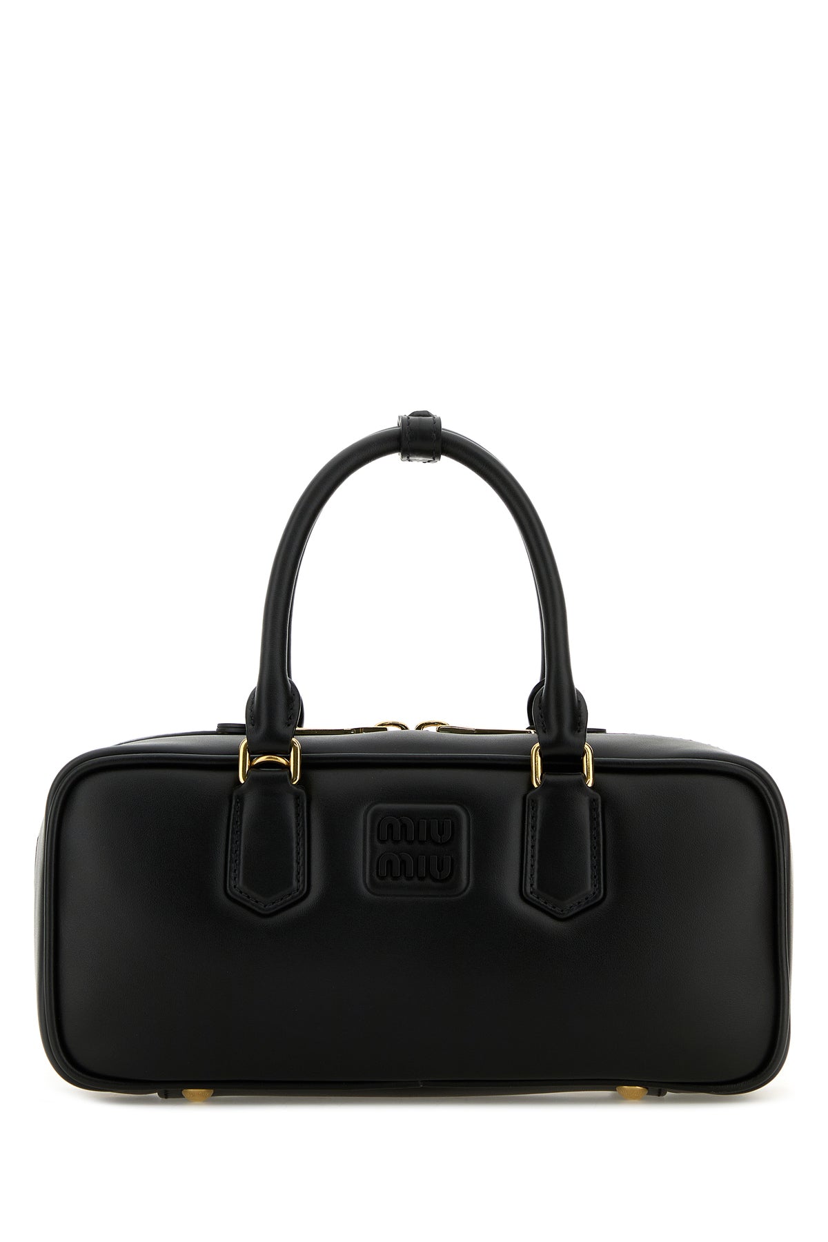 Handbag realized in slightly pebble leather enriched by metal lettering logo at the front.