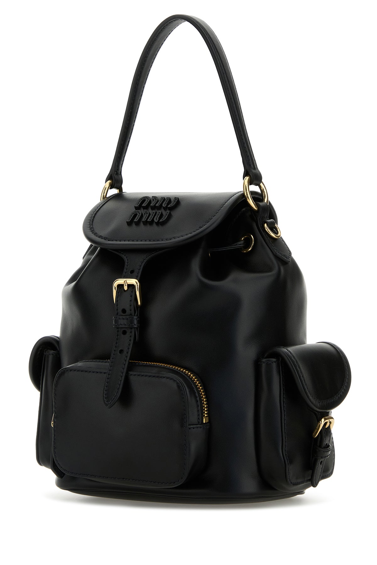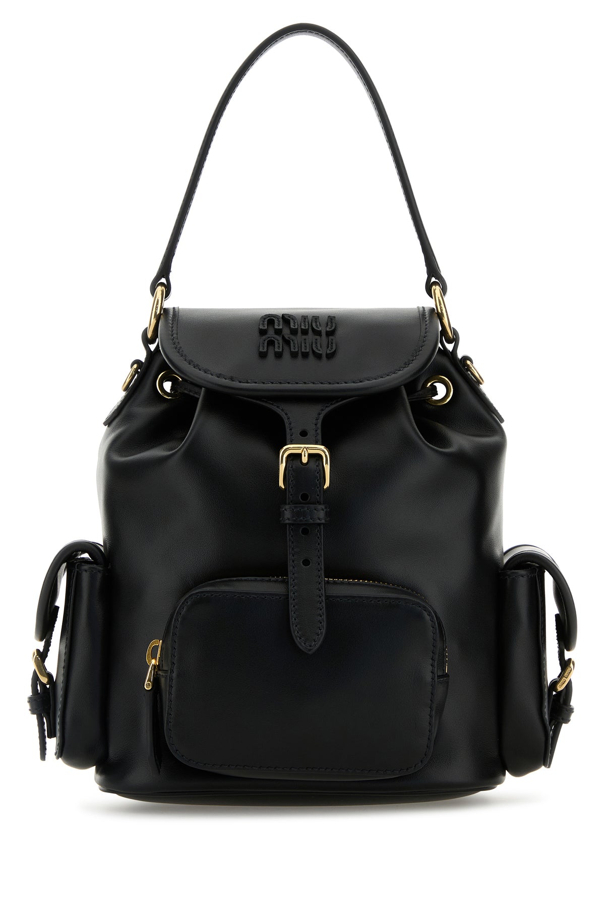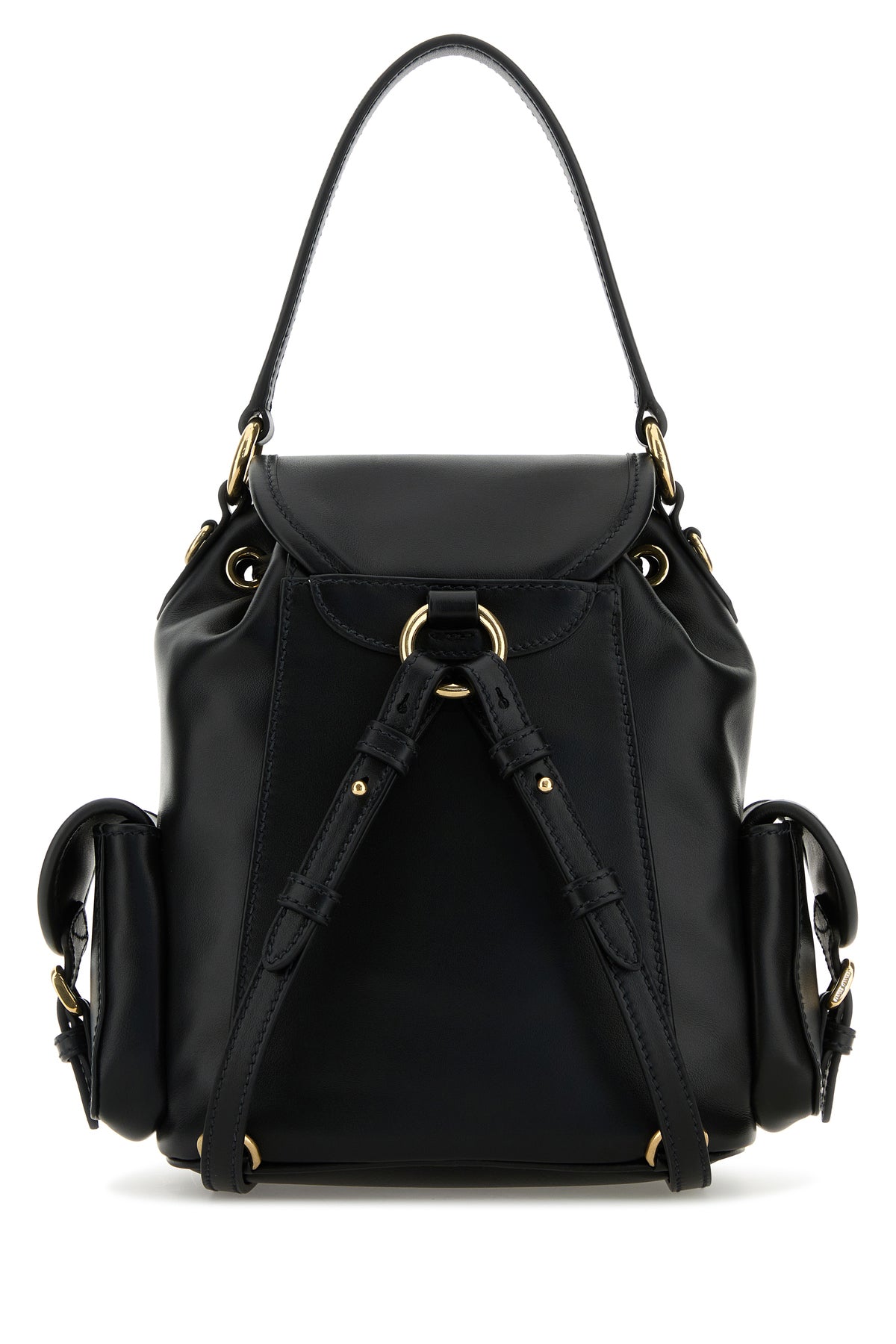 Backpack realized in slightly pebble leather enriched by tonal logoed label at the front.