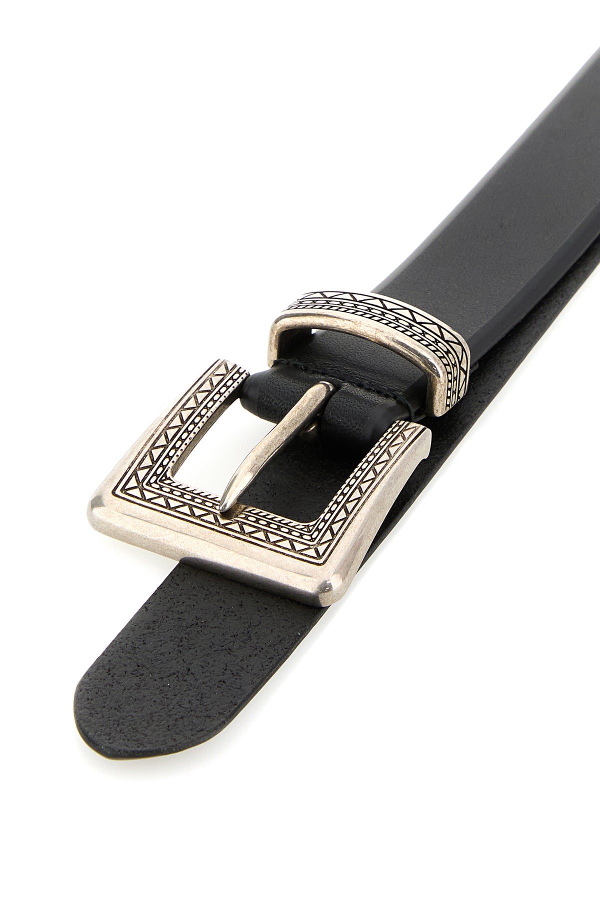 Belt realized in smooth leather characterized by peculiar metal buckle.
