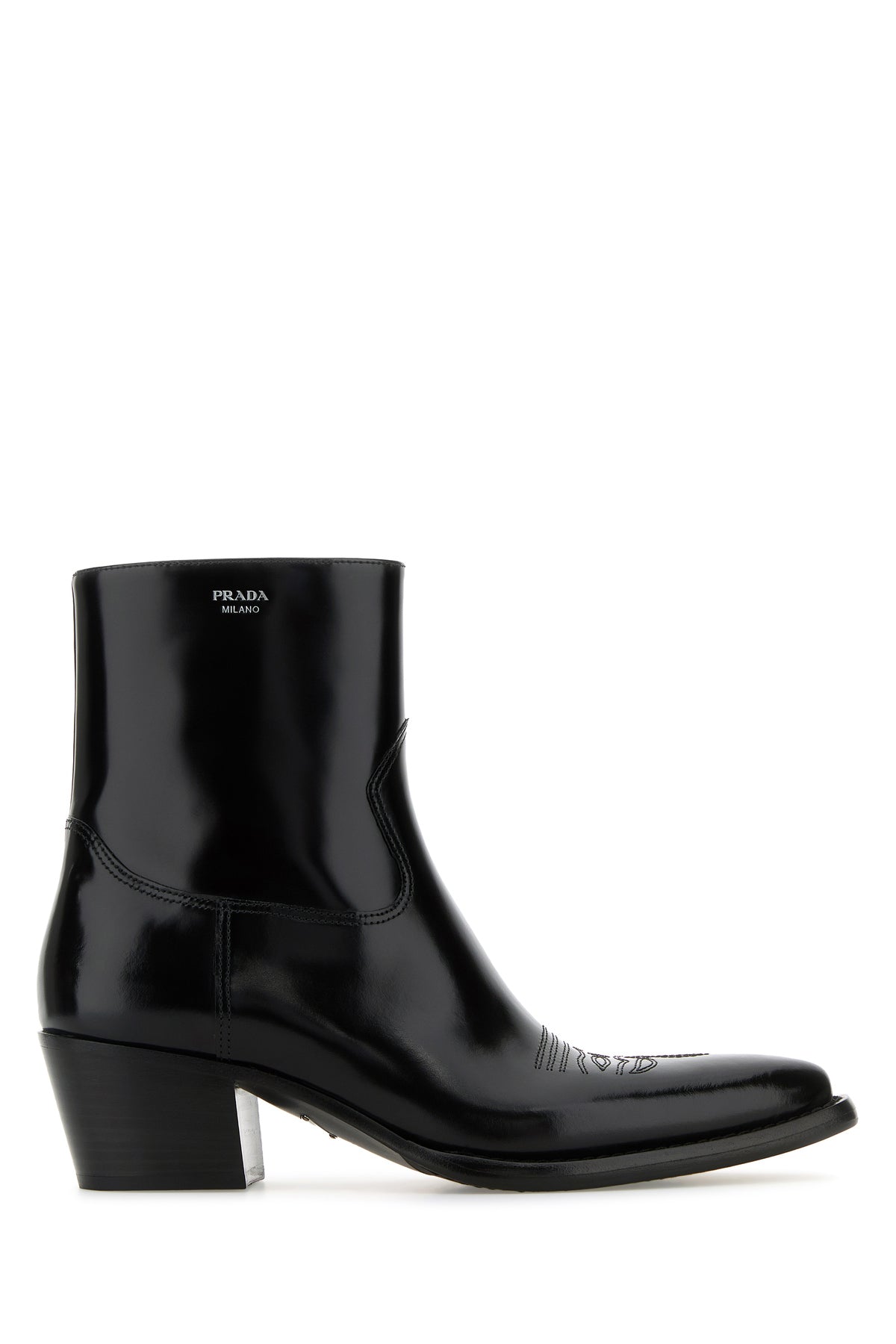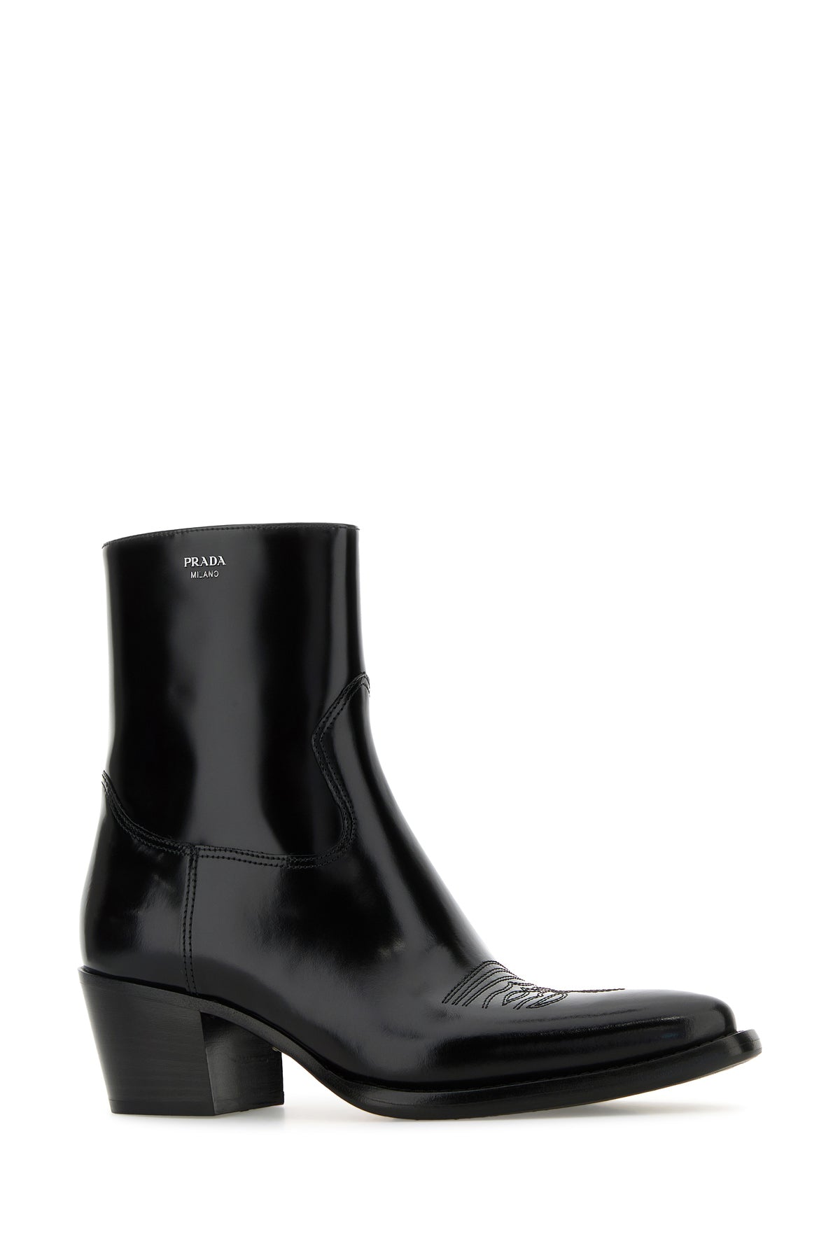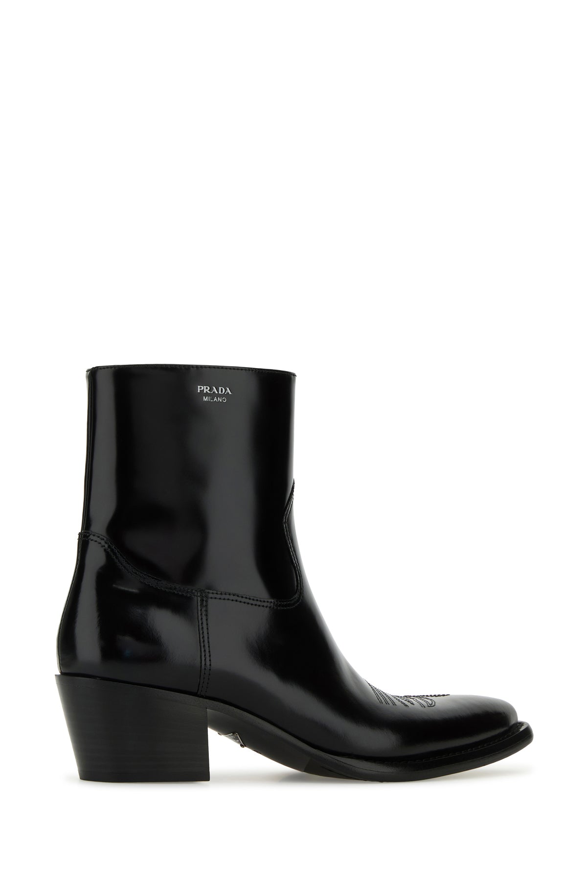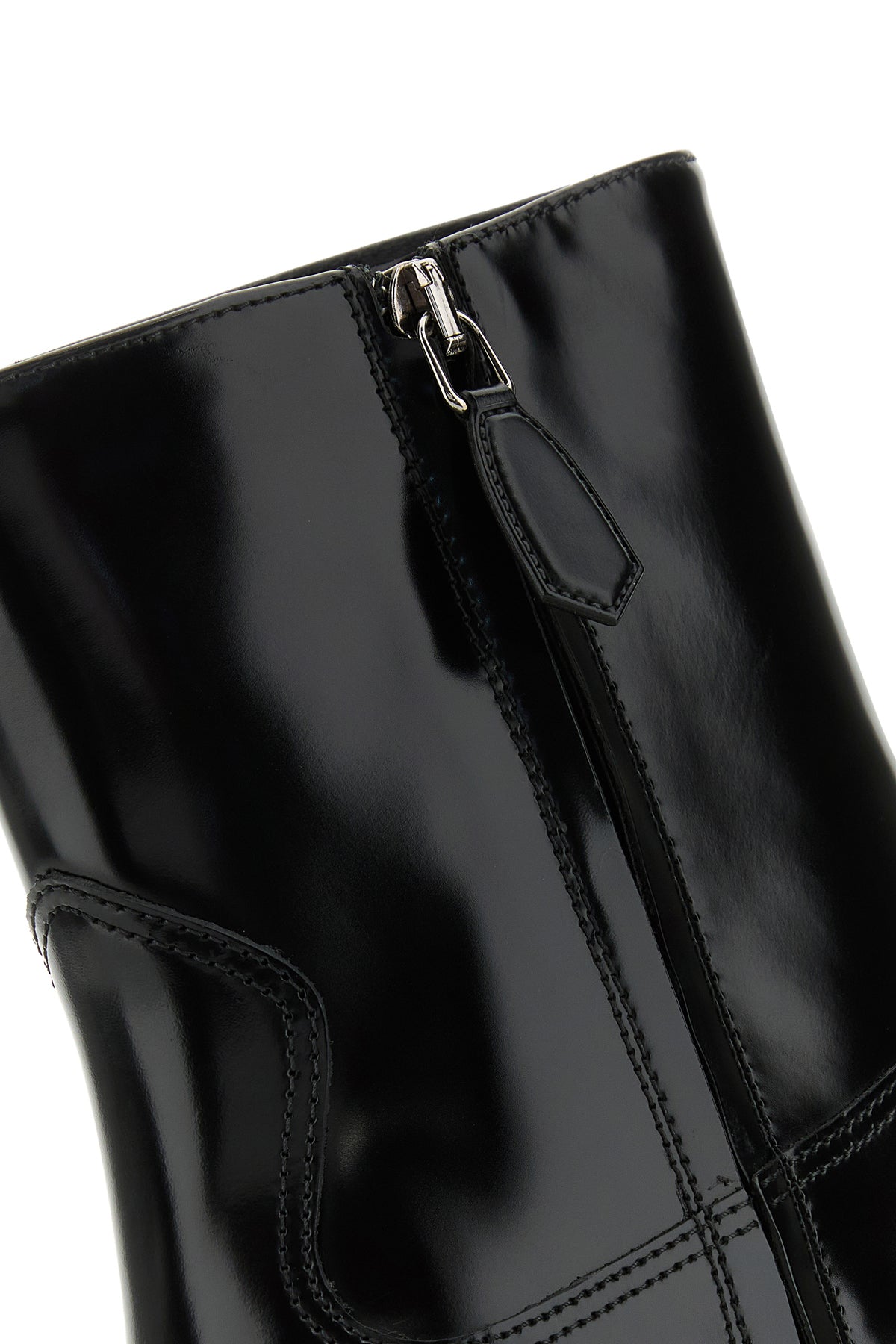 Boots realized in polished finish leather characterized by laminated printed logo on the side.