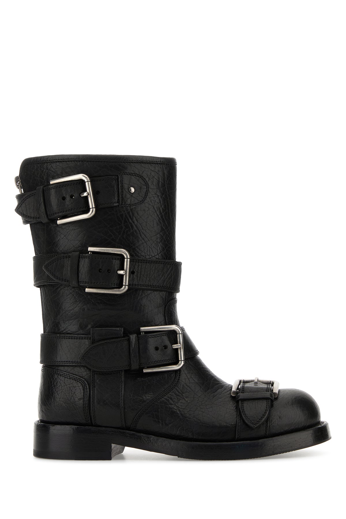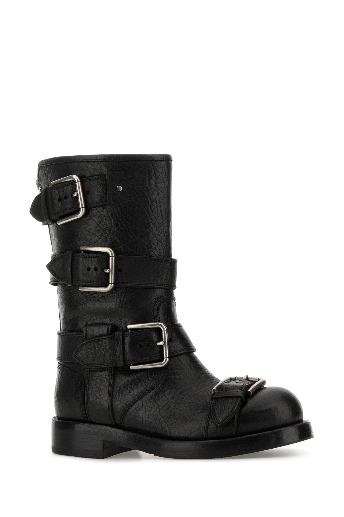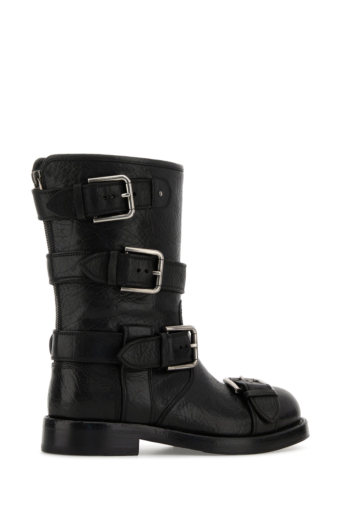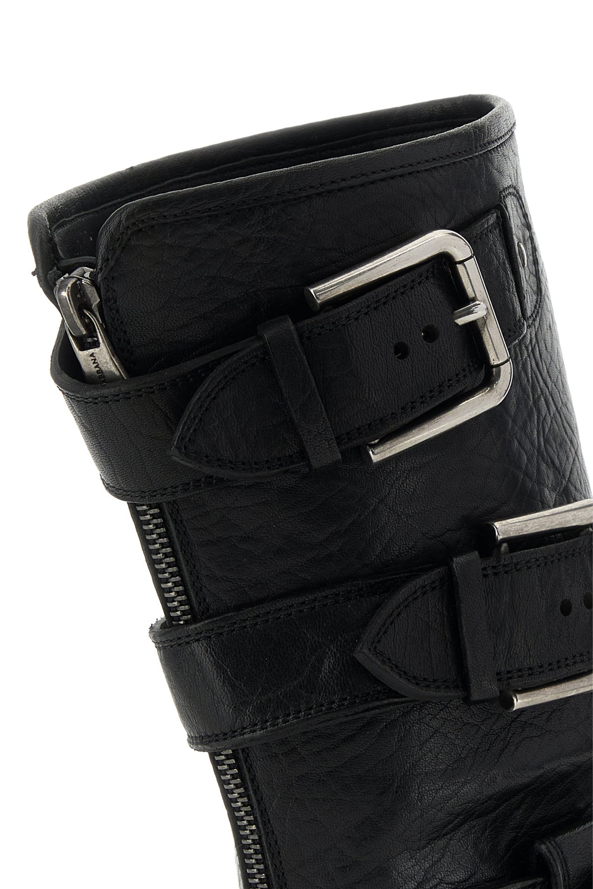 Boots realized in pebble leather enriched by adjustable straps on the entire surface.
