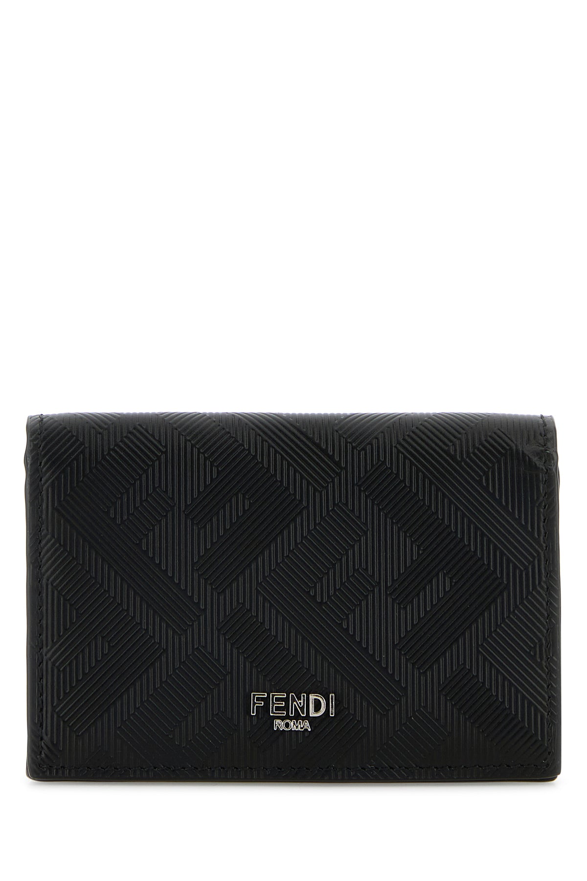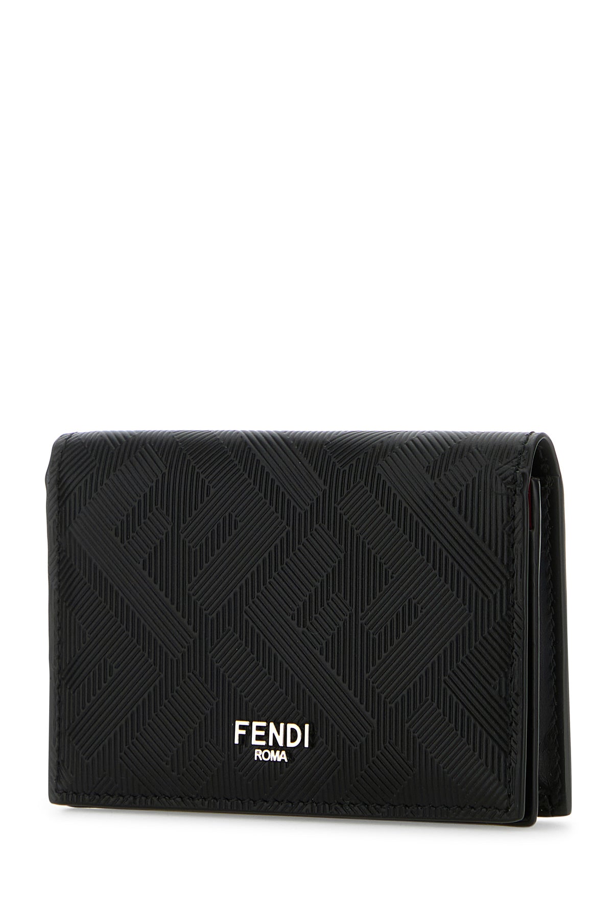 Card holder realized in leather characterized by embossed FF motif on the entire surface enriched by metal lettering logo at the front.