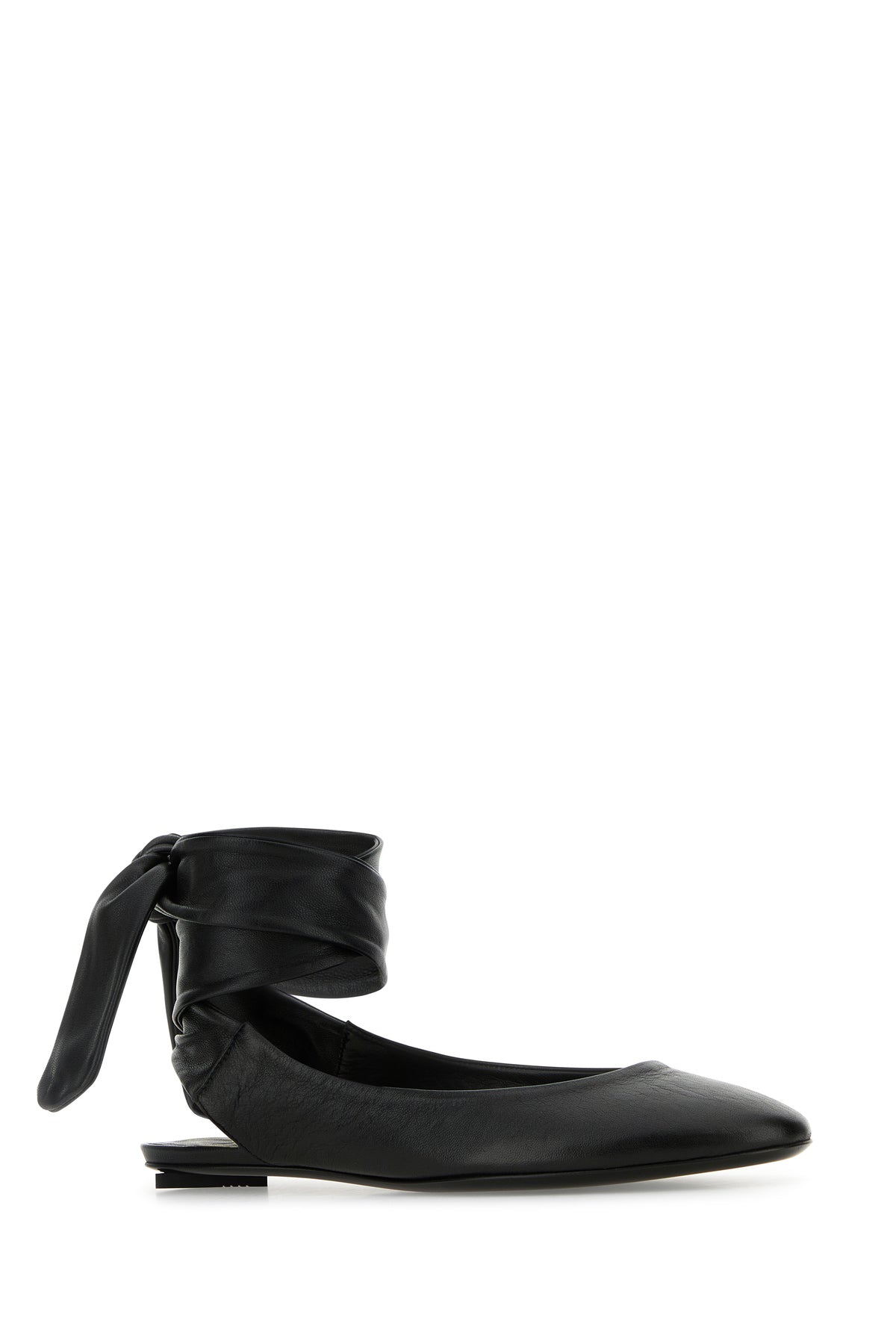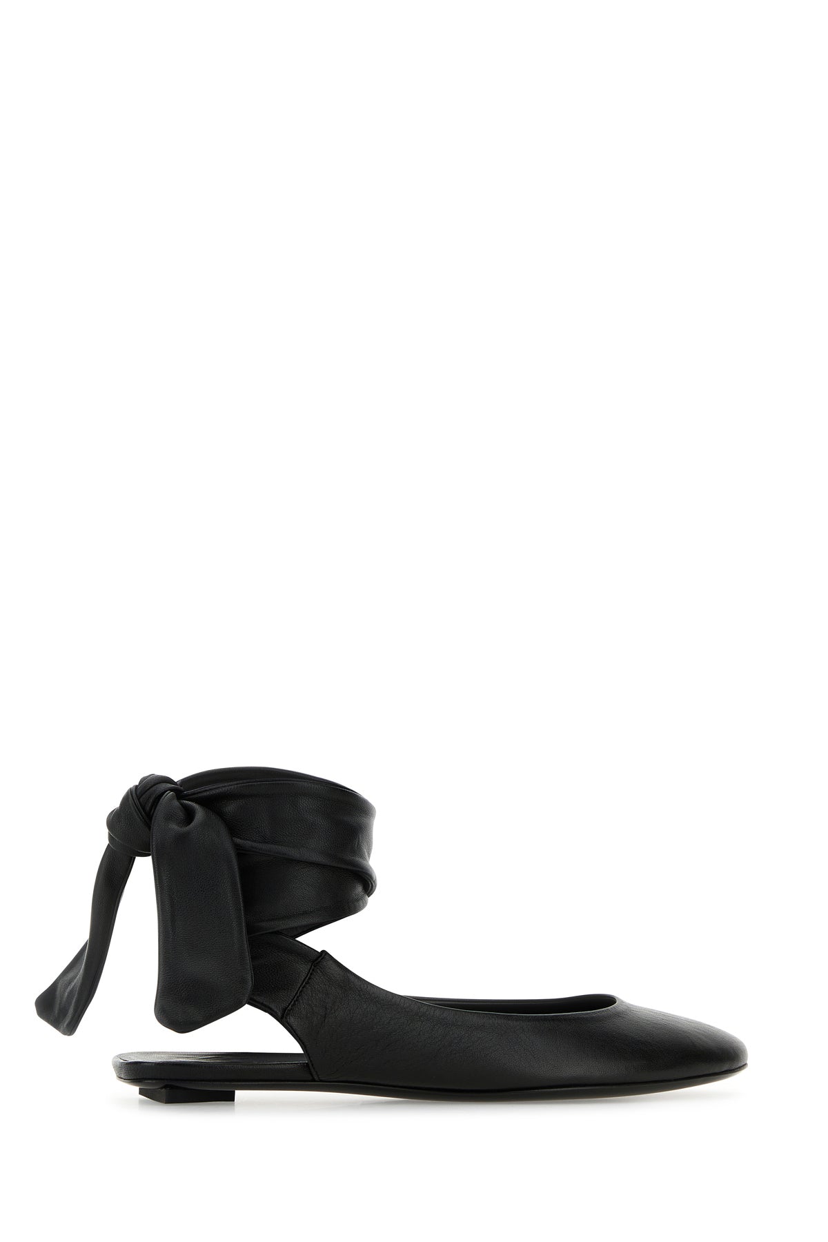 Slippers realized in pebble leather enriched by laces to tie at the ankle.